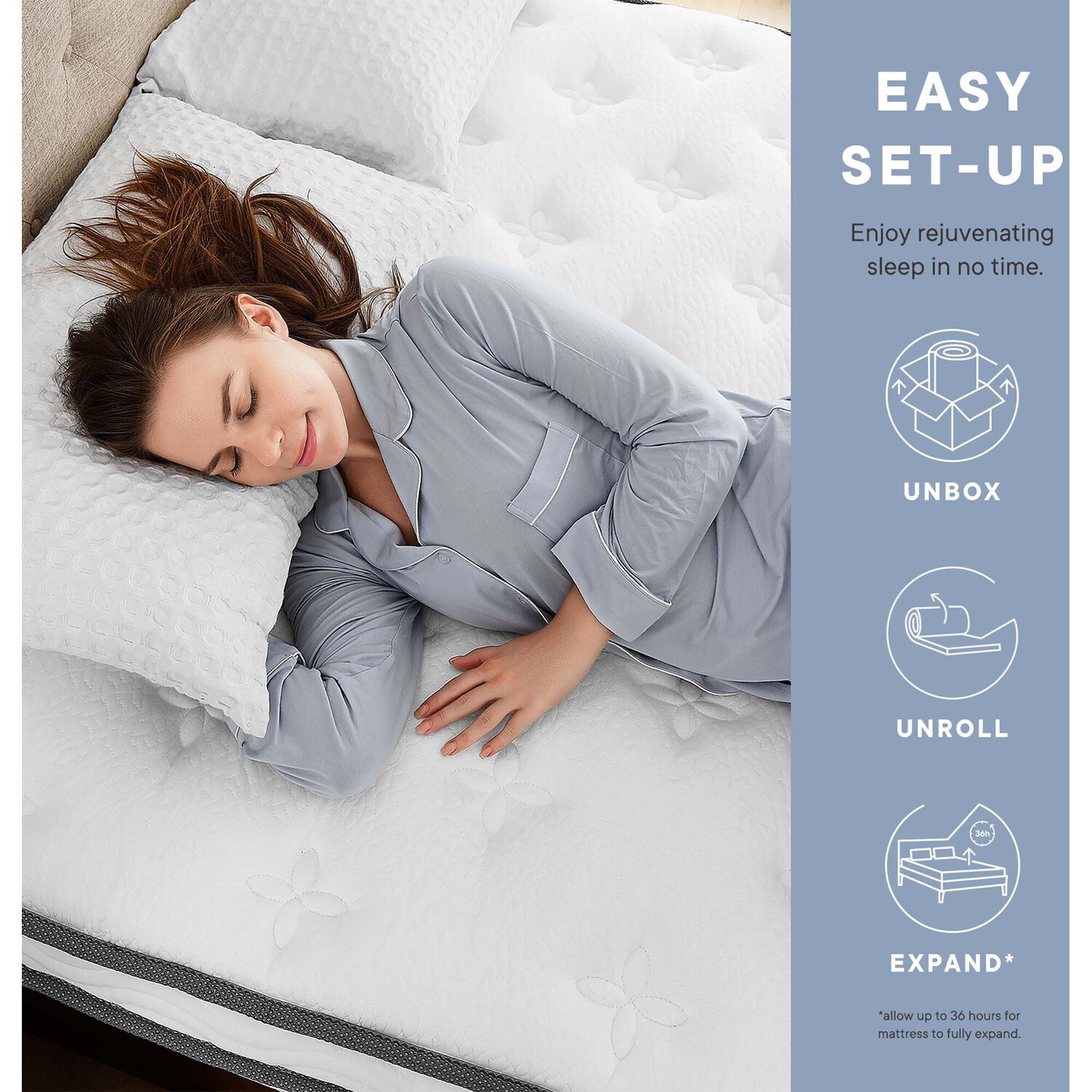Enjoy rejuvenating sleep with the Jenna 6" Innerspring Mattress. Designed for side, back, and stomach sleepers, this bedroom mattress features 4.5" pocket coils that not only promote pressure relief and proper spinal alignment but also help prevent the mattress from sinking and sagging. For maximum comfort, the coils are cushioned beneath layers of responsive foam and topped with a breathable quilted cover. Shipping in a compact box, this mattress comes compressed and rolled for easy delivery. Upgrade your bedroom with the firm yet plush support of the Jenna Innerspring Mattress.Quilted Pillow-Top Cover