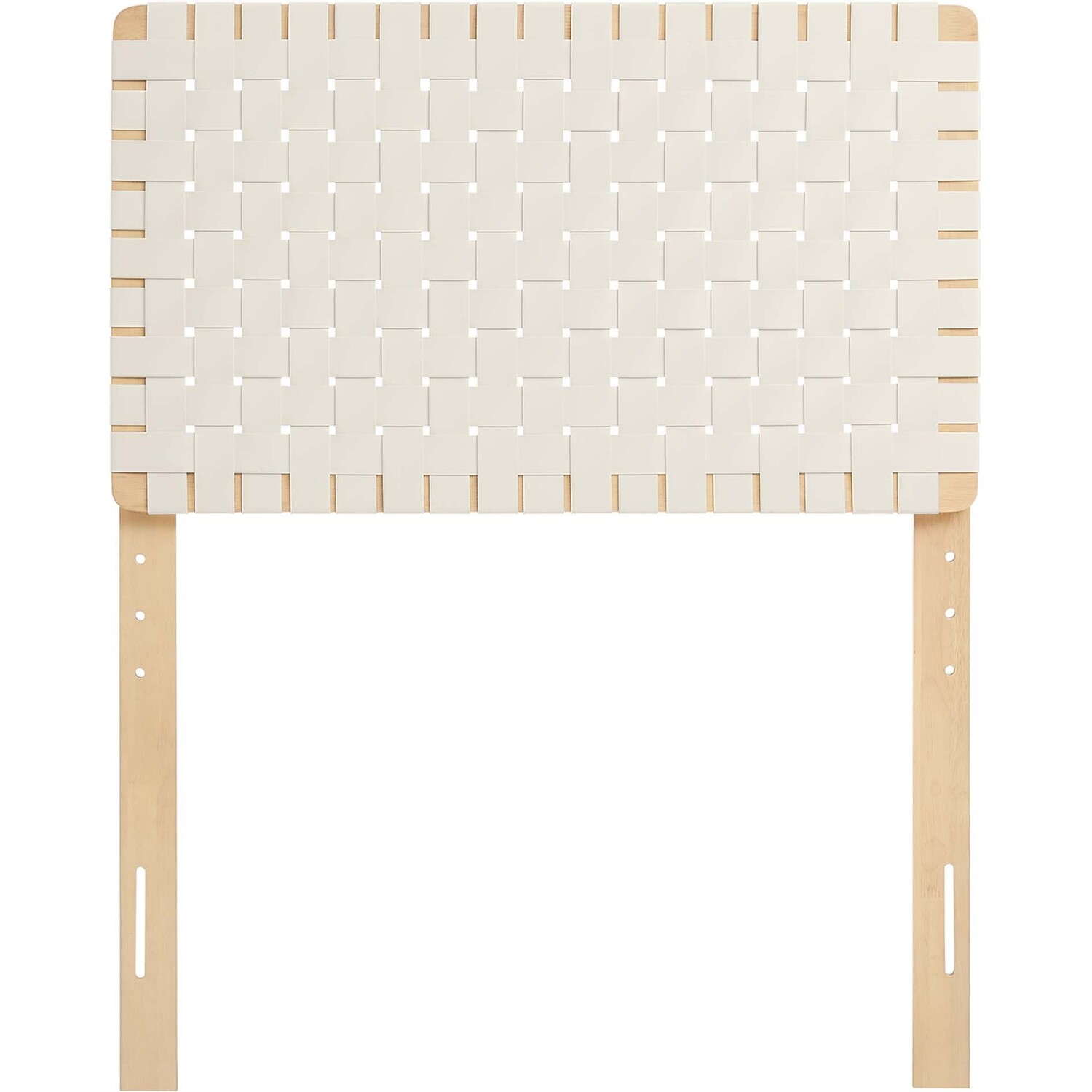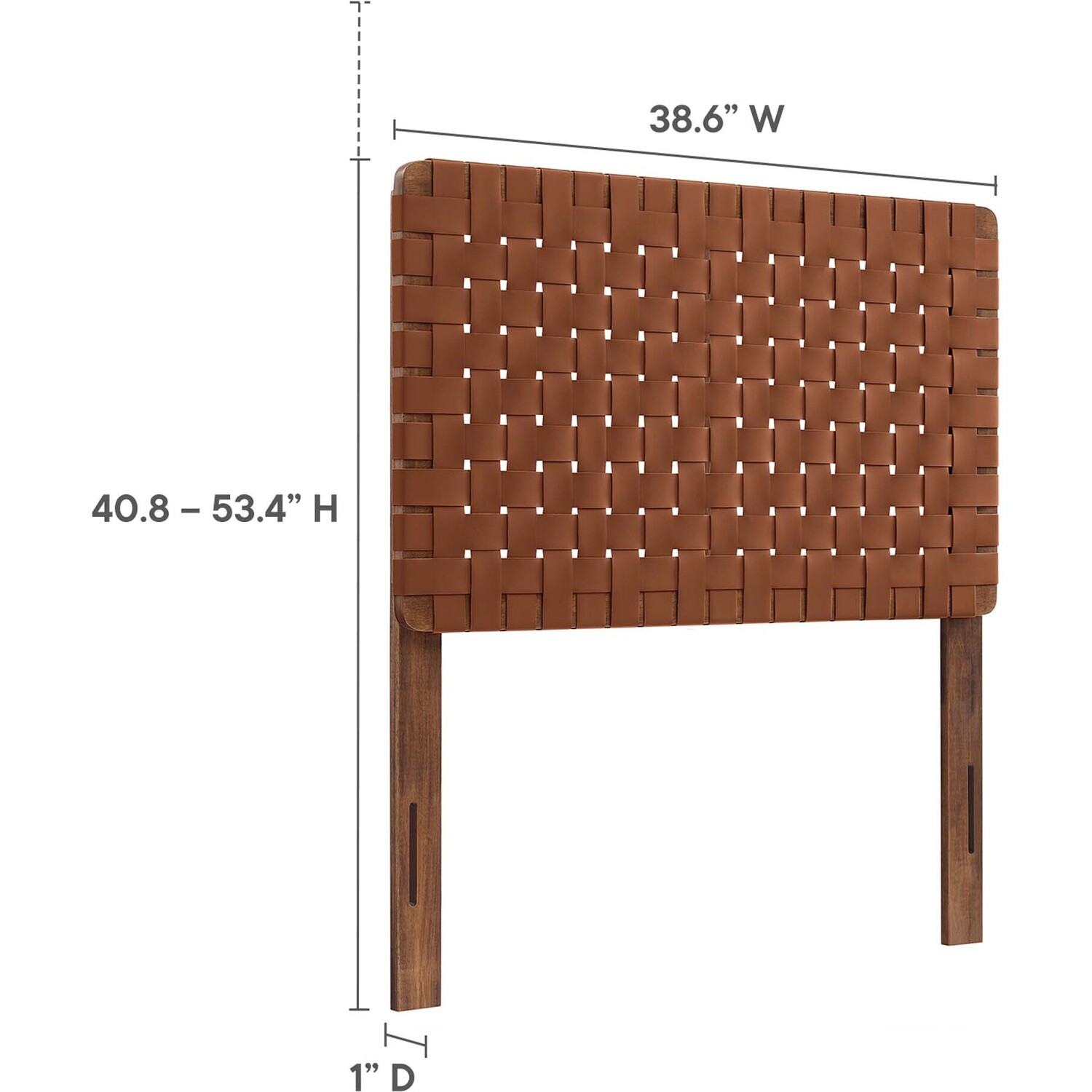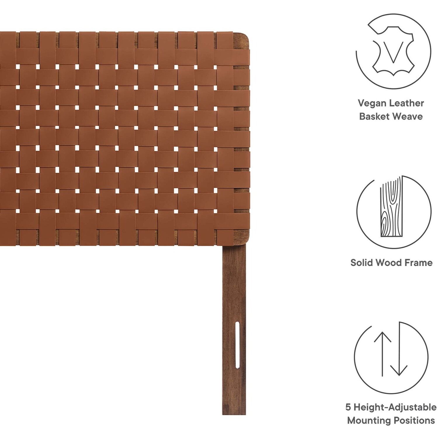 Elevate your bedroom's ambiance with the Sparta Vegan Leather Weave Twin Headboard, a perfect blend of robustness and artistic flair. Constructed meticulously with a solid wood frame, this twin size headboard introduces enduring stability and a touch of organic aesthetics. The standout feature is its basket woven vegan leather craft, adding a unique dimension and a tactile texture that captivates the eye. Perfect for a children's bedroom, small guest room, college dorm room, or shared bedroom, the Sparta Headboard offers a standing design with 5 mounting positions. This adaptability makes the twin bed headboard an ideal fit for any bedroom space. The fusion of durability, style, and versatility makes this twin bed headboard a distinguished choice for those seeking to infuse their sleeping space with sophistication and elegance. Assembly Required.Twin Size Headboard Only