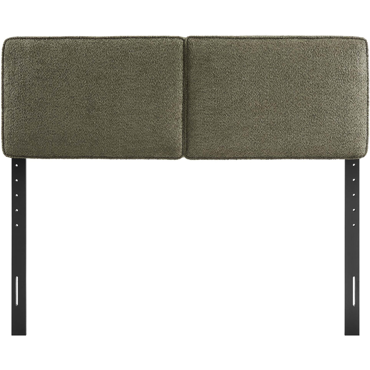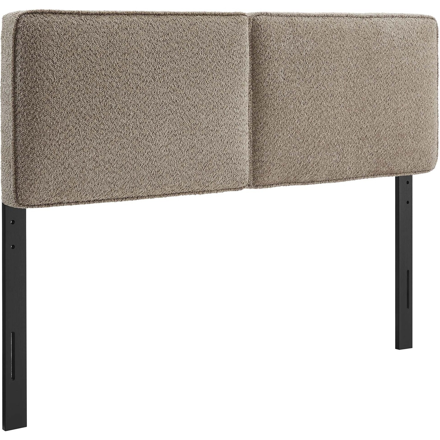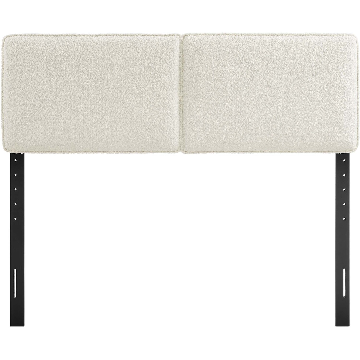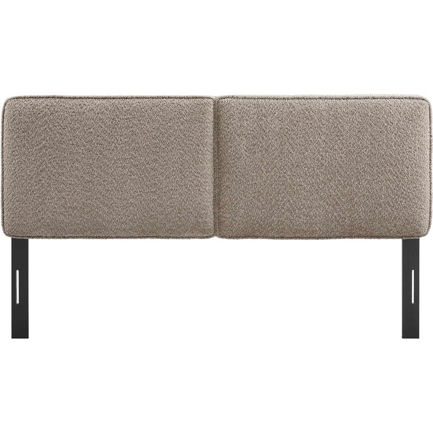 Embrace elegance and comfort in a guest bedroom, teenager's bedroom, or college dorm room with the Lindee Full Headboard, a statement piece that merges plush comfort with sophisticated design. This full size fabric headboard is upholstered in textured boucle fabric that offers a tactile charm, and features French piping trim that outlines the dual panels. The dense foam padding and pillow-style design grants a soft, cushioned backdrop for nightly reading or relaxing in bed. Supported by solid wood legs and equipped with seven mounting positions, this full upholstered headboard provides both durability and versatility to fit various bed frames. The Lindee full size headboard is a transformative bedroom upgrade that combines form and function with an upholstered boucle headboard appeal, making it a quintessential element for any restful sanctuary. Assembly required.Pillow Style Headboard