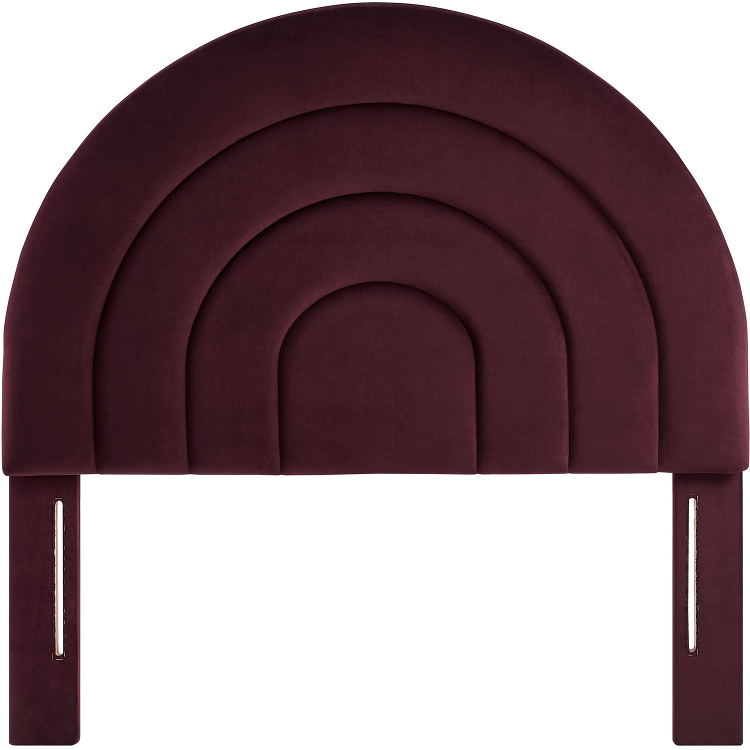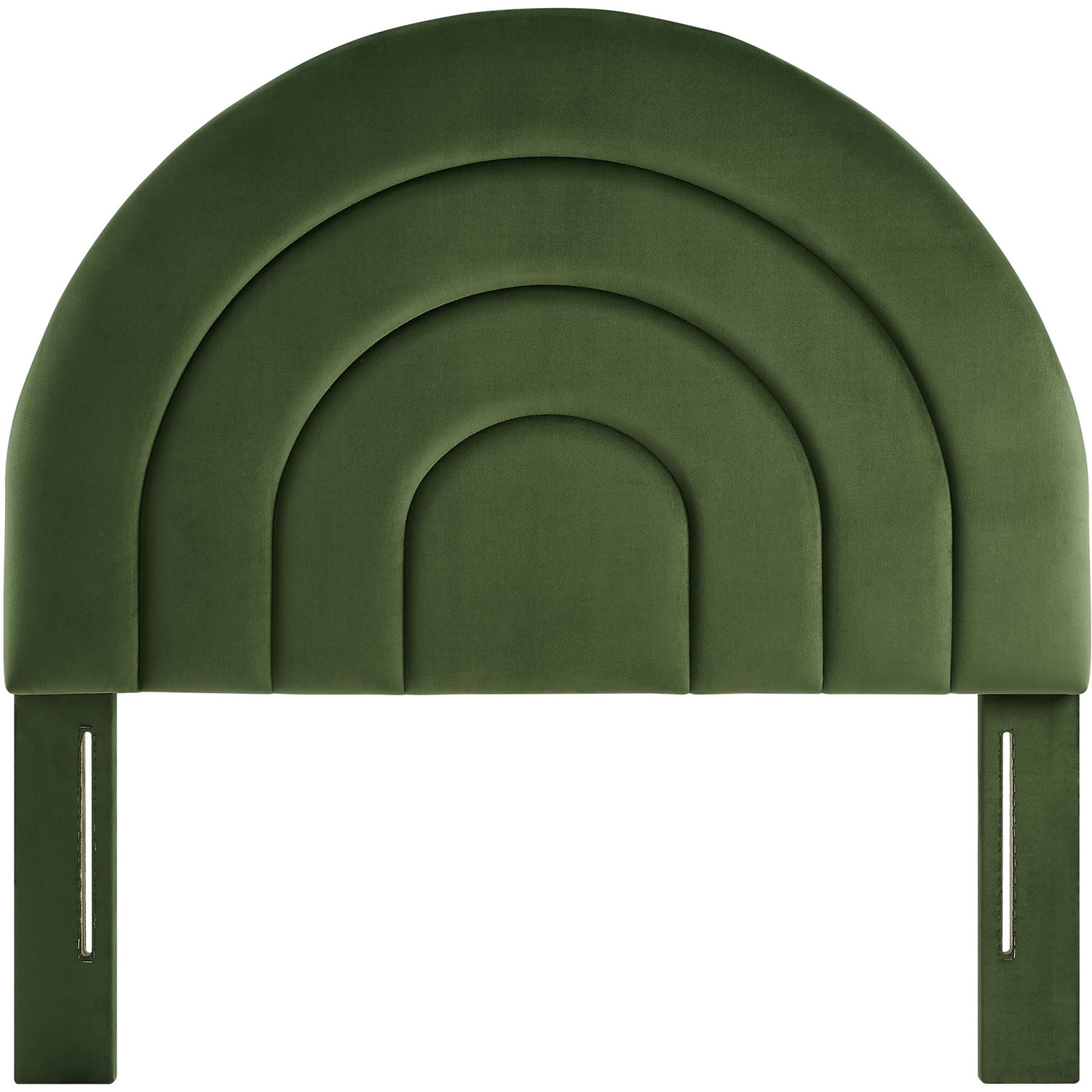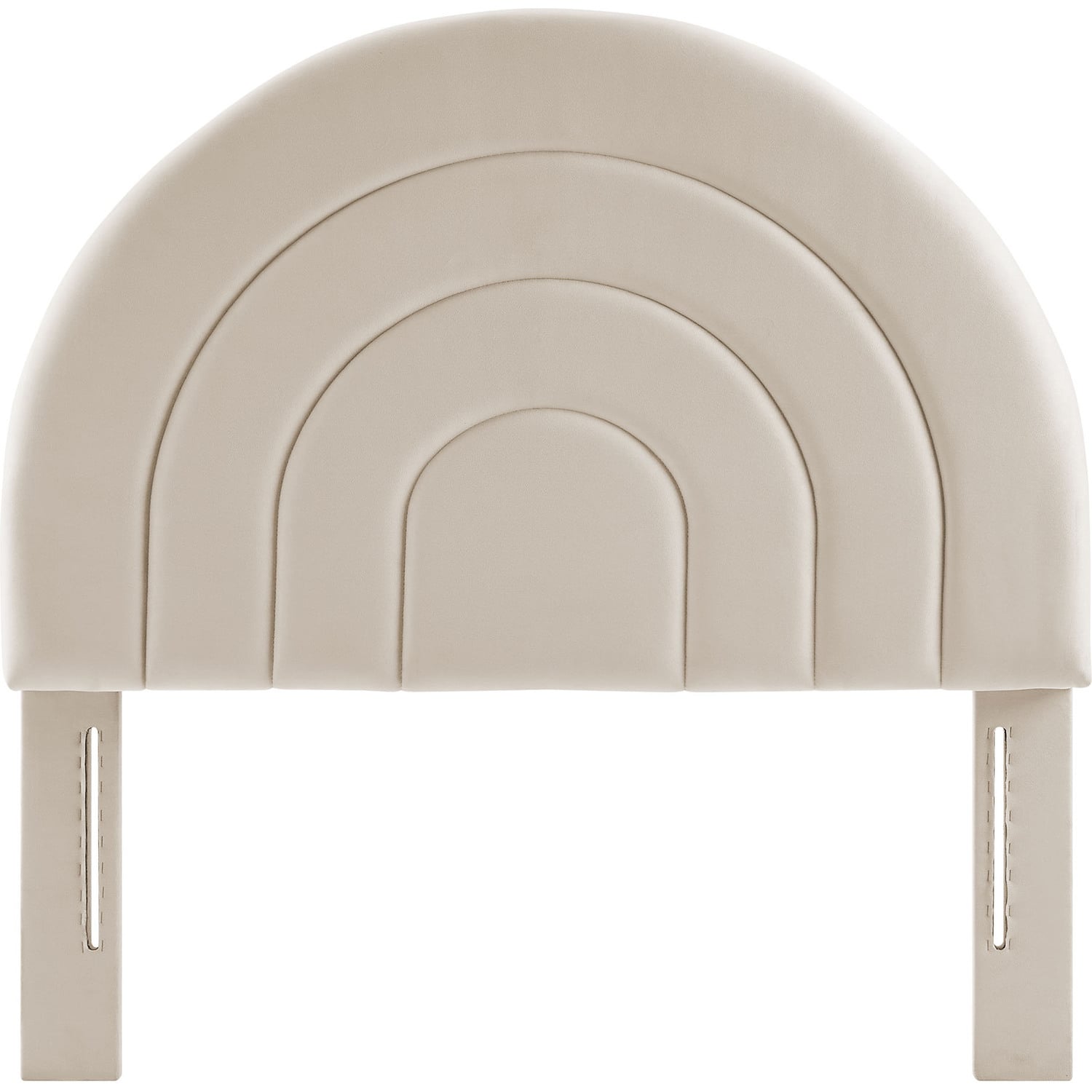 Bring sweeping lines and cozy comfort to your bedroom or dorm with the Solana Soft Arch Shaped Velvet Twin Headboard. Featuring a captivating round headboard design, the Solana Twin Size Headboard showcases three layered, semi-circular padded segments that add depth and dimension to your sleep space. Upholstered in luxe, stain-resistant performance velvet, the twin upholstered headboard offers a plush, soft-to-the-touch feel, making it a striking focal point that is both modern and calming. Designed with versatility in mind. The Solana Arched Headboard is perfect for a variety of setups from kids’ rooms to guest bedrooms to college dorm rooms.Stain-Resistant Performance Velvet Upholstery