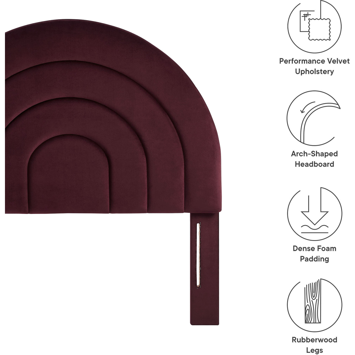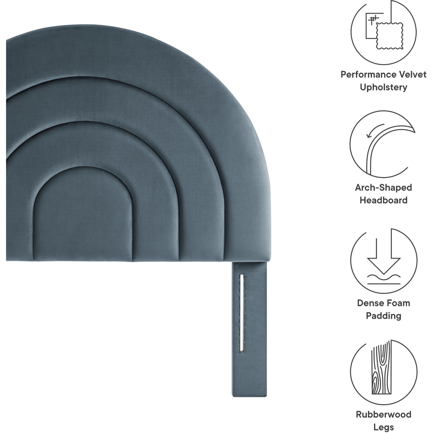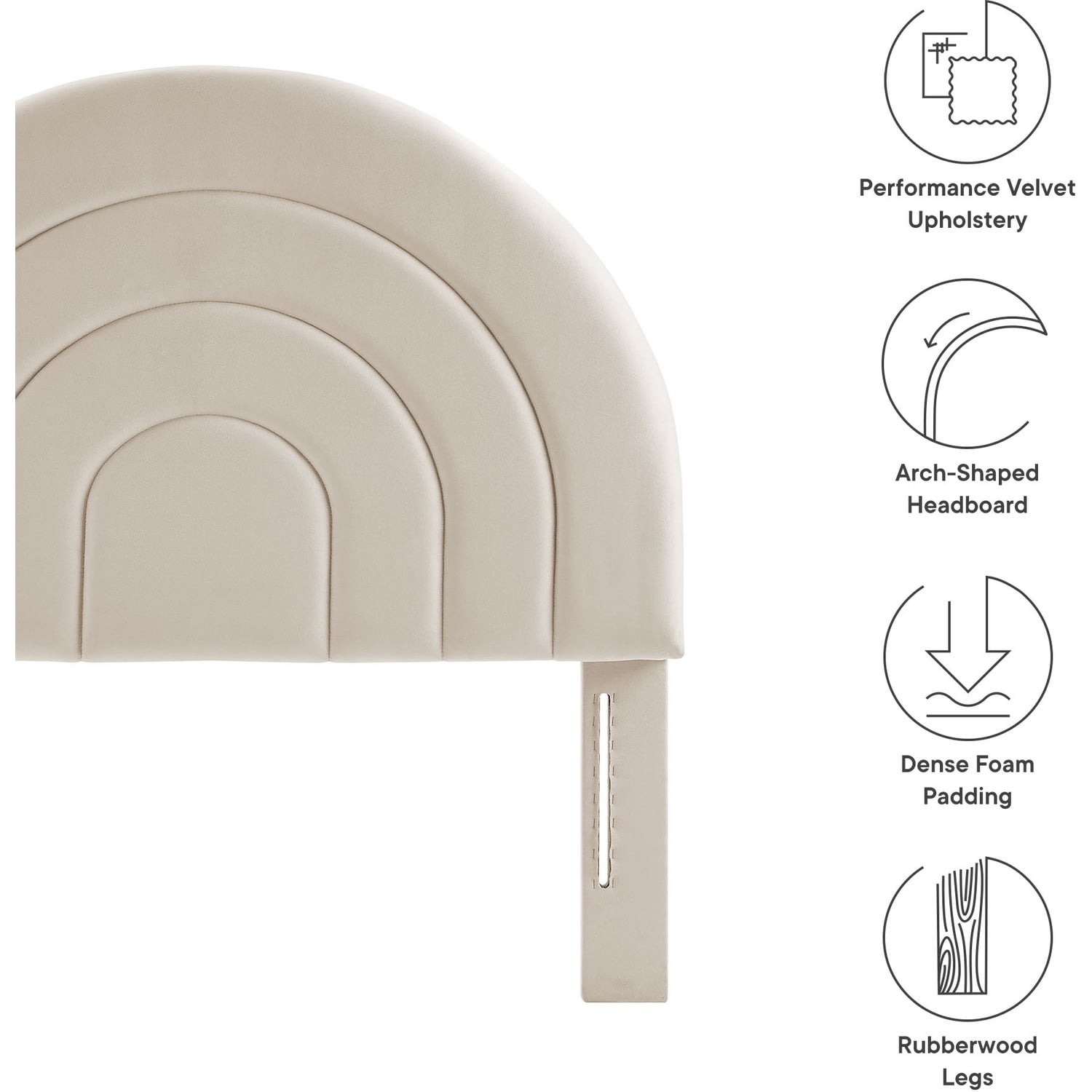 Bring sweeping lines and cozy comfort to your bedroom or dorm with the Solana Soft Arch Shaped Velvet Twin Headboard. Featuring a captivating round headboard design, the Solana Twin Size Headboard showcases three layered, semi-circular padded segments that add depth and dimension to your sleep space. Upholstered in luxe, stain-resistant performance velvet, the twin upholstered headboard offers a plush, soft-to-the-touch feel, making it a striking focal point that is both modern and calming. Designed with versatility in mind. The Solana Arched Headboard is perfect for a variety of setups from kids’ rooms to guest bedrooms to college dorm rooms.Stain-Resistant Performance Velvet Upholstery