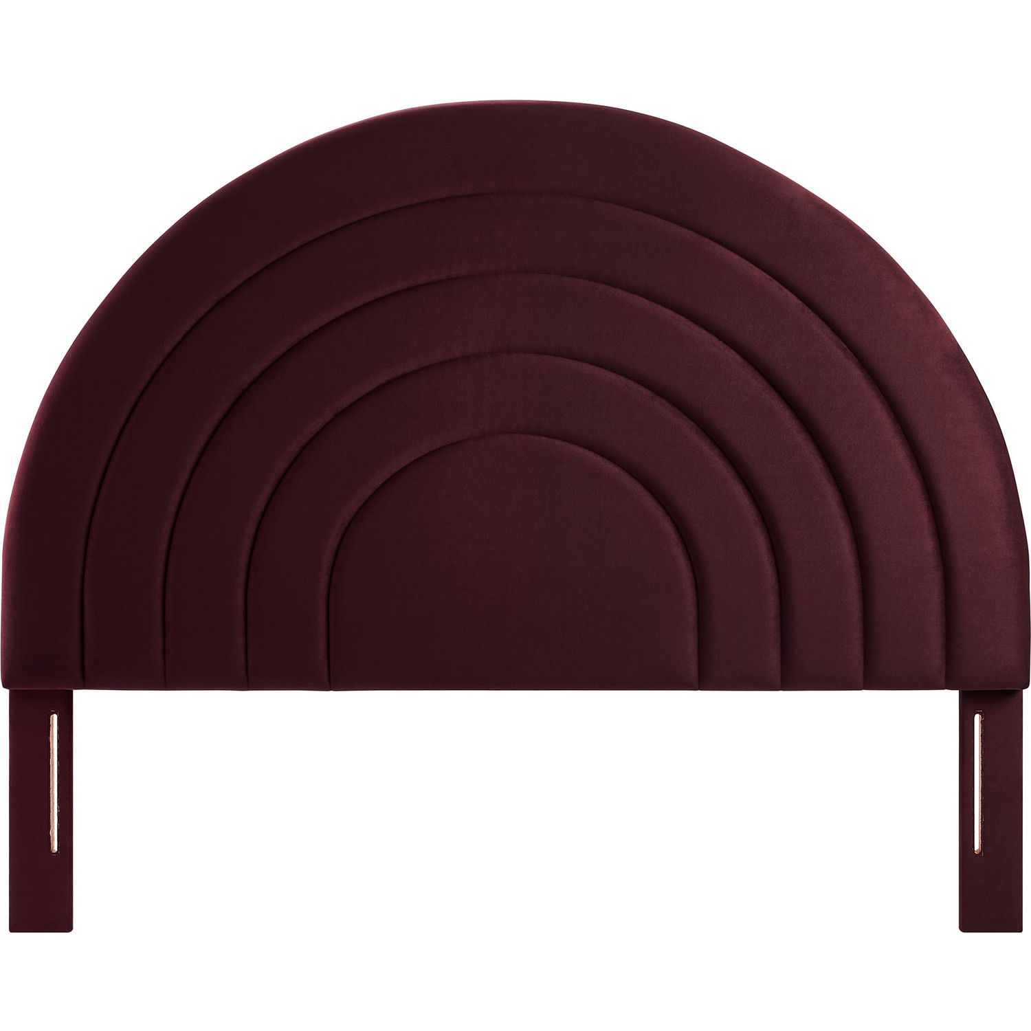 Bring sweeping lines and cozy comfort to your bedroom with the Solana Soft Arch Shaped Velvet Queen Headboard. Featuring a captivating round headboard design, the Solana velvet queen headboard showcases three layered, semi-circular padded segments that add depth and dimension to your sleep space. Upholstered in luxe, stain-resistant performance velvet, the queen upholstered headboard offers a plush, soft-to-the-touch feel, making it a striking focal point that is both modern and calming. Designed with versatility in mind. The Solana arched headboard is perfect for master bedrooms or guest rooms, adding a contemporary touch of elegance.Stain-Resistant Performance Velvet Upholstery