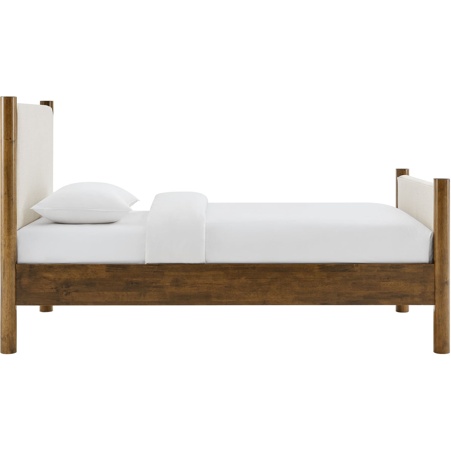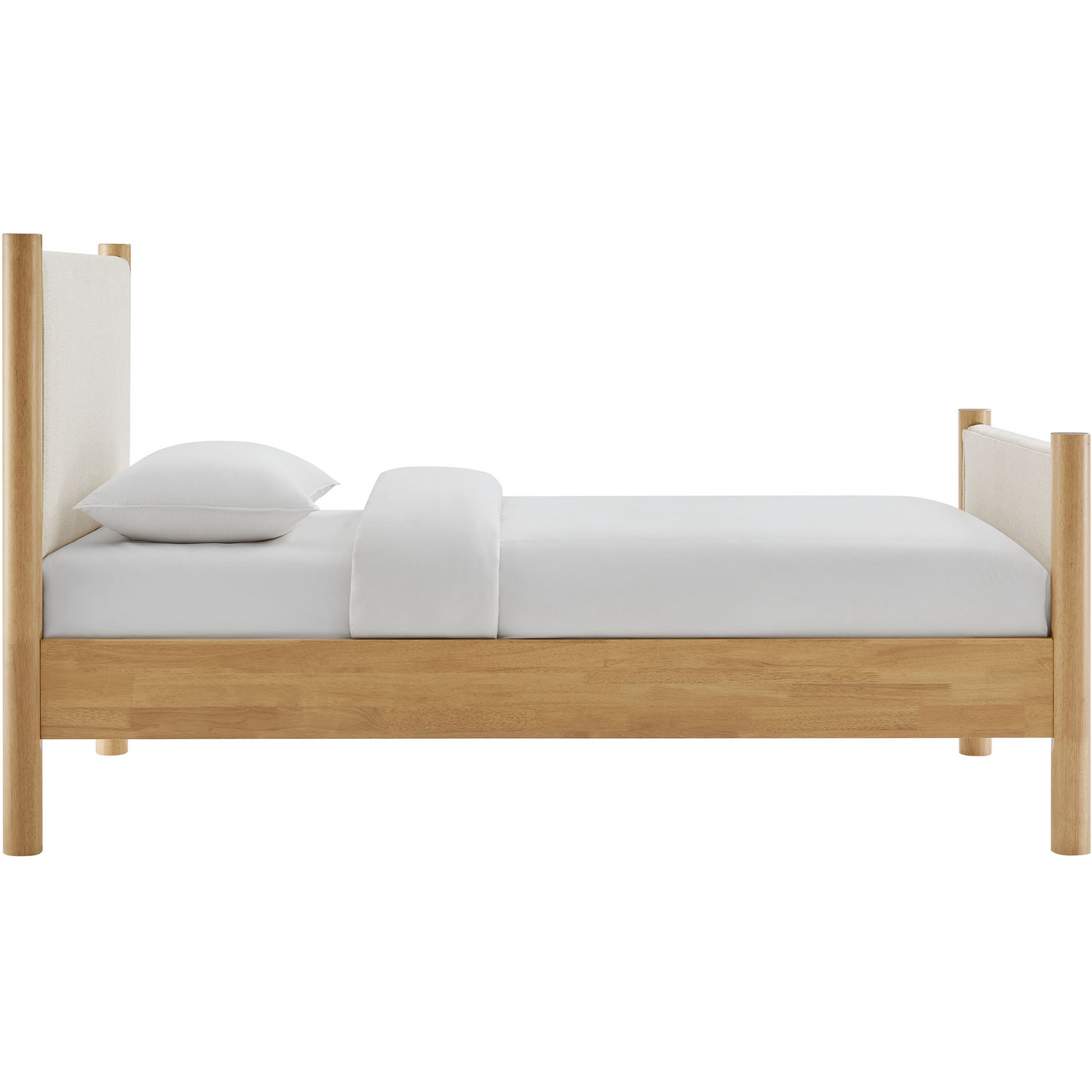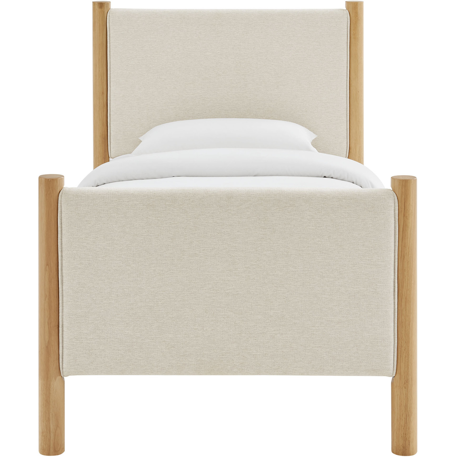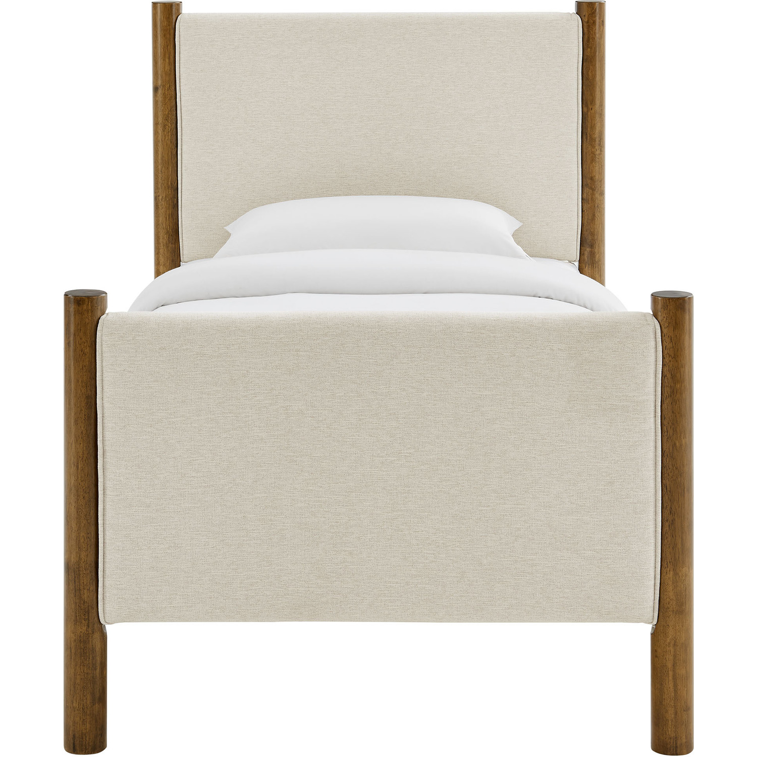 A perfect blend of comfort and craftsmanship, the Maven Twin Size Platform Bed brings a stylish focal point to any bedroom. The upholstered headboard and footboard, padded and covered in a heathered weave fabric, provide a cozy, inviting backdrop framed by robust solid wood posts for a touch of timeless elegance. Designed with wooden slats that support your mattress while promoting airflow, this platform bed eliminates the need for a box spring. Ideal for compact spaces, kids' rooms, or guest accommodations, the Maven Twin Bed combines a modern look with practical functionality, making it an excellent choice for those seeking both comfort and durability. Weight Capacity: 794 lbs.Wooden Bed Frame