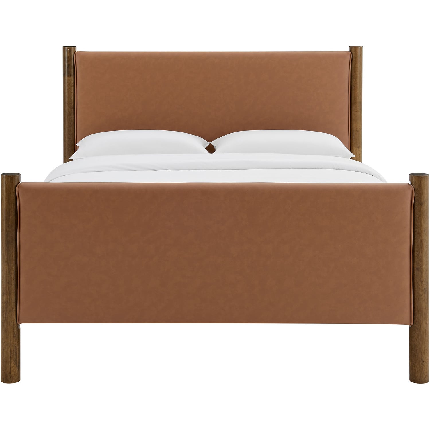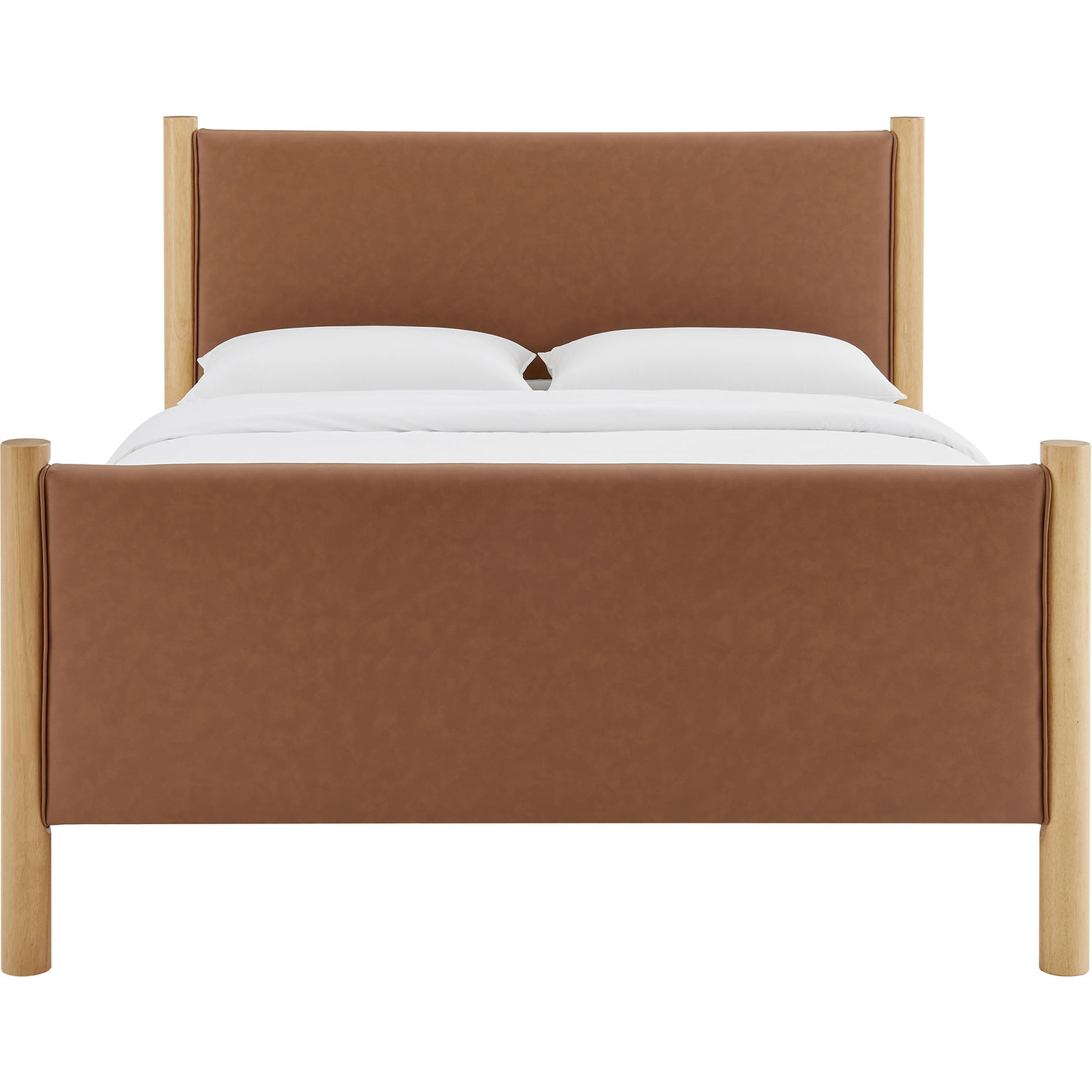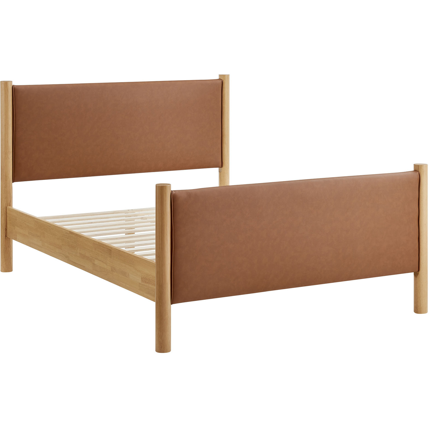 A perfect blend of comfort and craftsmanship, the Maven Full Size Platform Bed brings a stylish focal point to any bedroom. The upholstered headboard and footboard, padded and covered in durable faux leather, provide a sleek, modern touch framed by robust solid wood posts for a touch of timeless elegance. Designed with wooden slats that support your mattress while promoting airflow, this platform bed eliminates the need for a box spring. Ideal for guest rooms or teenager’s bedrooms, the Maven Full Bed combines a contemporary look with practical functionality, making it an excellent choice for those seeking both comfort and durability. Weight Capacity: 794 lbs.Wooden Bed Frame