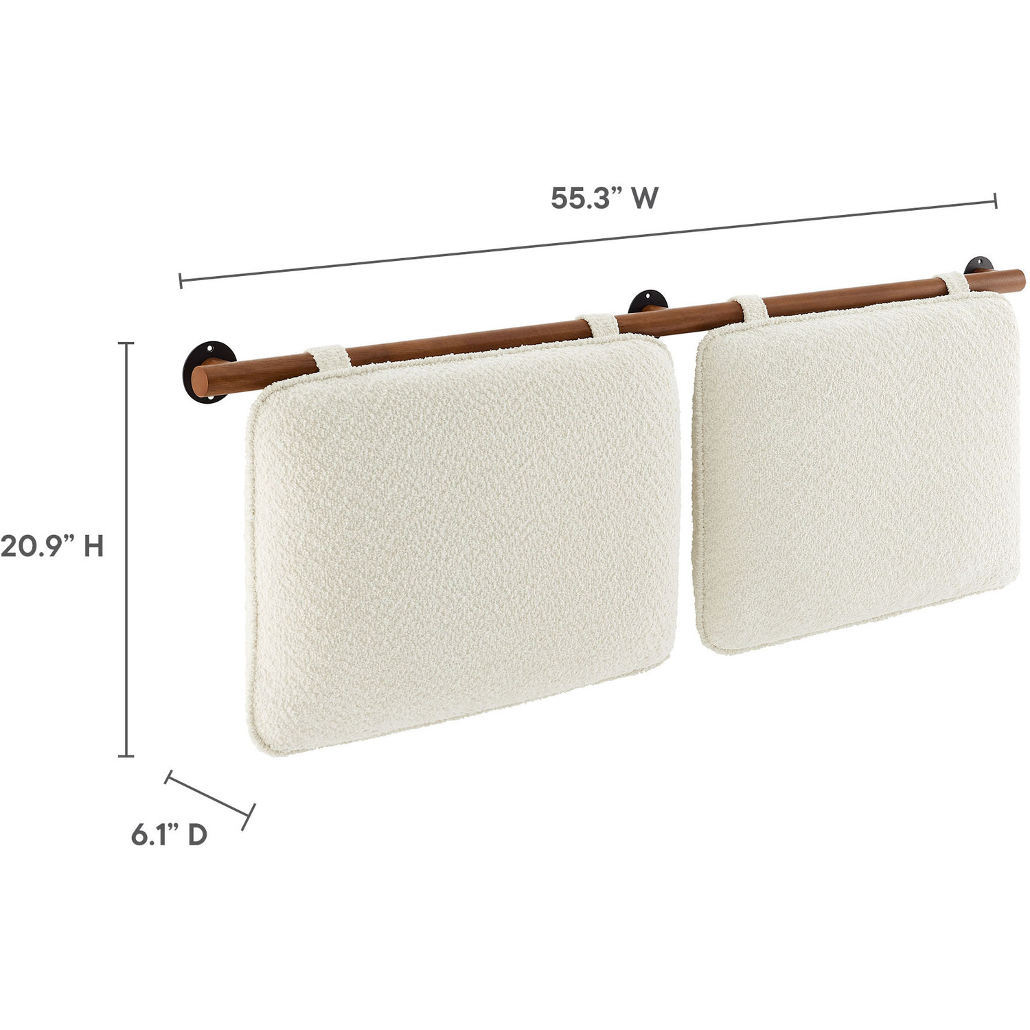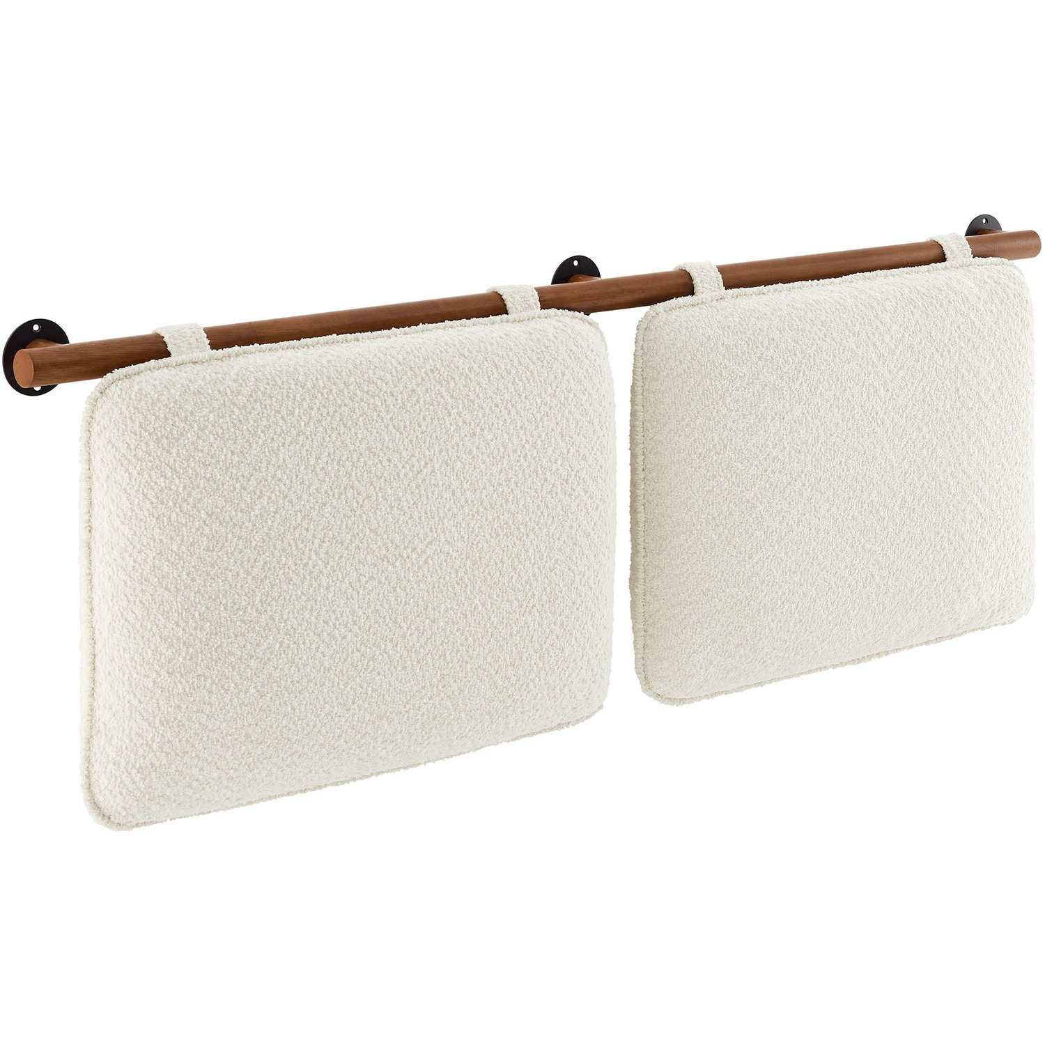 Create a soothing, inviting atmosphere with the Anela Chenille Upholstered Full Size Headboard, featuring two separate cushions that offer both comfort and style in a space-saving wall-mounted design. Crafted with soft chenille fabric, these headboard pillows are anchored by a solid rubberwood bar, allowing them to float effortlessly above a full size bed while ensuring stability and bringing a touch of natural texture to the design. For added security, upholstered velcro straps wrap around the wooden bar and fasten to the back of each headboard cushion, providing a snug fit while blending with the chenille fabric for a cohesive, minimalist look. Ideal for guest rooms, dorm rooms, or shared spaces, these cushioned floating headboards create a cozy backdrop perfect for sitting up and reading, watching TV, or simply relaxing in bed. They can also be repurposed as comfortable back cushions for a wall bench, offering extra support and a stylish touch to small seating areas. With simple assembly required, this wall-mounted full size headboard maximizes space while delivering comfort and elegance.Full Size Floating Headboard