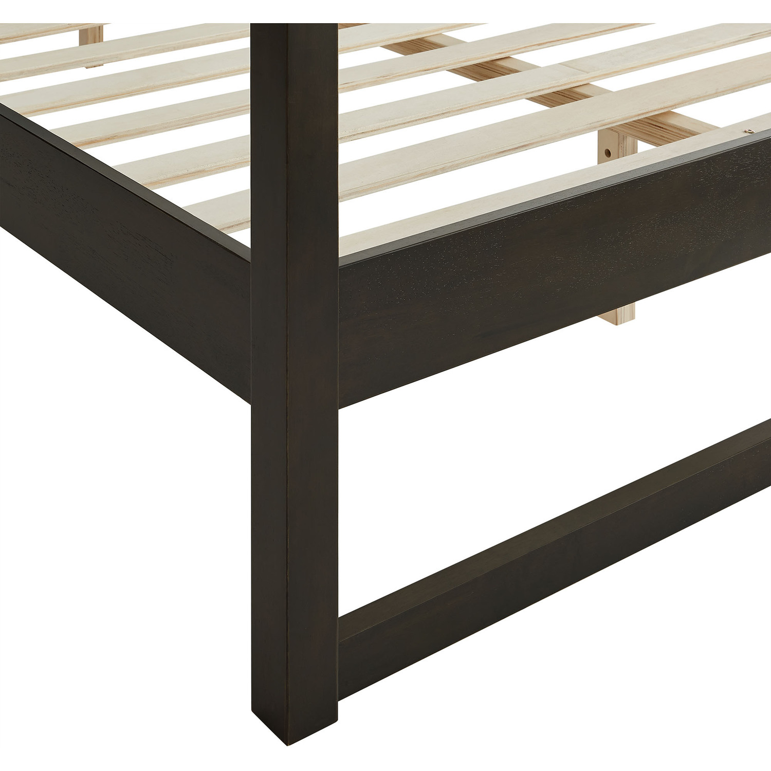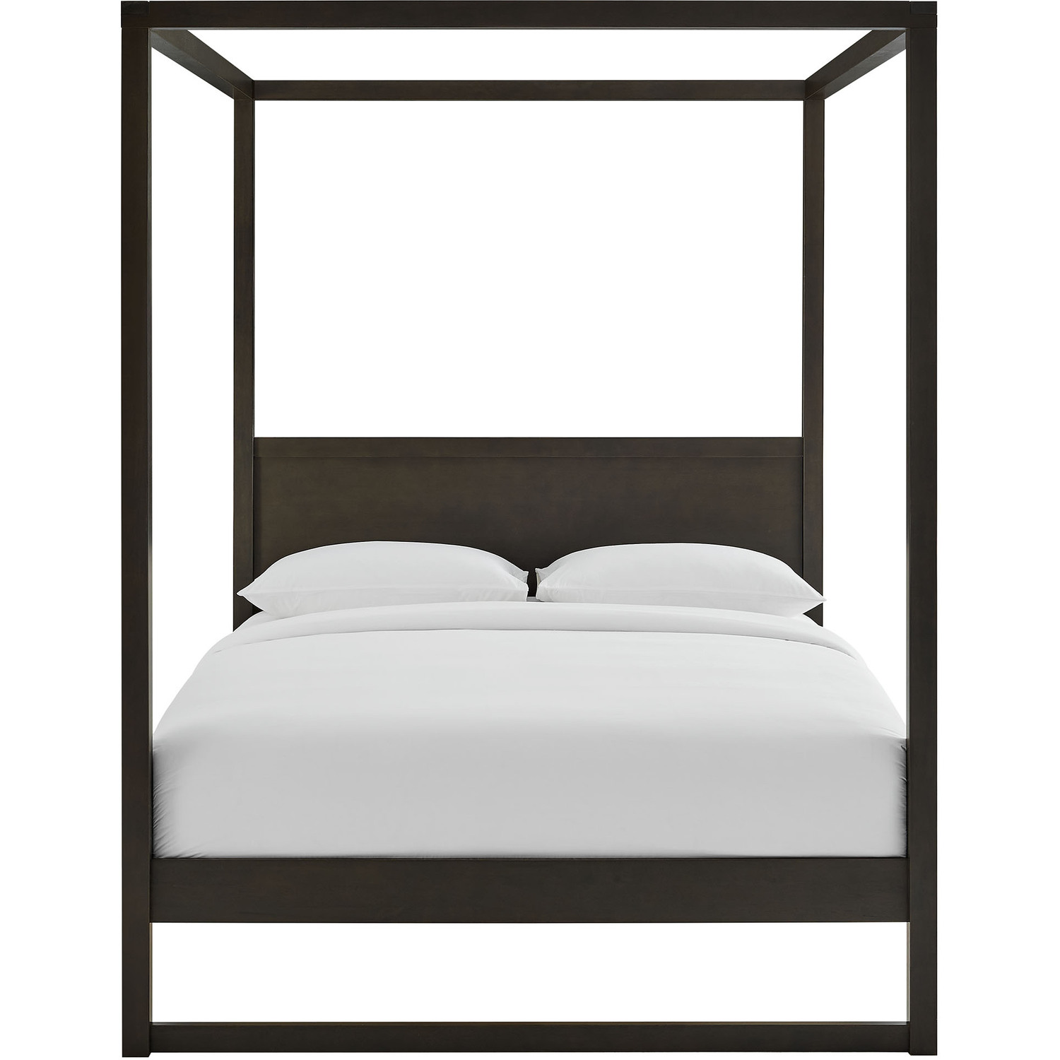 Make a bold statement in your bedroom with the Alva Queen Size Canopy Bed. Crafted from solid wood, this 4-post wood canopy platform bed frame offers a sturdy and stylish foundation for restful nights. The clean lines and open-frame canopy design bring a modern yet timeless aesthetic, while the integrated wood headboard adds warmth and structure. A durable wood slat support system eliminates the need for a box spring, ensuring lasting mattress support. Adjustable levelers provide added stability on uneven surfaces. Whether styled minimally or draped with flowing curtains, this queen canopy bed transforms any space into a cozy retreat. Assembly required. Weight Capacity: 800 lbs.4-Post Canopy Bed
