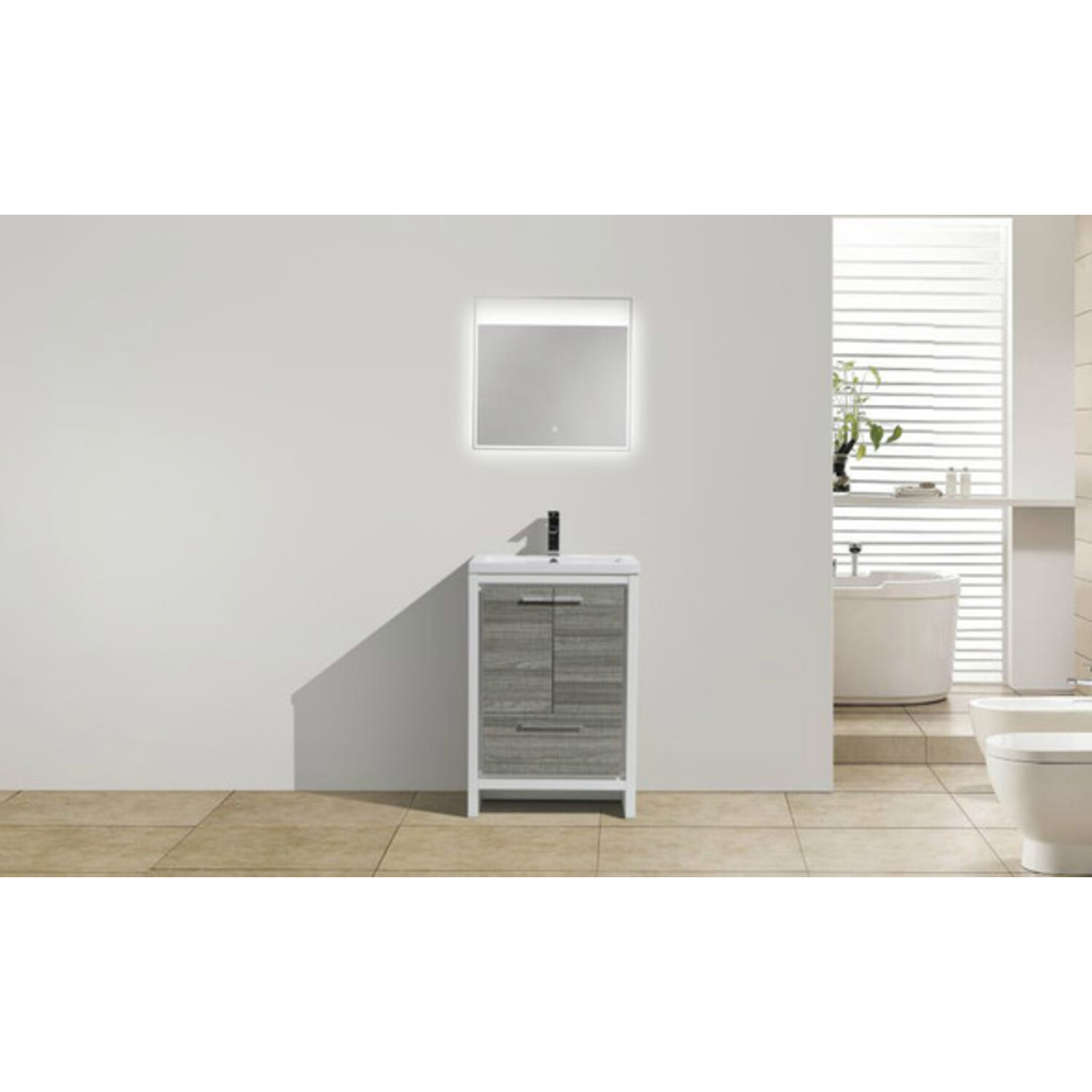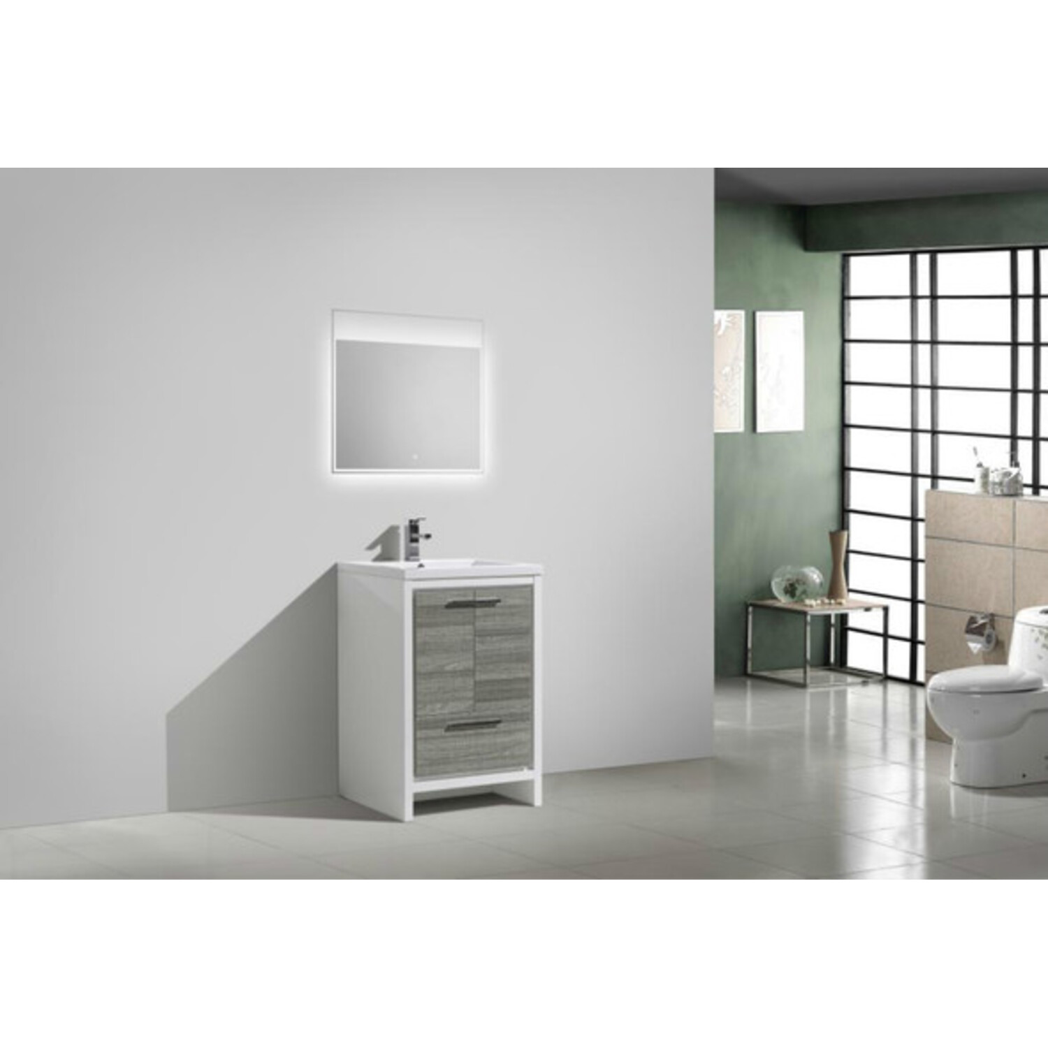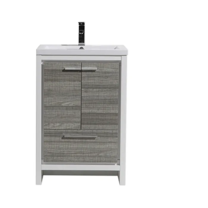 The Dolce Vanity is one of the most elegant modern Bathroom Vanities around. This 24" model comes with a durable pure white Acrylic Countertop and features two Doors and one Drawer with high quality European Hardware, that provides smooth soft-closing operation.