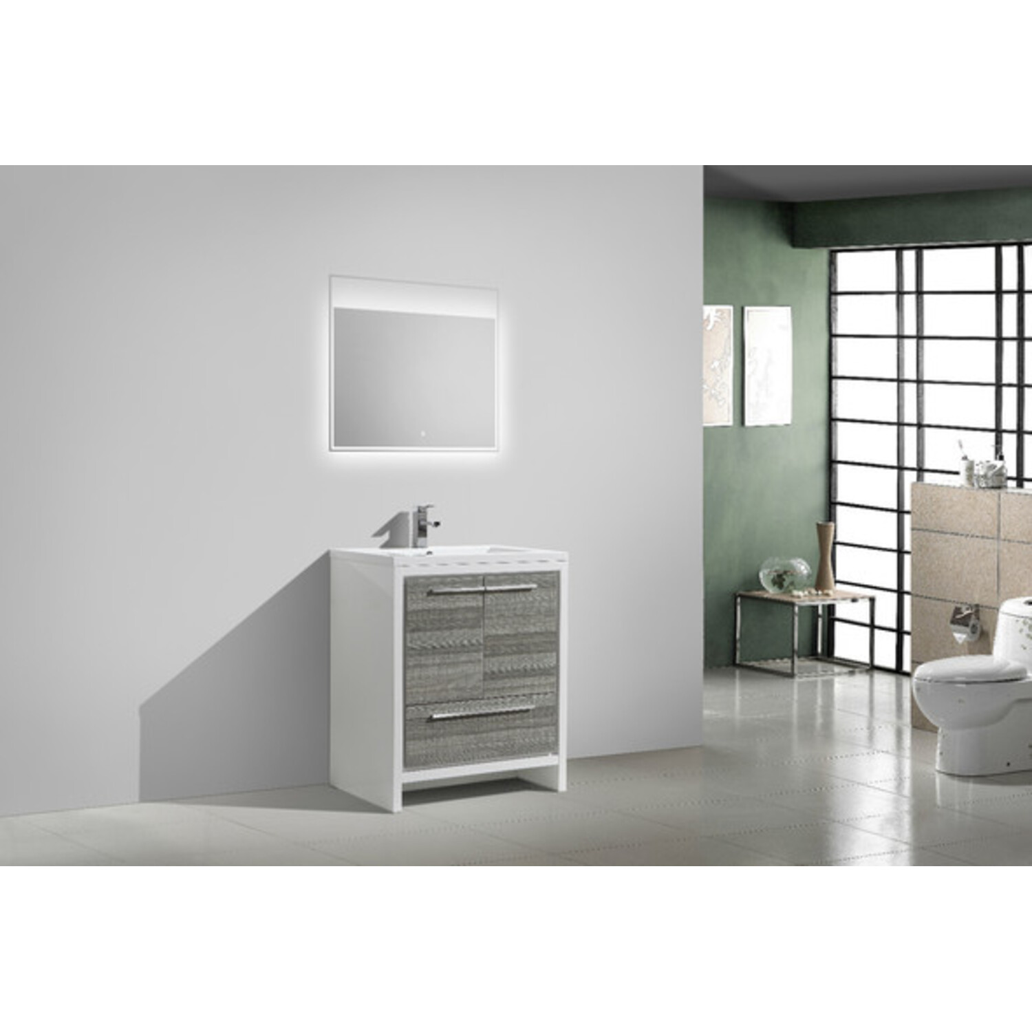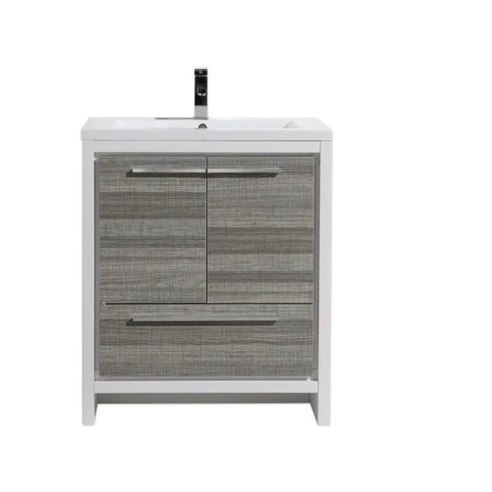 The Dolce Vanity is one of the most elegant modern Bathroom Vanities around. This 30" model comes with a durable pure white Acrylic Countertop and features two Doors and one Drawer with high quality European Hardware, that provides smooth soft-closing operation.