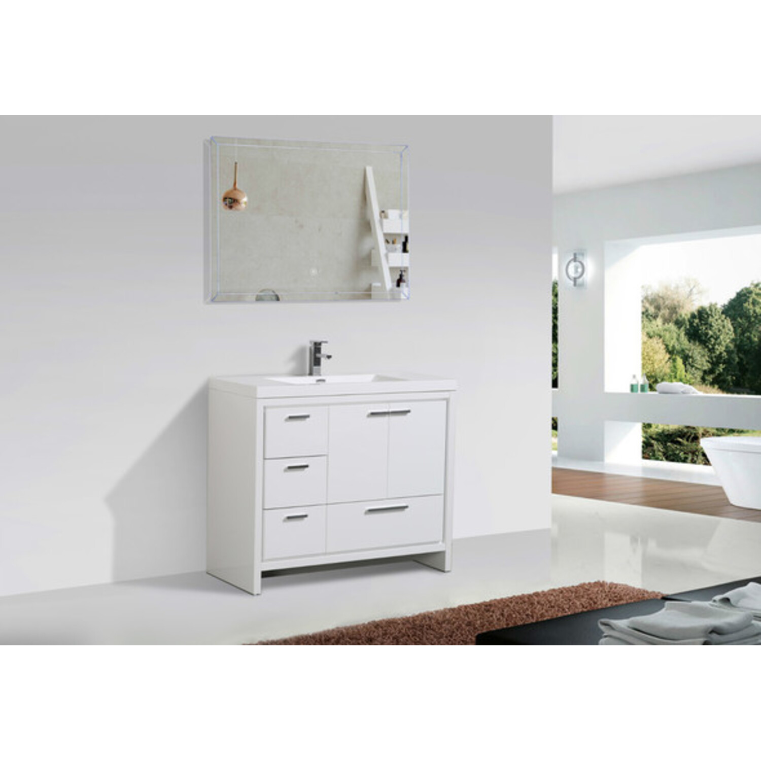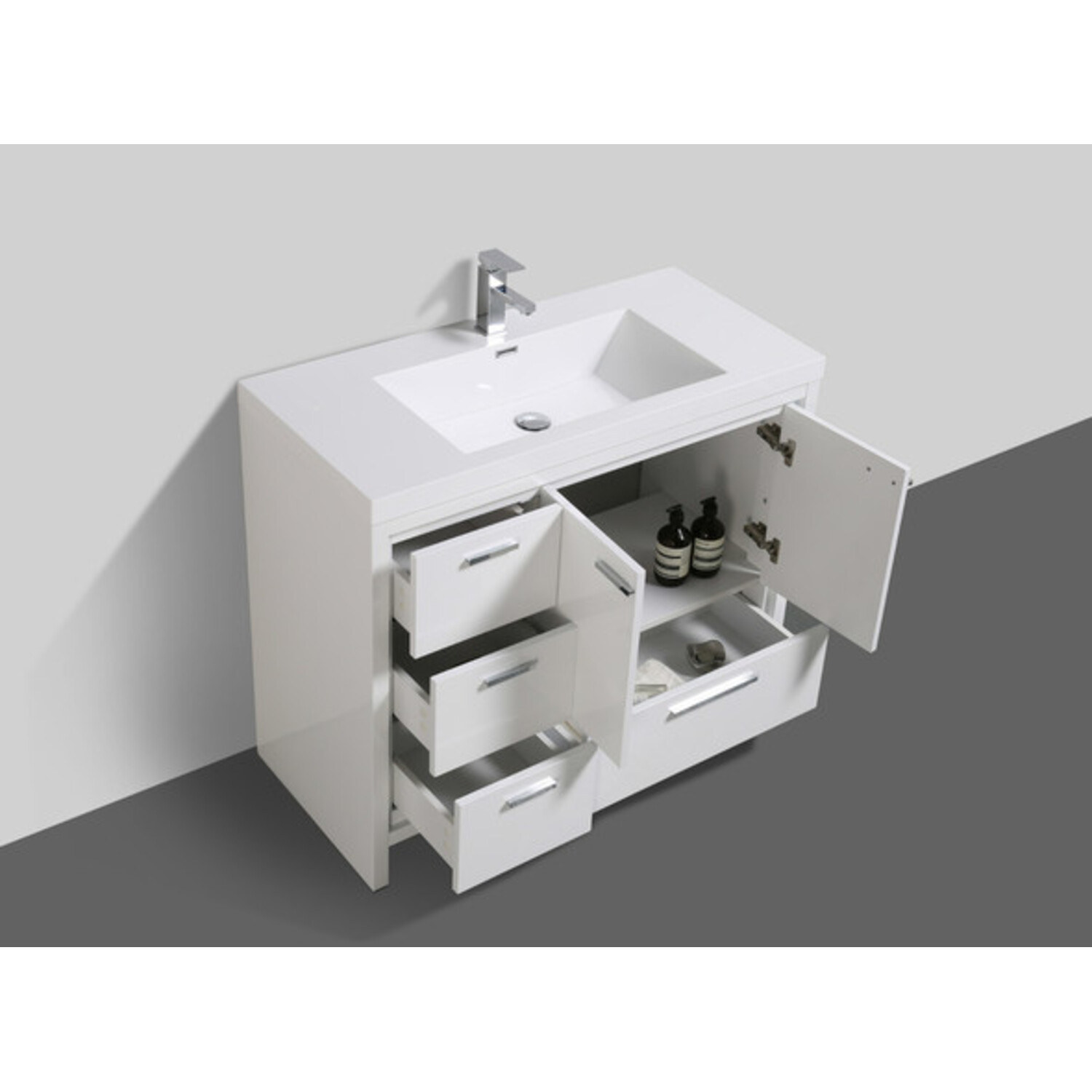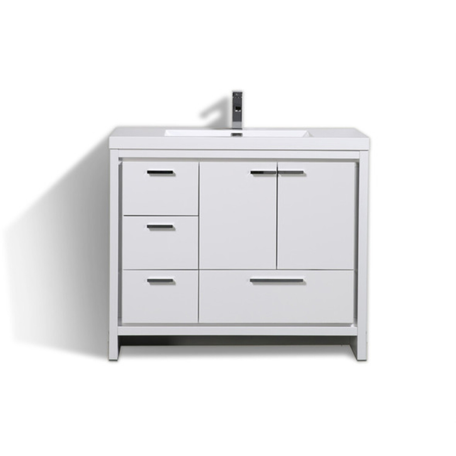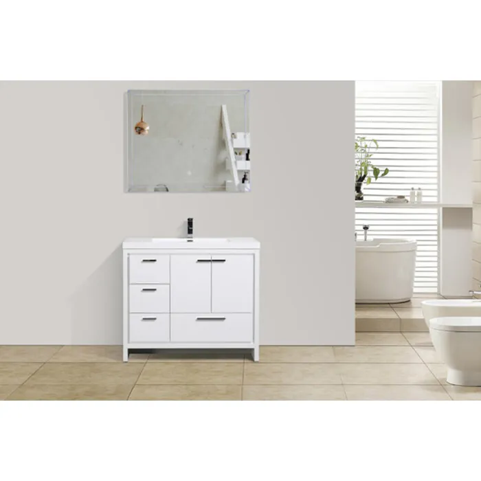 Moreno Bath Mod 42 inch Free Standing Modern Bathroom Vanity W/2 Doors And 3 Left Side Drawers In High Gloss White Rich Finish MD642LGW
