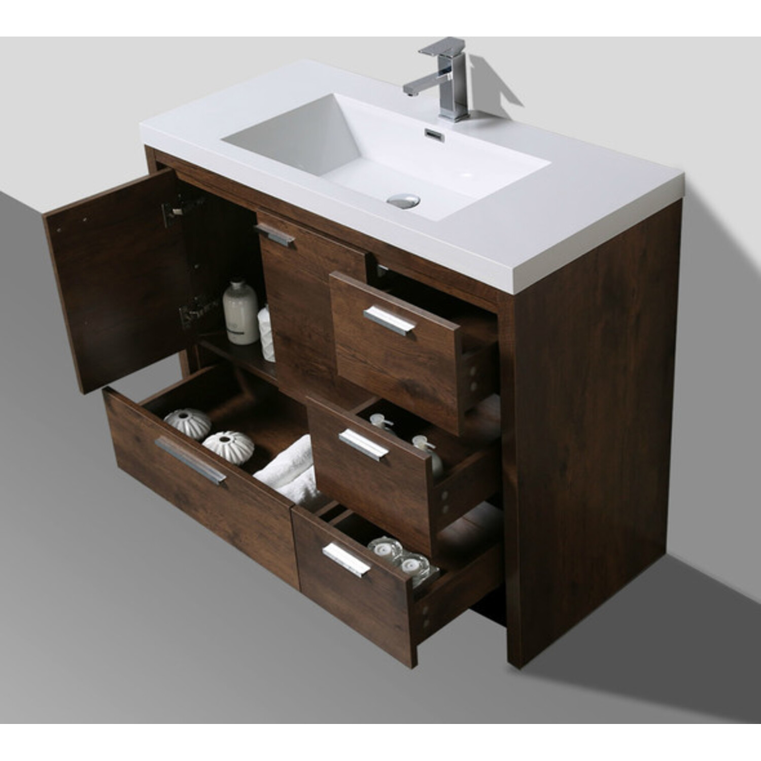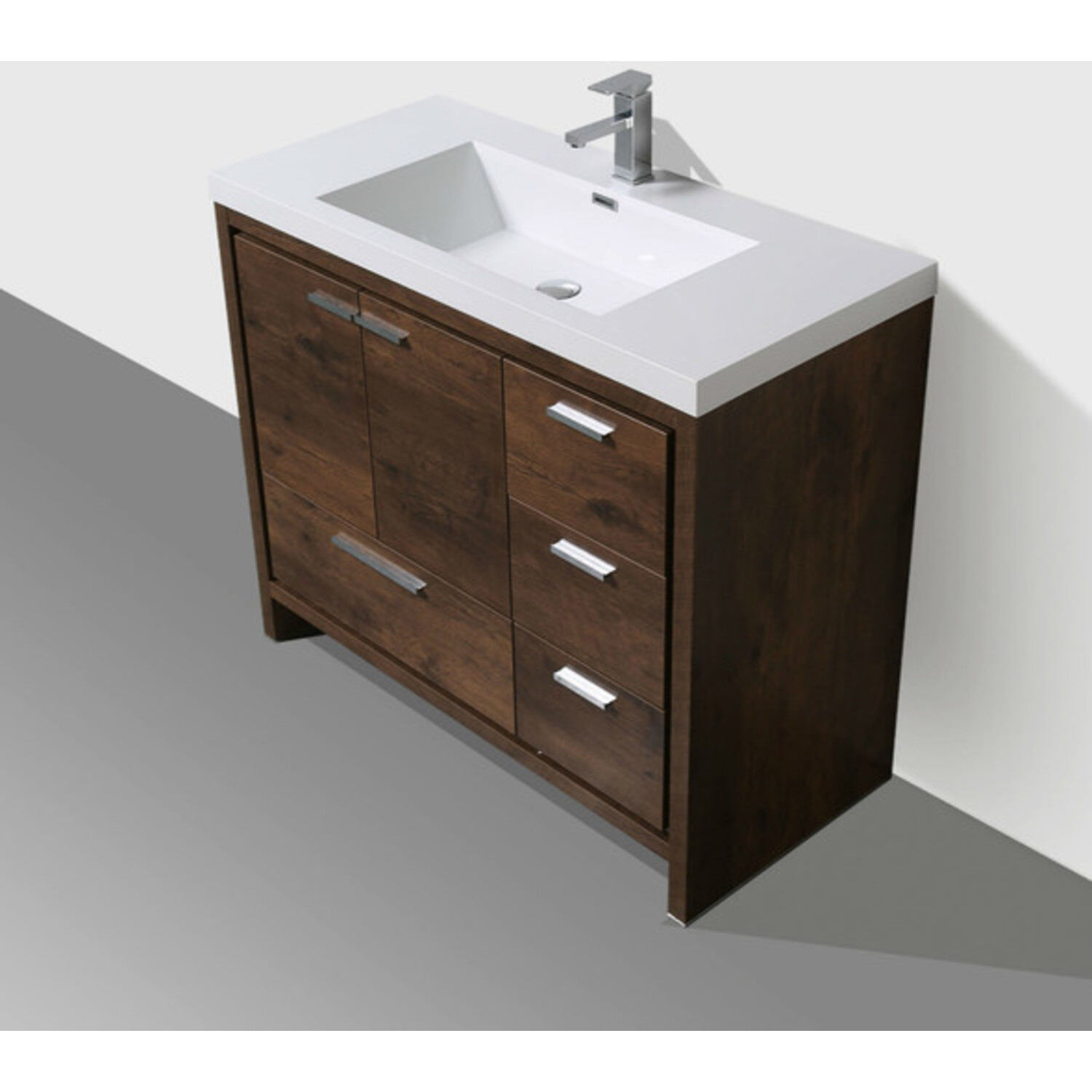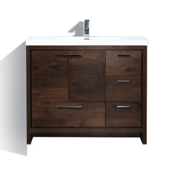 Moreno Bath Mod 42 inch Free Standing Modern Bathroom Vanity W/2 Doors And 3 Right Side Drawers In Rose Wood Finish MD642RRW