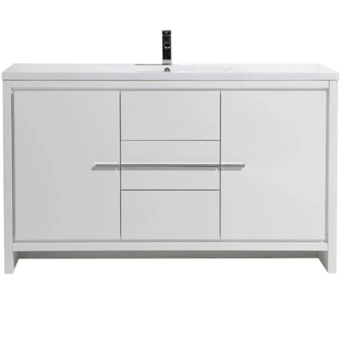 Moreno Bath Mod 60 inch Free Standing Modern Bathroom Vanity With 2 Doors And 3 Drawers And Single Acrylic Sink In High Gloss White Rich Finish MD660SGW