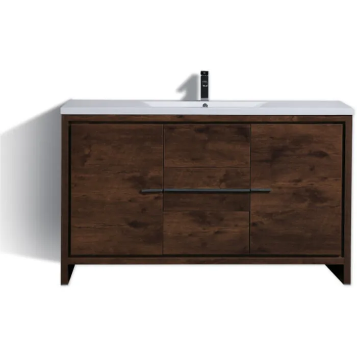 Moreno Bath Mod 60 inch Free Standing Modern Bathroom Vanity With 2 Doors And 3 Drawers And Single Acrylic Sink In Rose Wood Finish MD660SRW
