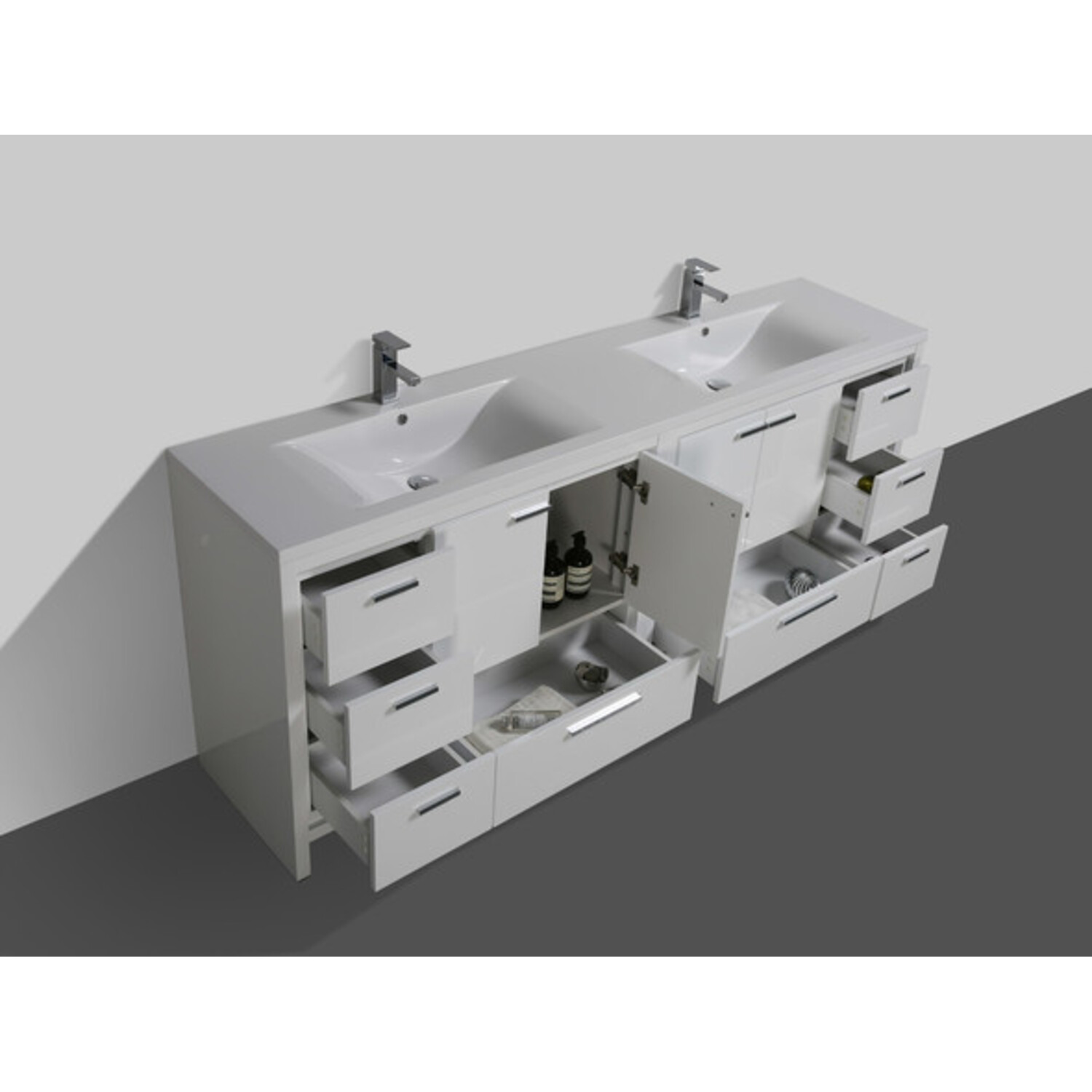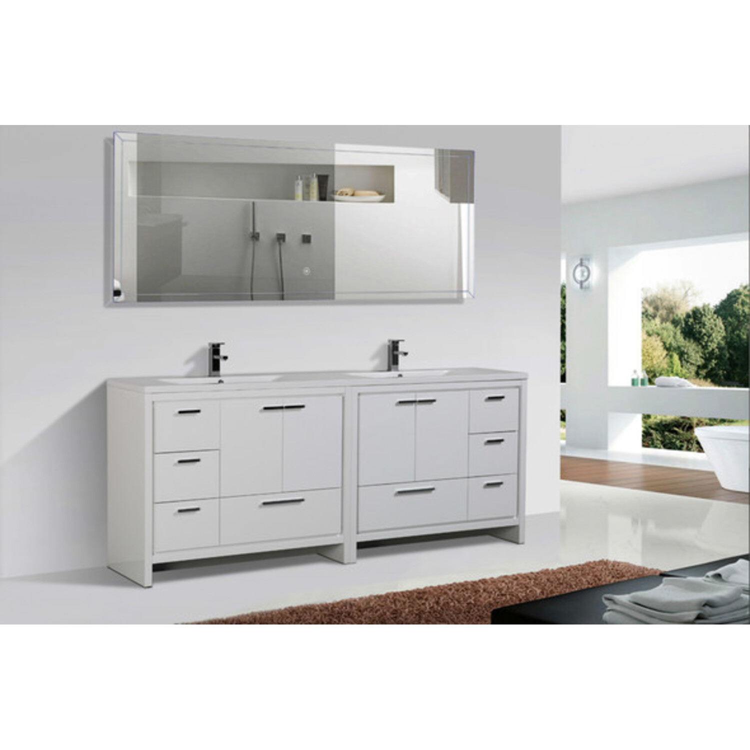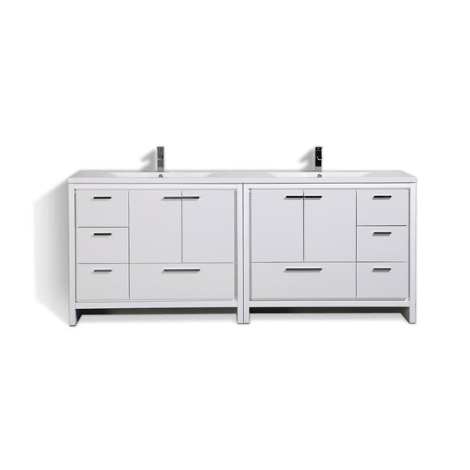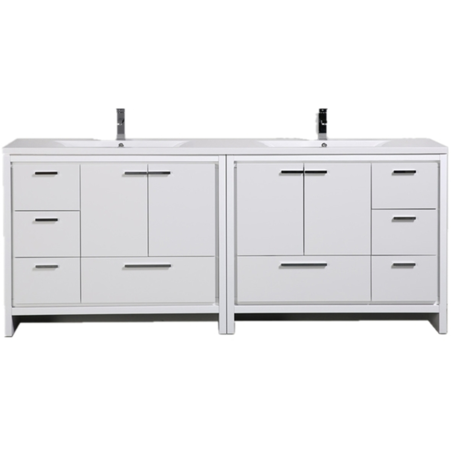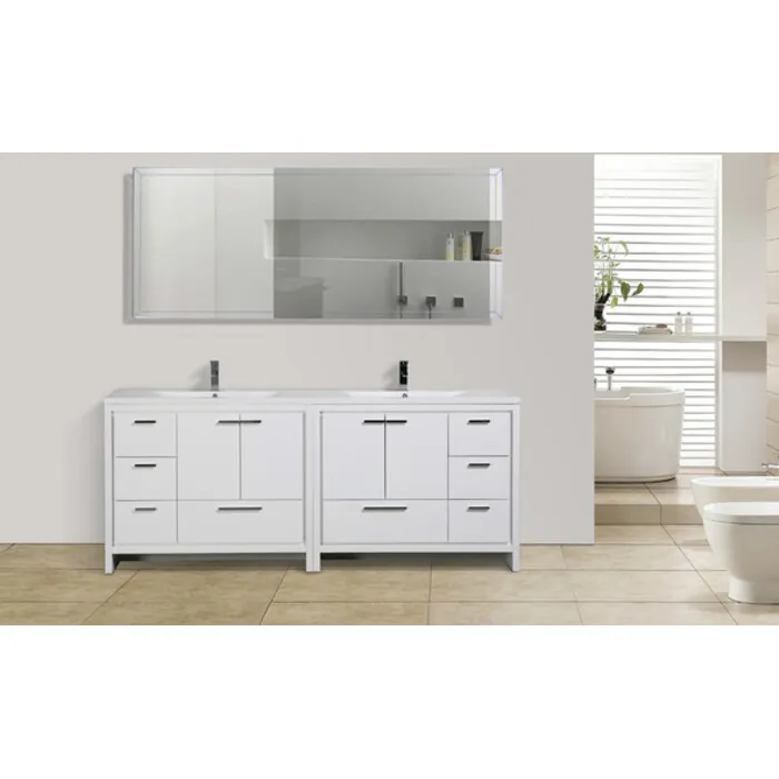 Moreno Bath Mod 84 inch Free Standing Modern Bathroom Vanity W/ 4 Doors 8 Drawers And Reeinforced Double Acrylic Sink In High Gloss White Rich Finish MD684GW