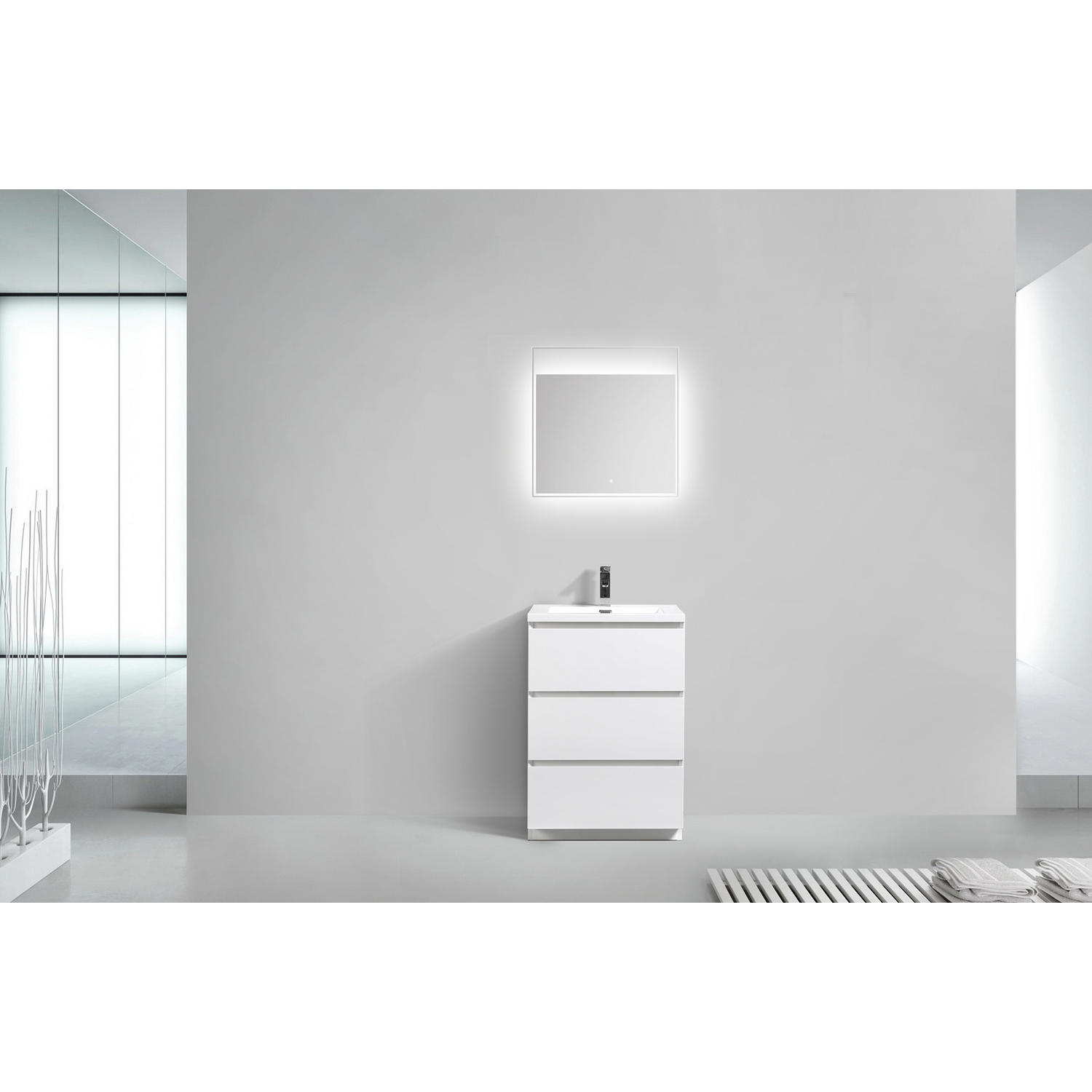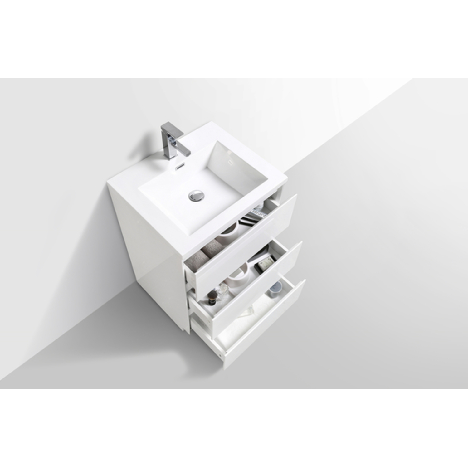 Moreno Bath Moa 24 inch Free Standing Modern Bathroom Vanity With Reinforced Acrylic Sink In Hiigh Gloss White Finish MOA24-GW