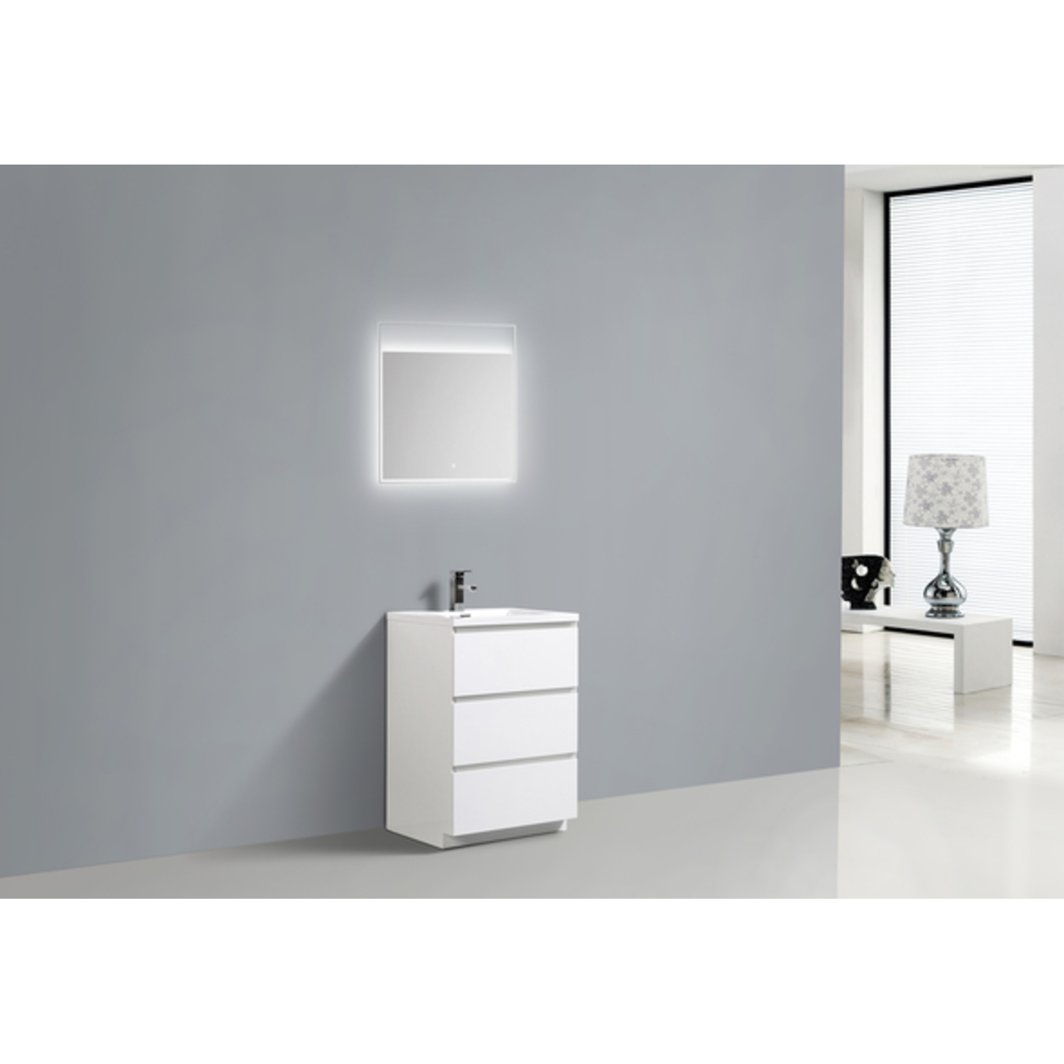 The MOA is one of the most elegant modern Bathroom Vanities around. This 24" model comes with a reinforced Acrylic sink, Marine Veneer Constructed Console that is fully moister and water proof, with high quality European DTC Hardware, that provides smooth 3 drawers.