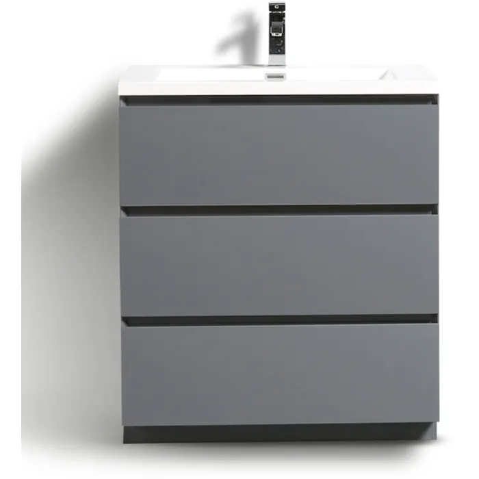 Moreno Bath Moa 30 inch Free Standing Modern Bathroom Vanity With Reinforced Acrylic Sink In Hiigh Gloss Grey Finish MOA30-GR