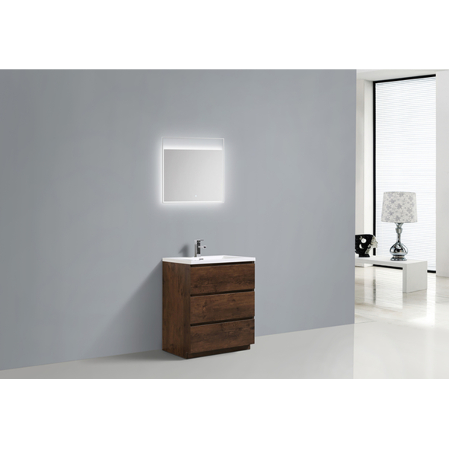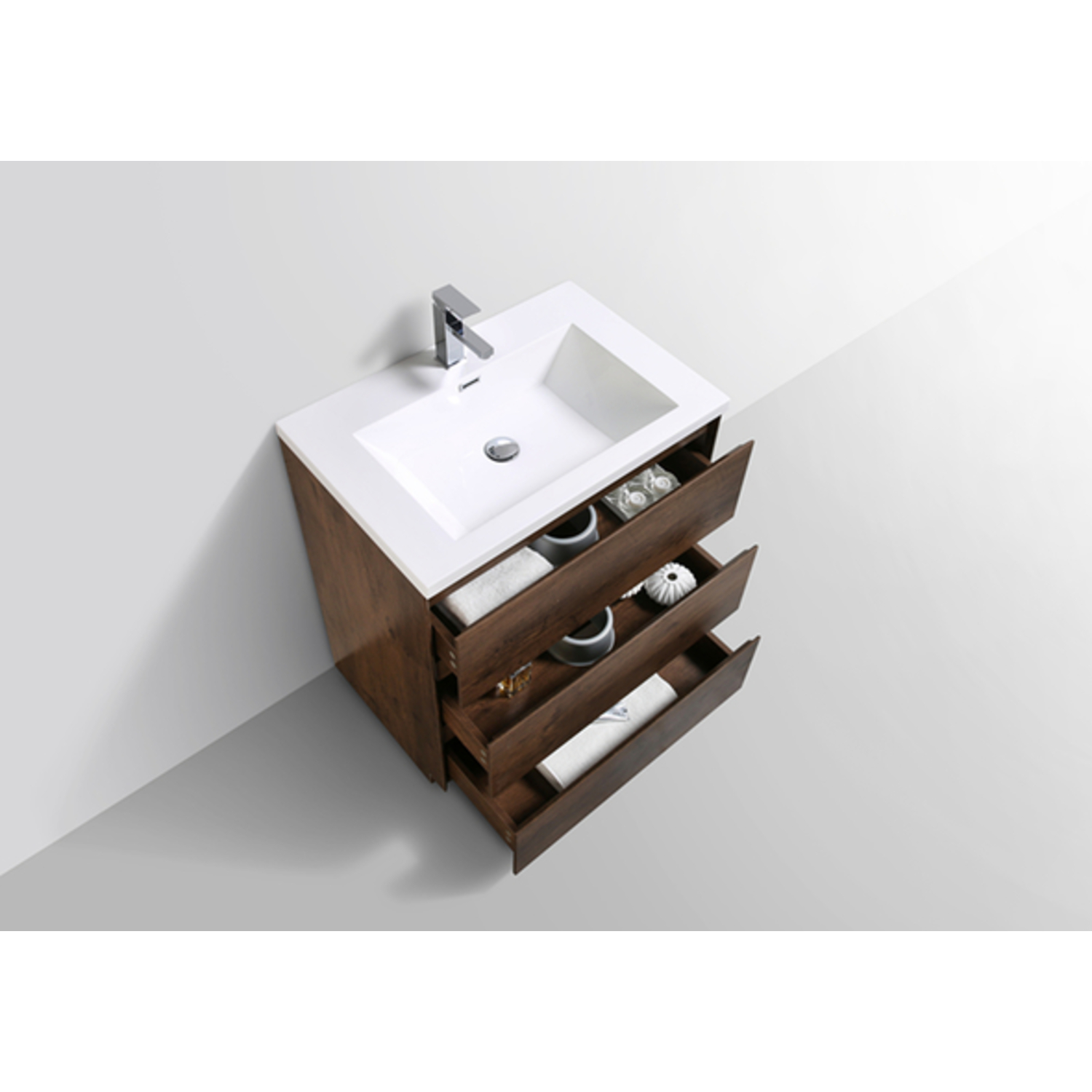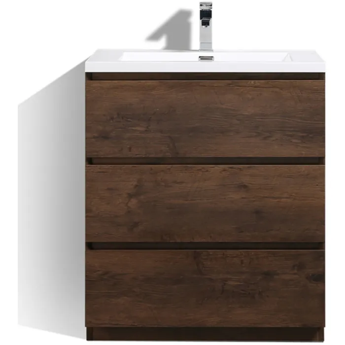 Moreno Bath Moa 30 inch Free Standing Modern Bathroom Vanity With Reinforced Acrylic Sink In Rose Wood Finish MOA30-RW