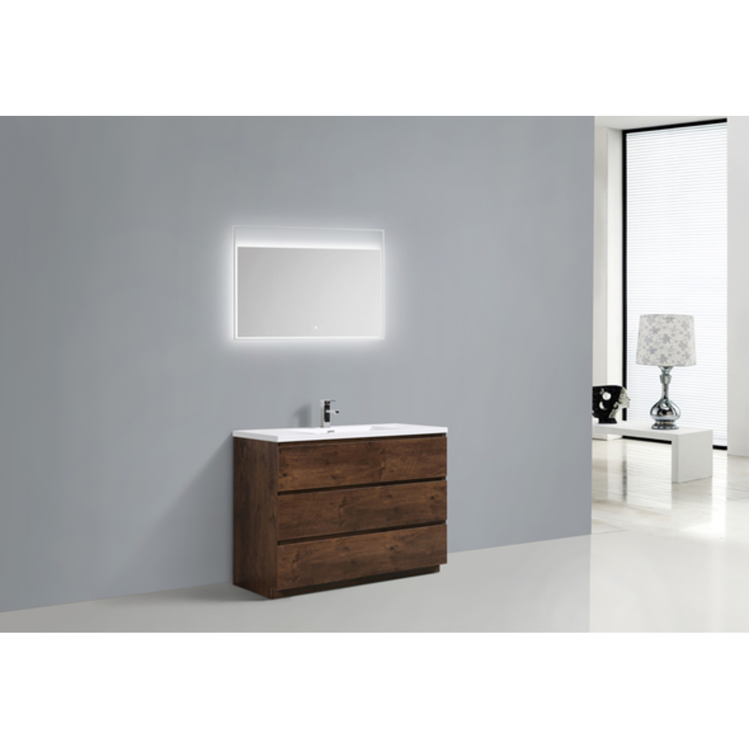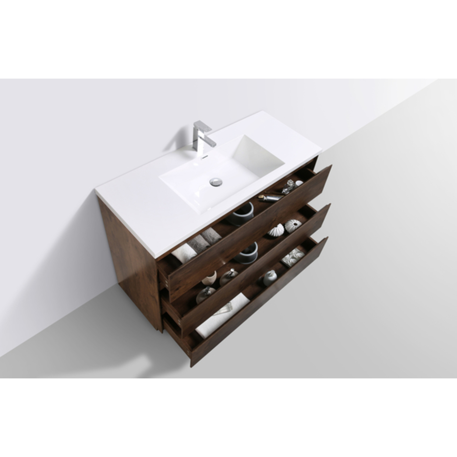 Moreno Bath Moa 48 inch Free Standing Modern Bathroom Vanity With Reinforced Acrylic Sink In Rose Wood Finish MOA48-RW