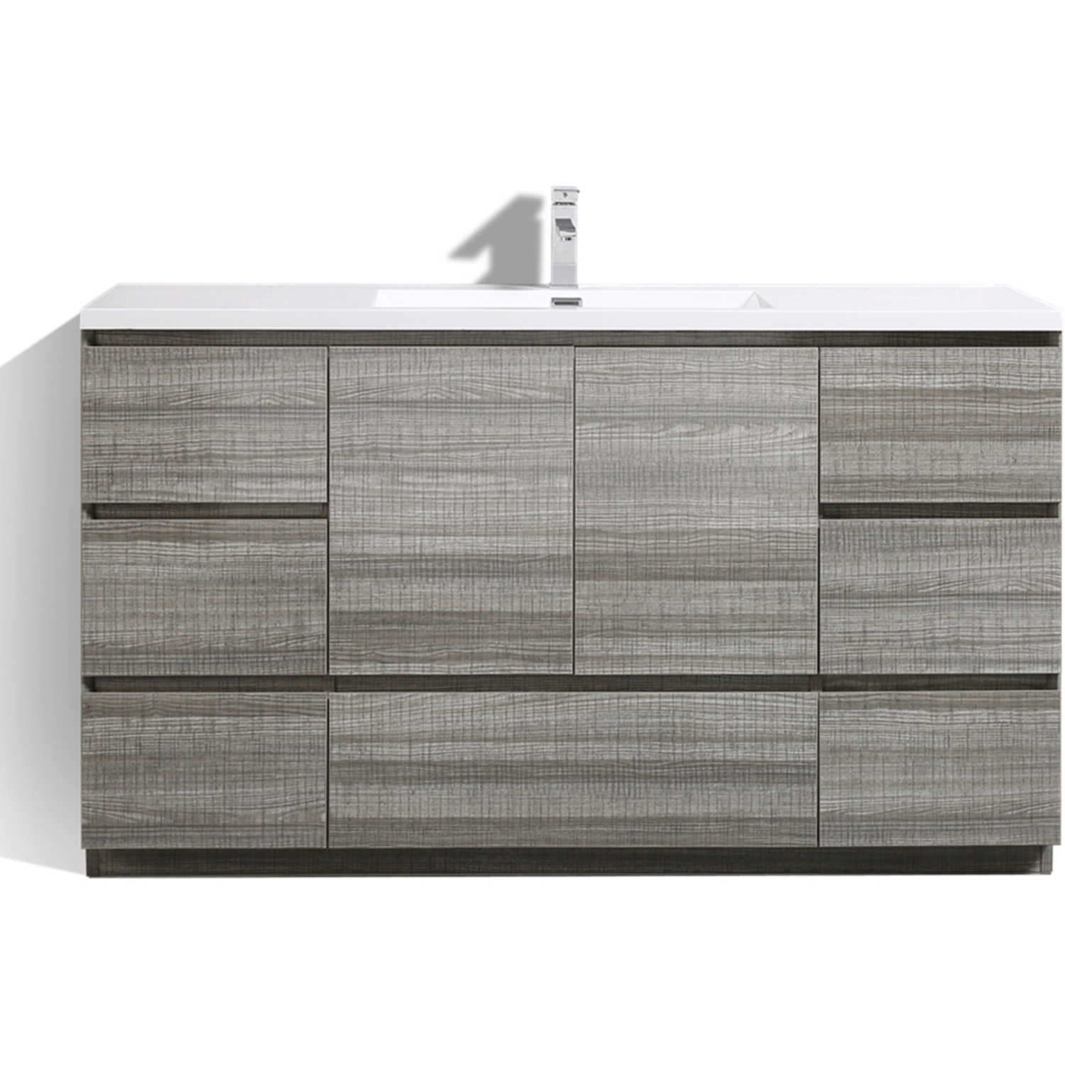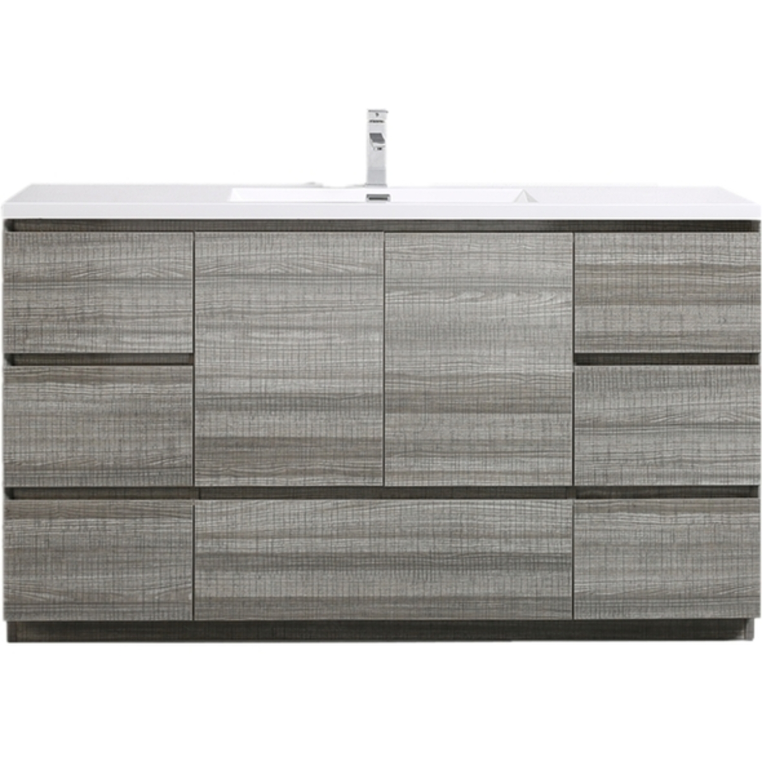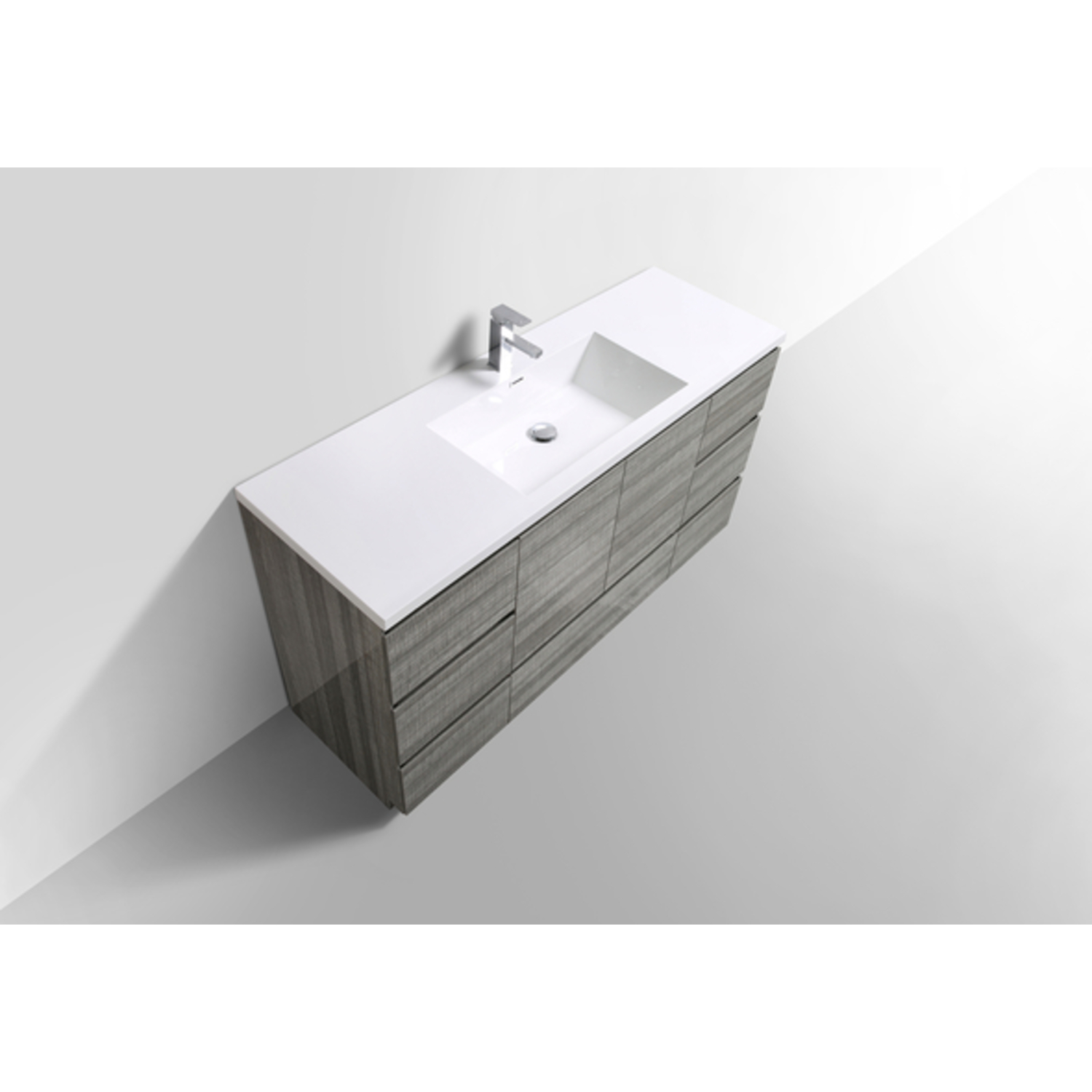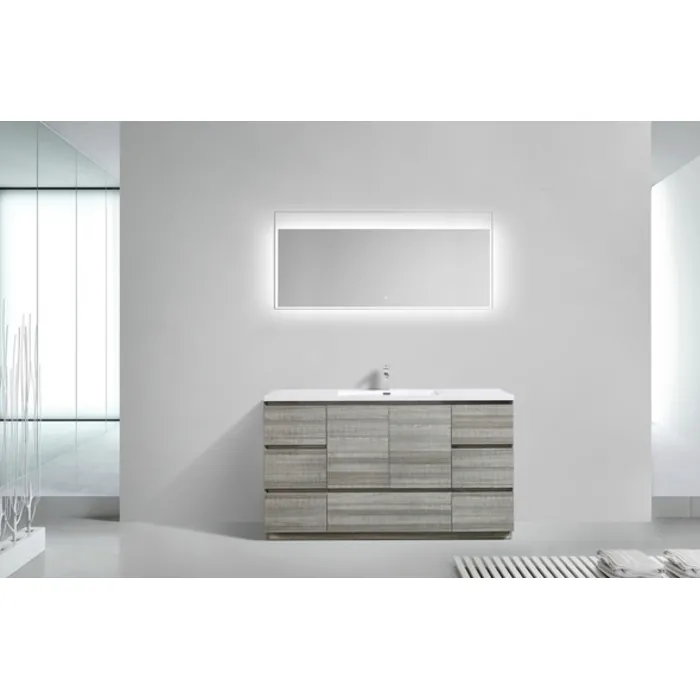 Moreno Bath Moa 60 inch Single Sink Free Standing Modern Bathroom Vanity With Reinforced Acrylic Sink In Hiigh Gloss Ash Grey Finish MOA60S-HG