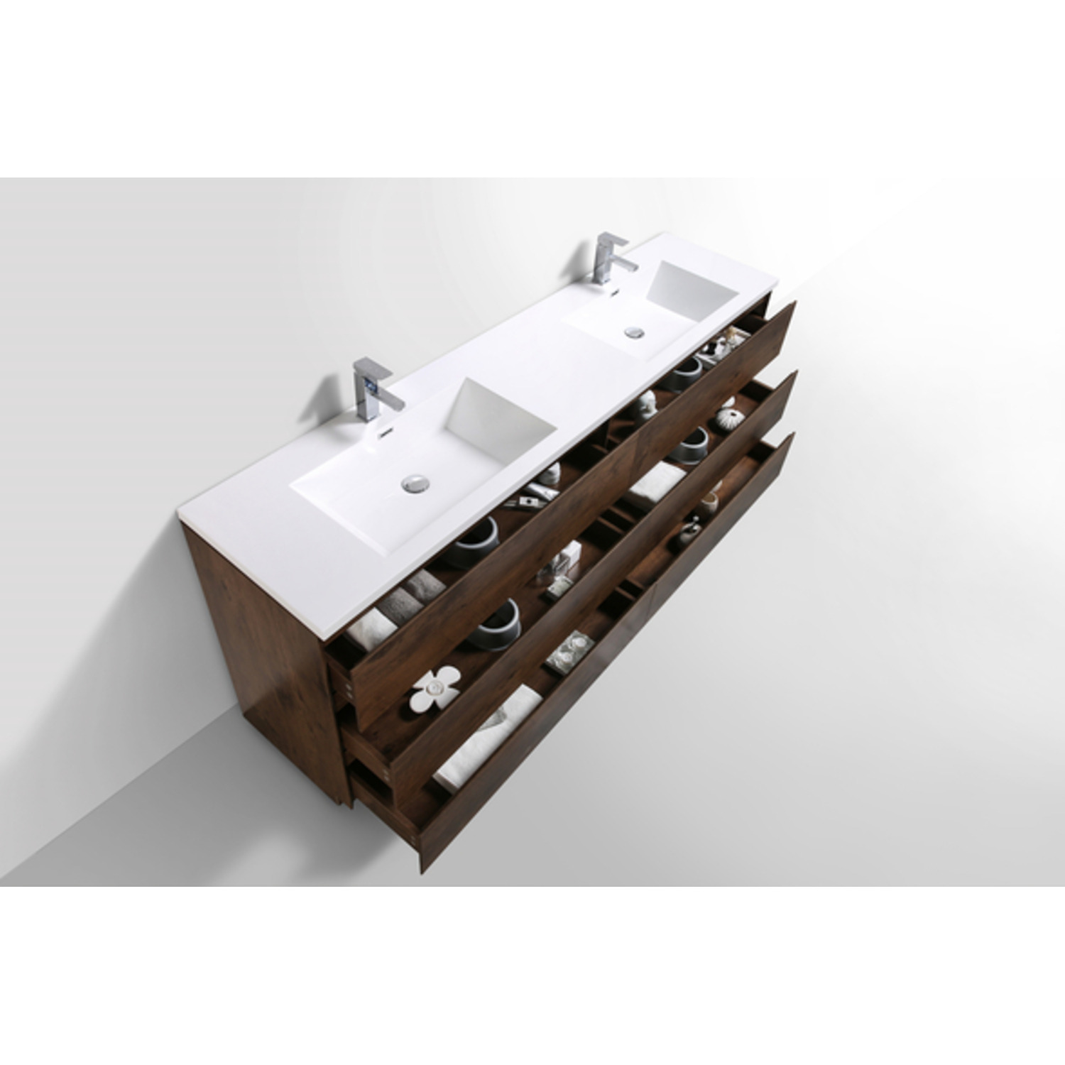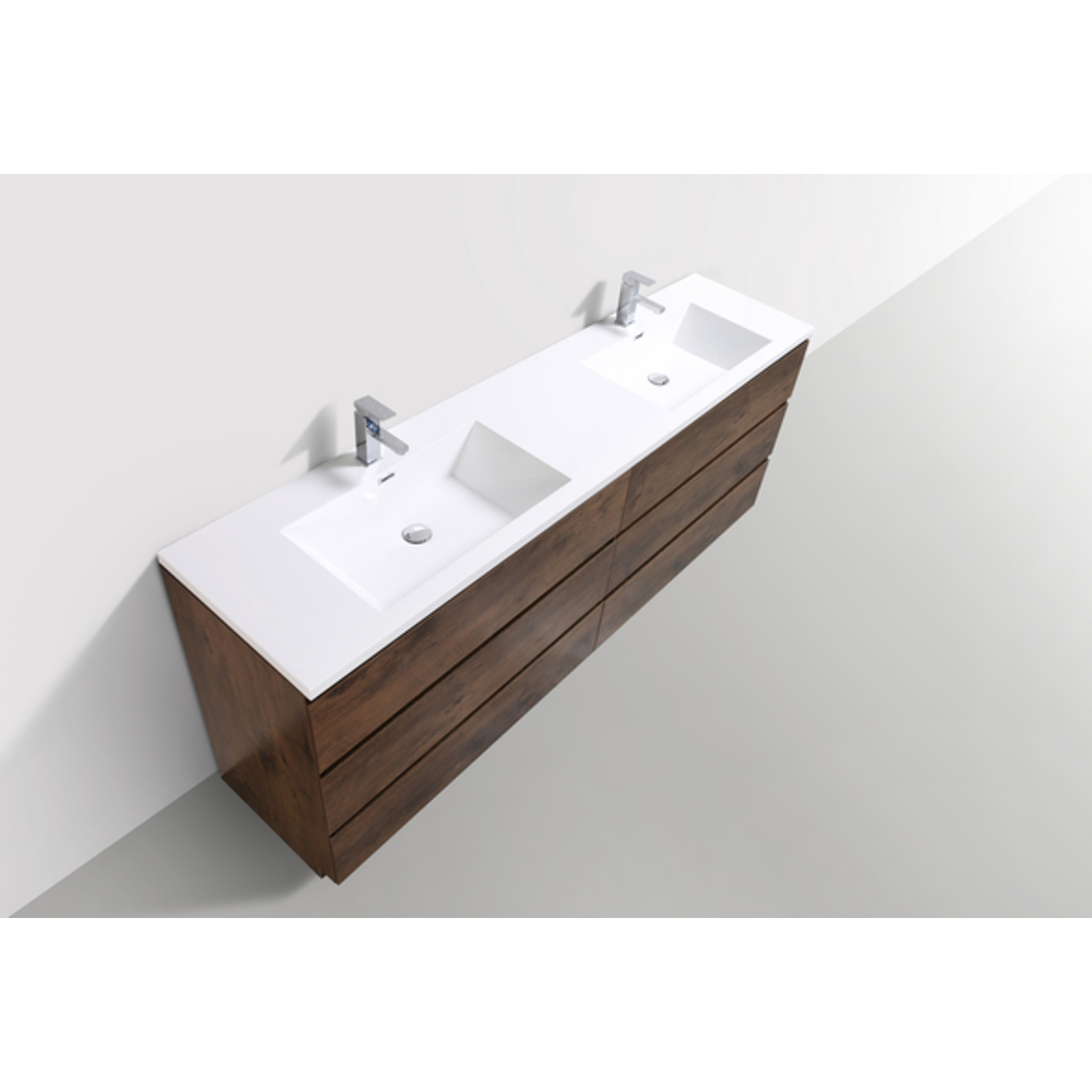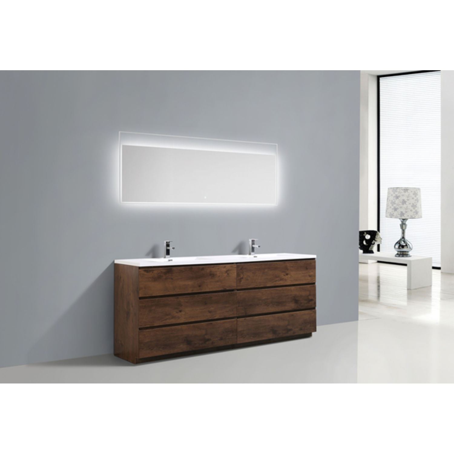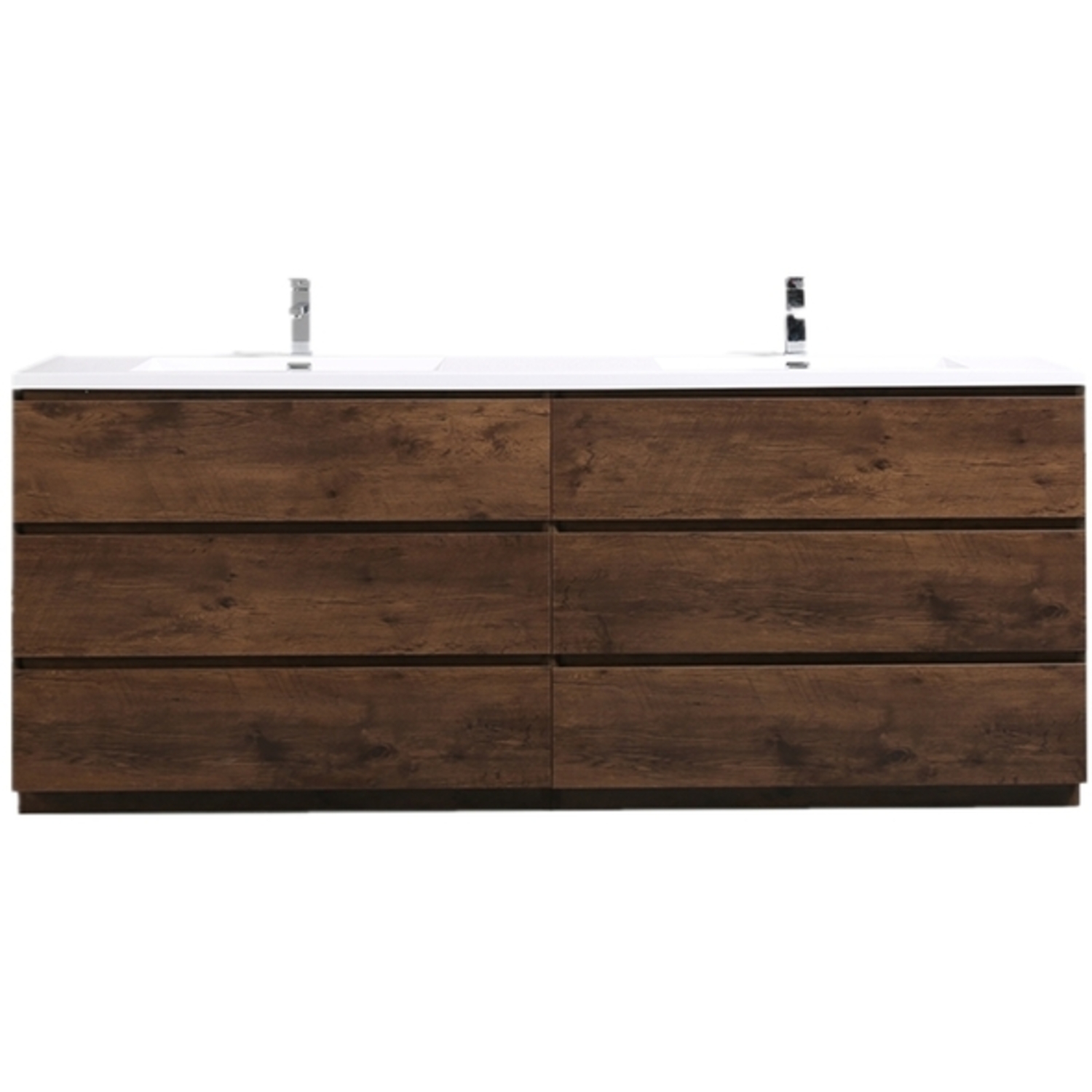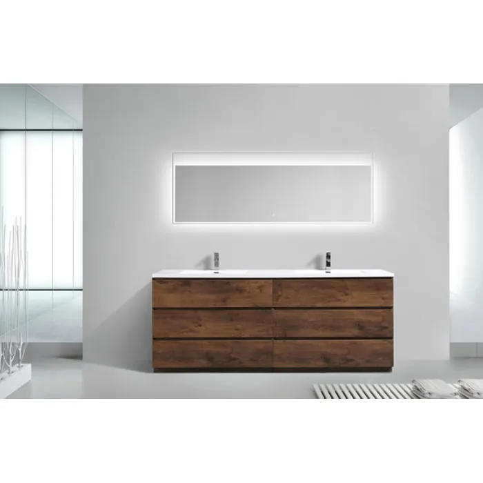 Moreno Bath Moa 84 inch Double Sink Free Standing Modern Bathroom Vanity With Reinforced Acrylic Sink In Rose Wood Finish MOA84D-RW