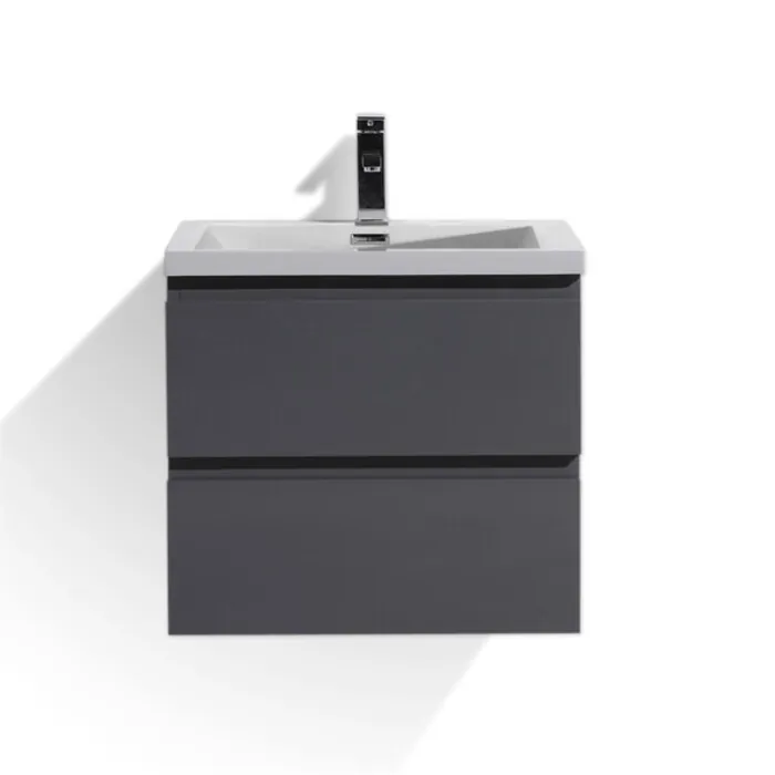 Moreno Bath Mob 24 inch Wall Mounted Modern Bathroom Vanity With Reinforced Acrylic Sink In High Gloss Grey Rich Finish MOB24-GR