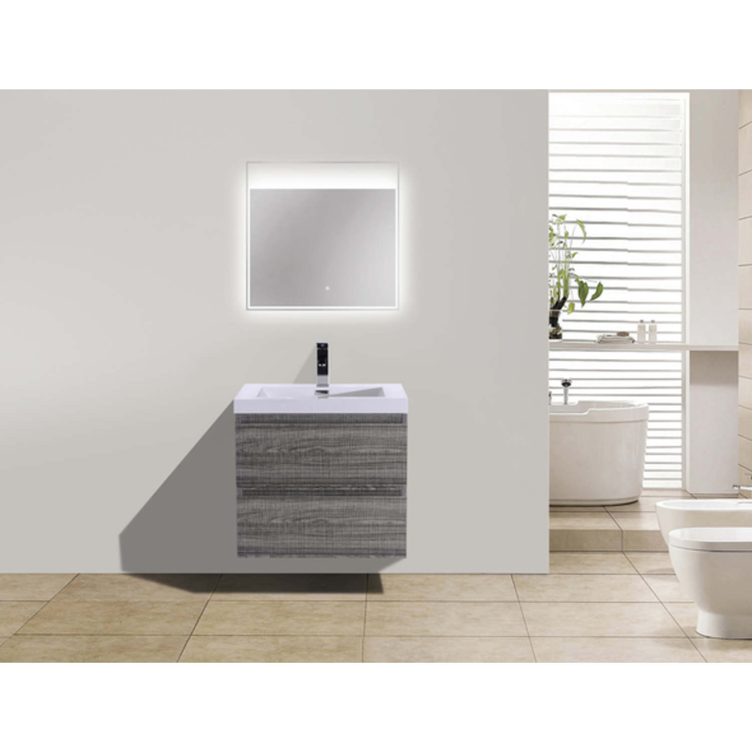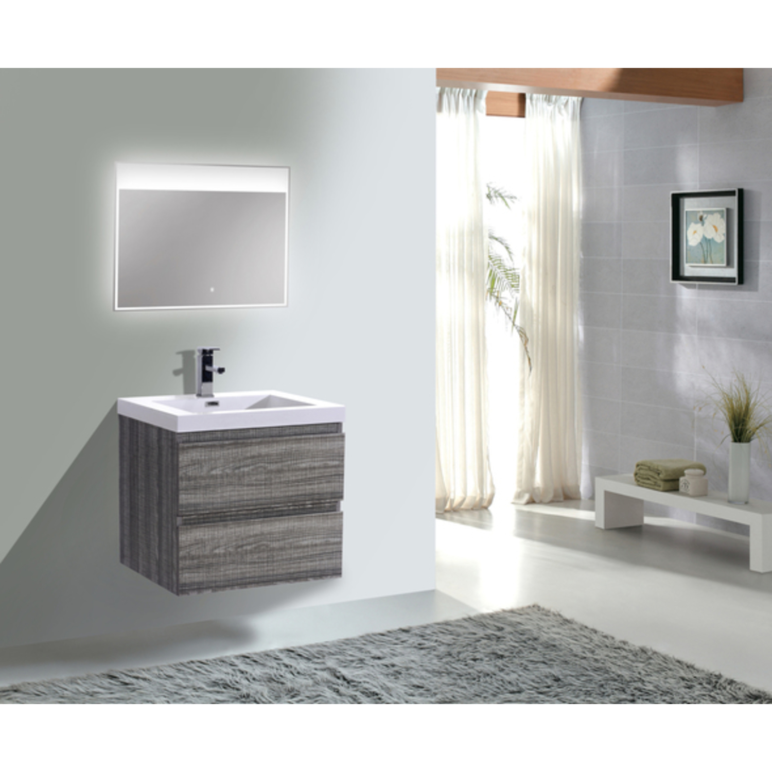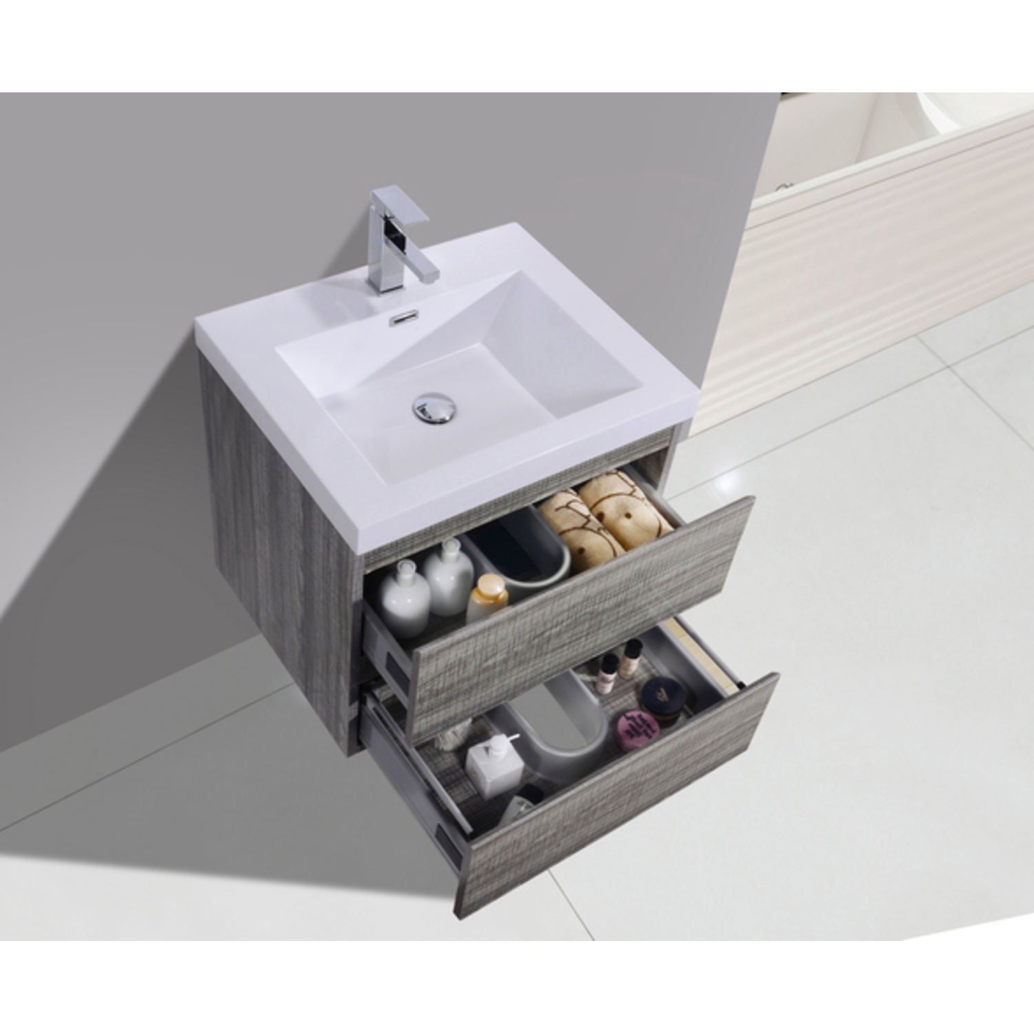 Moreno Bath Mob 24 inch Wall Mounted Modern Bathroom Vanity With Reinforced Acrylic Sink In High Gloss Ash Grey Rich Finish MOB24-HG