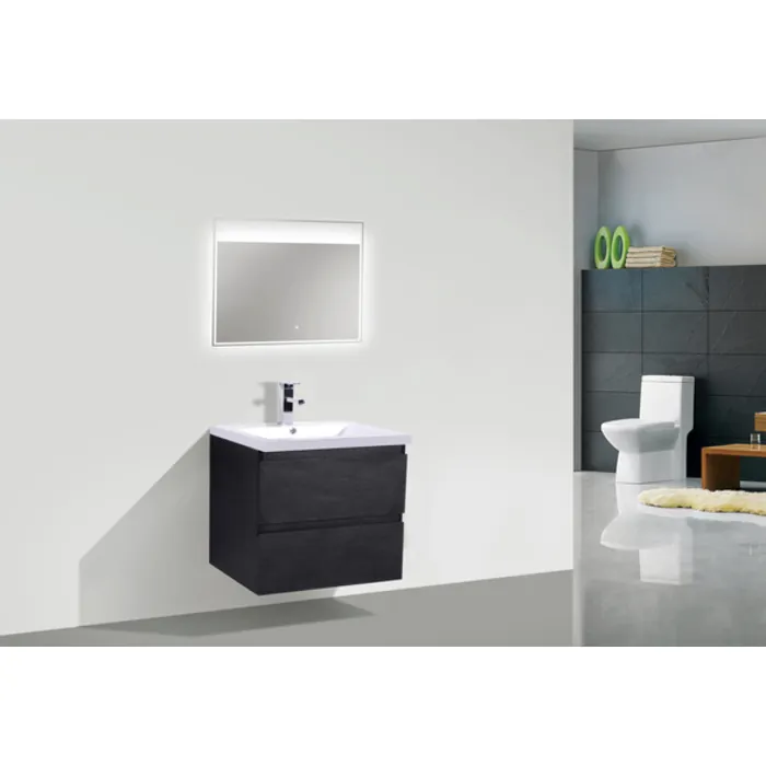The Moreno is one of the most elegant modern Bathroom Vanities around. This 24" model comes with a reinforced Acrylic sink, Marine Veneer Constructed Console that is fully moister and water proof, with high quality European DTC Hardware, that provides smooth soft-closing operation drawers.