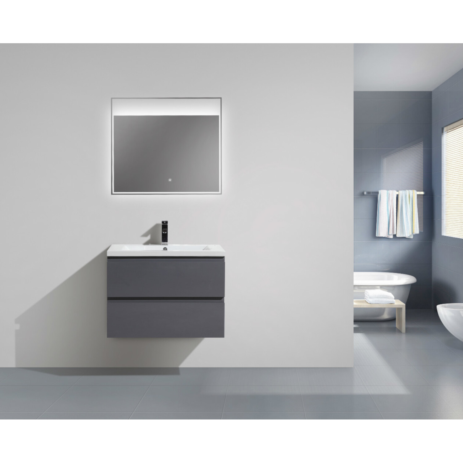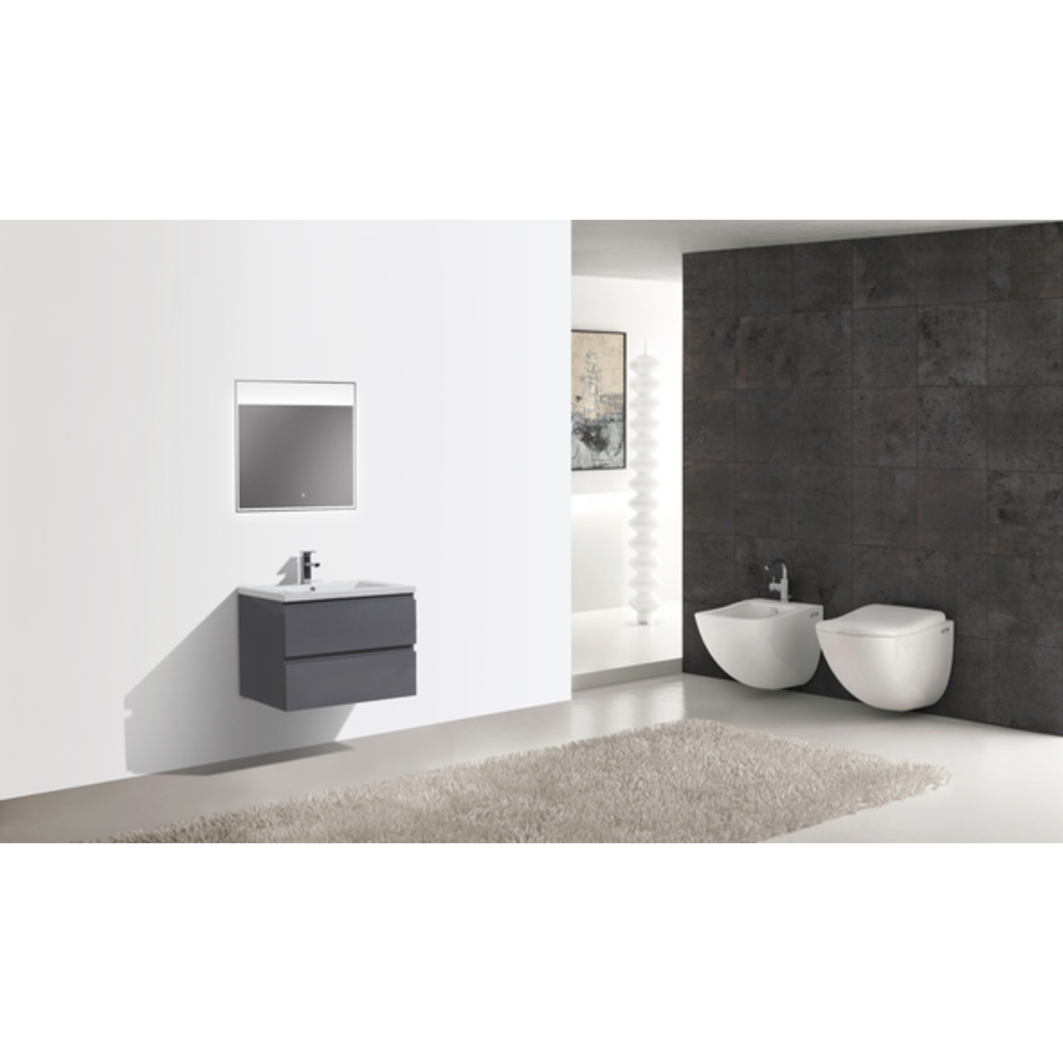 Moreno Bath Mob 30 inch Wall Mounted Modern Bathroom Vanity With Reinforced Acrylic Sink In High Gloss Grey Rich Finish MOB30-GR