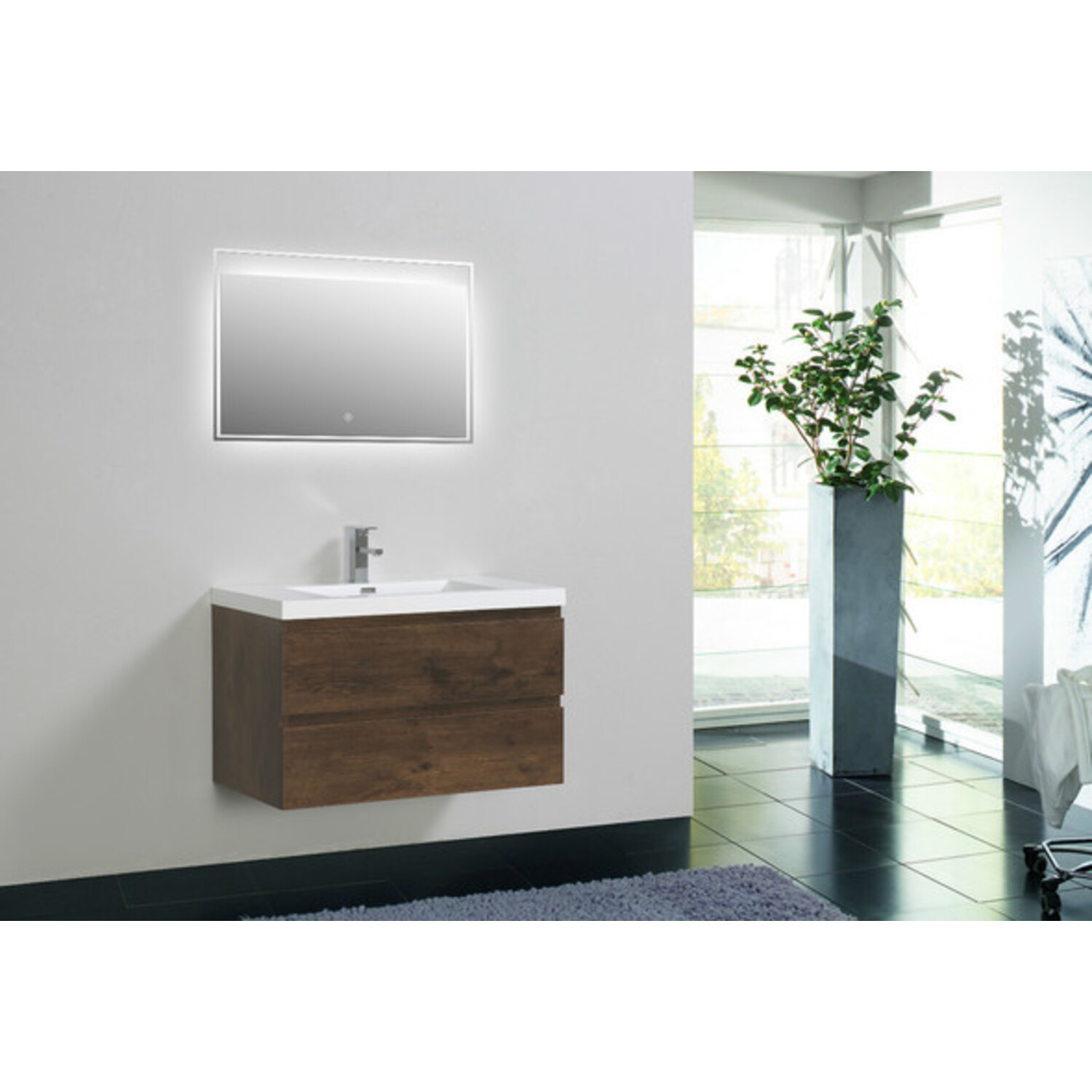 Moreno Bath Mob 36 inch Wall Mounted Modern Bathroom Vanity With Reinforced Acrylic Sink In Rosewood Durable Finish MOB36-RW