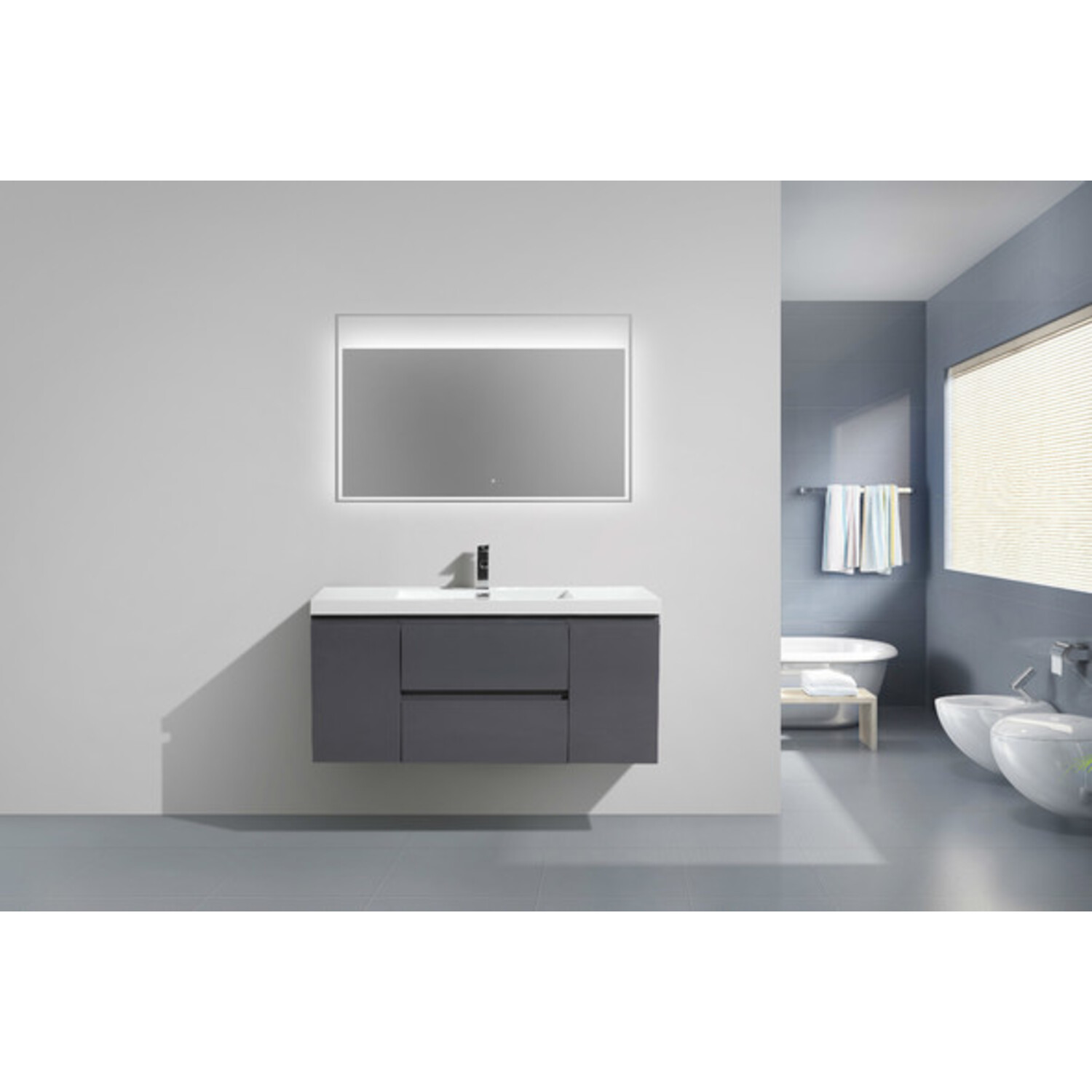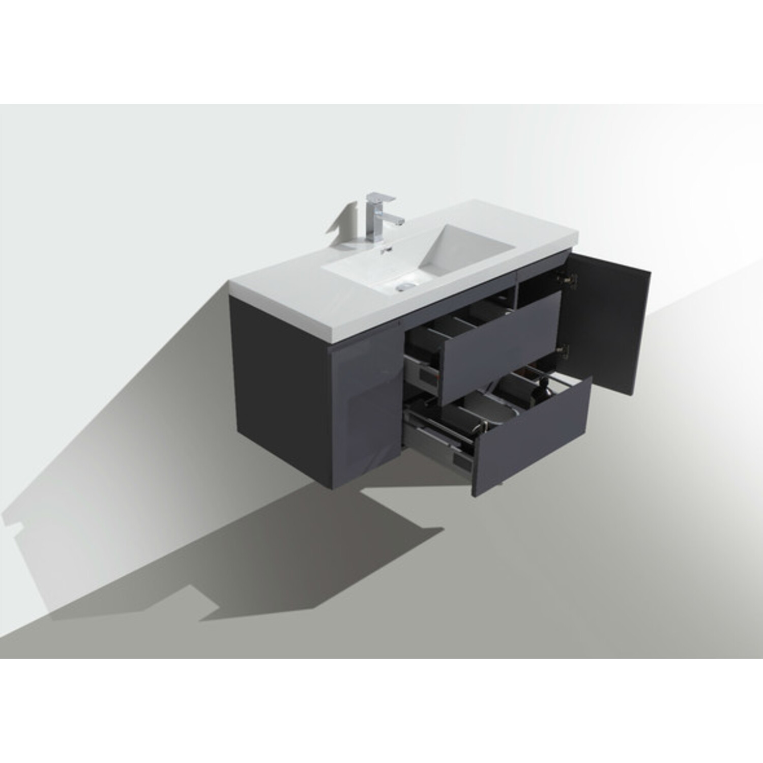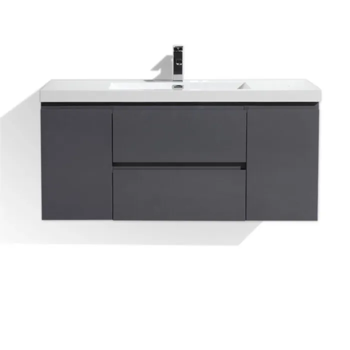Moreno Bath Mob 48 inch Wall Mounted Modern Bathroom Vanity With Reinforced Acrylic Sink In High Gloss Grey Rich Finish MOB48-GR