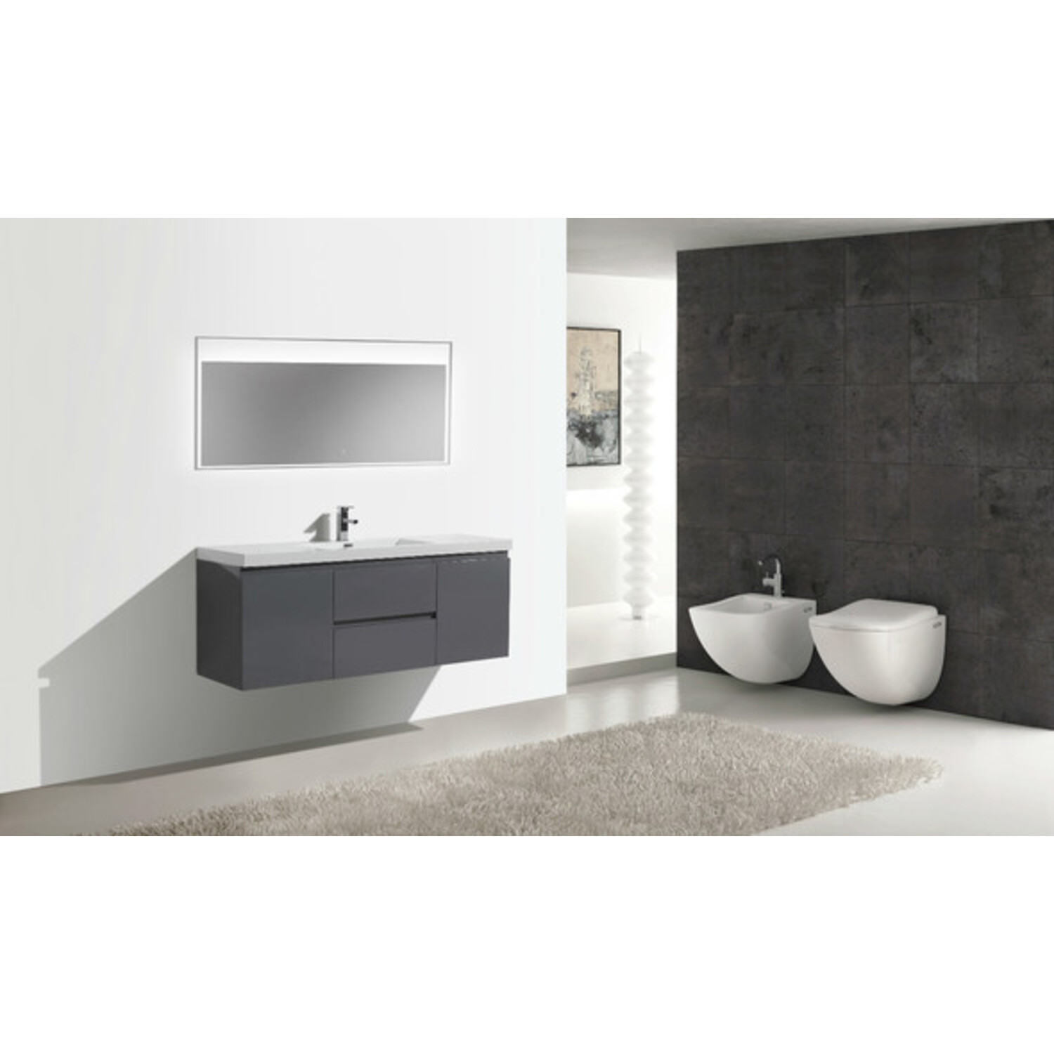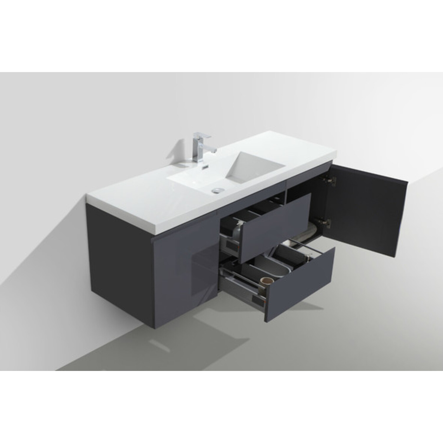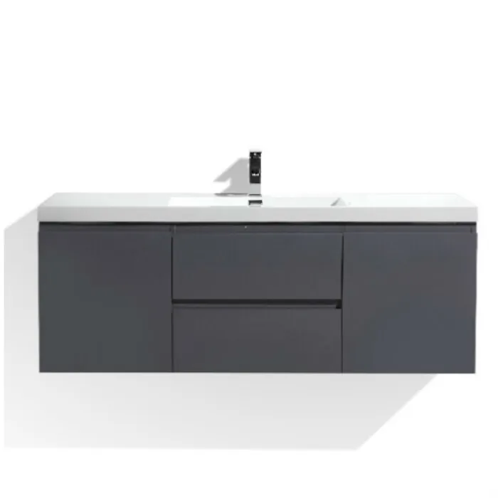Moreno Bath Mob 60 inch Single Sink Wall Mounted Modern Bathroom Vanity With Reinforced Acrylic Sink In High Gloss Grey Rich Finish MOB60S-GR