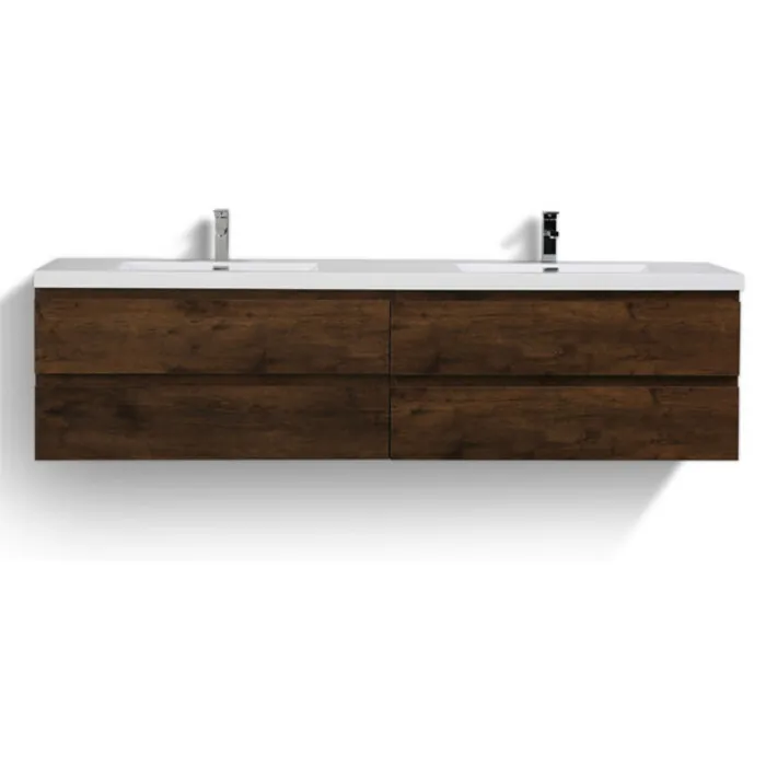 Moreno Bath Mob 72 inch Double Sink Wall Mounted Modern Bathroom Vanity With Reinforced Acrylic Sink In Rosewood Durable Finish MOB72D-RW