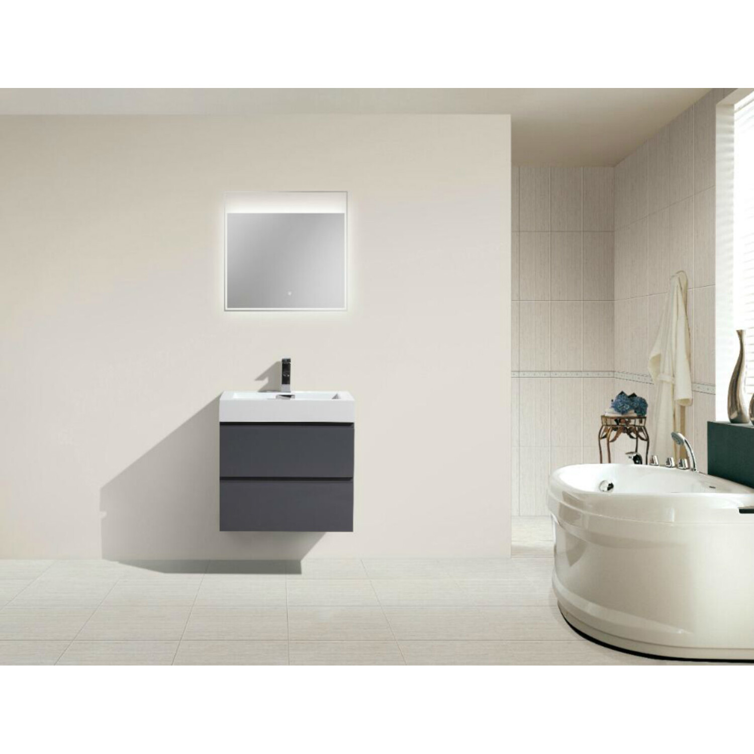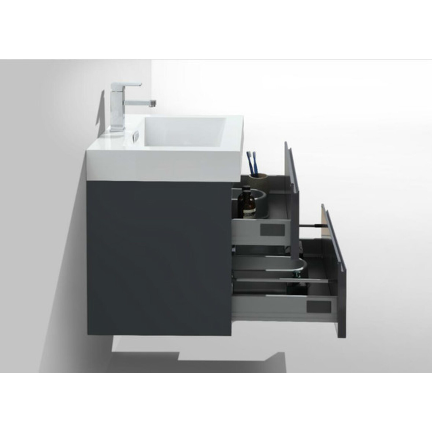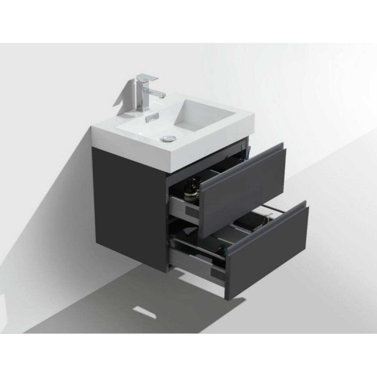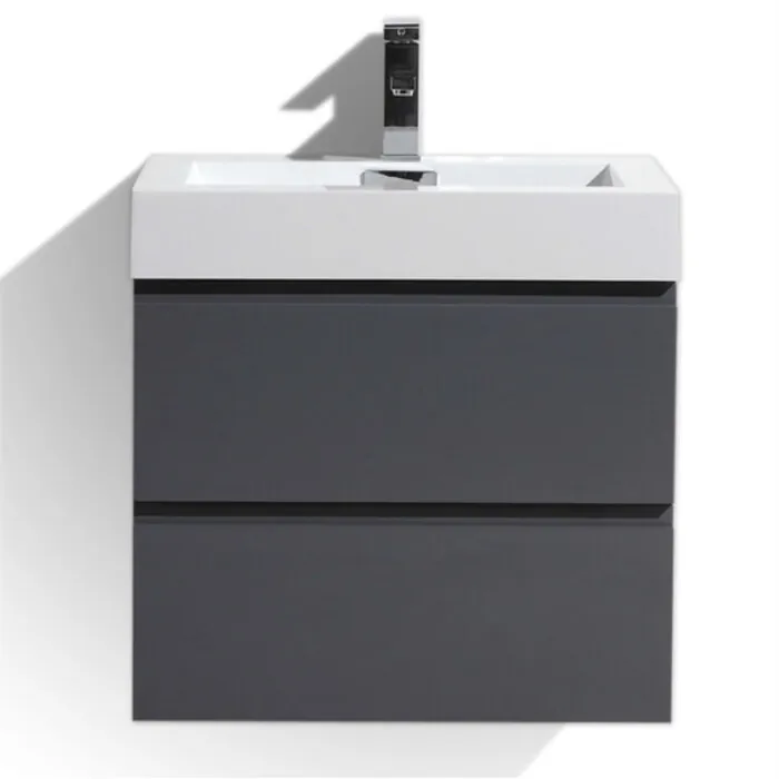 Moreno Bath Mof 24 inch High Gloss Grey Wall Mounted Modern Bathroom Vanity With Acrylic Sink In High Gloss Grey Rich Finish MOF24-GR