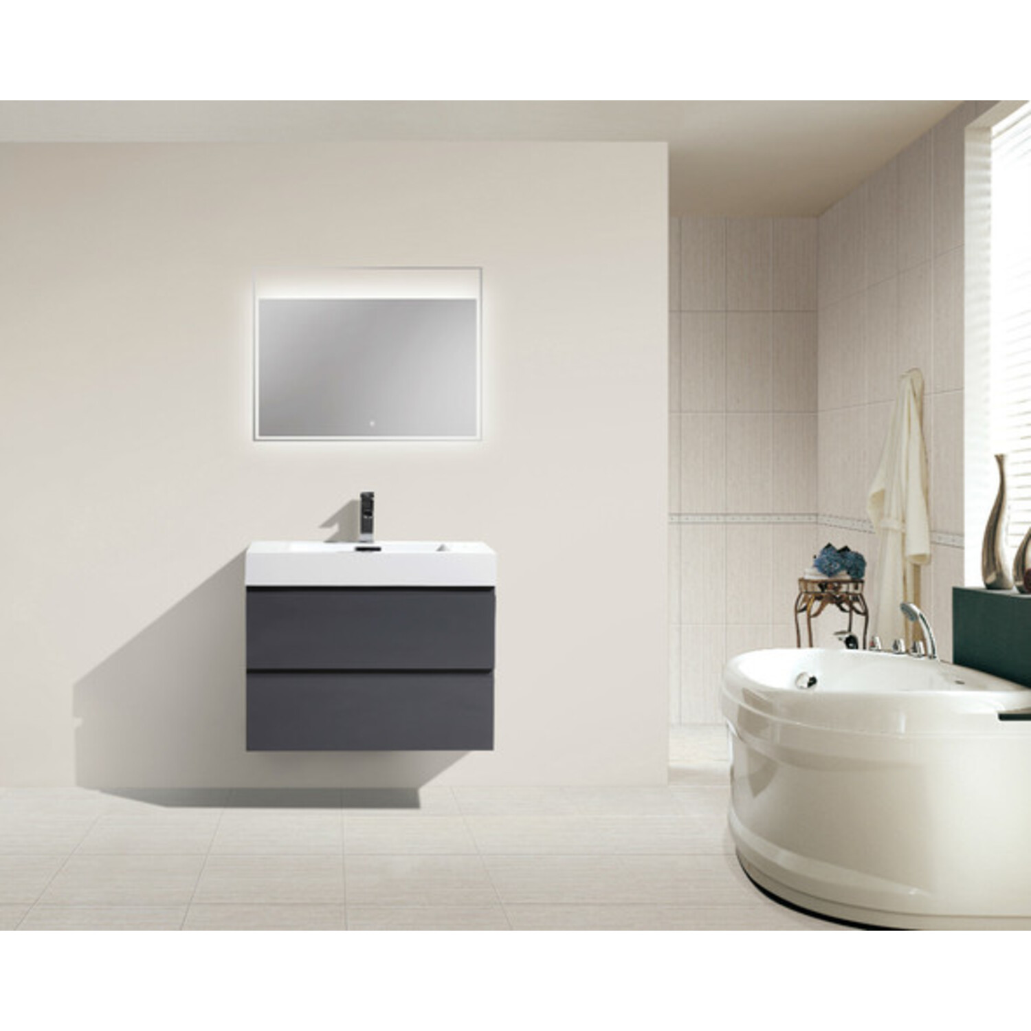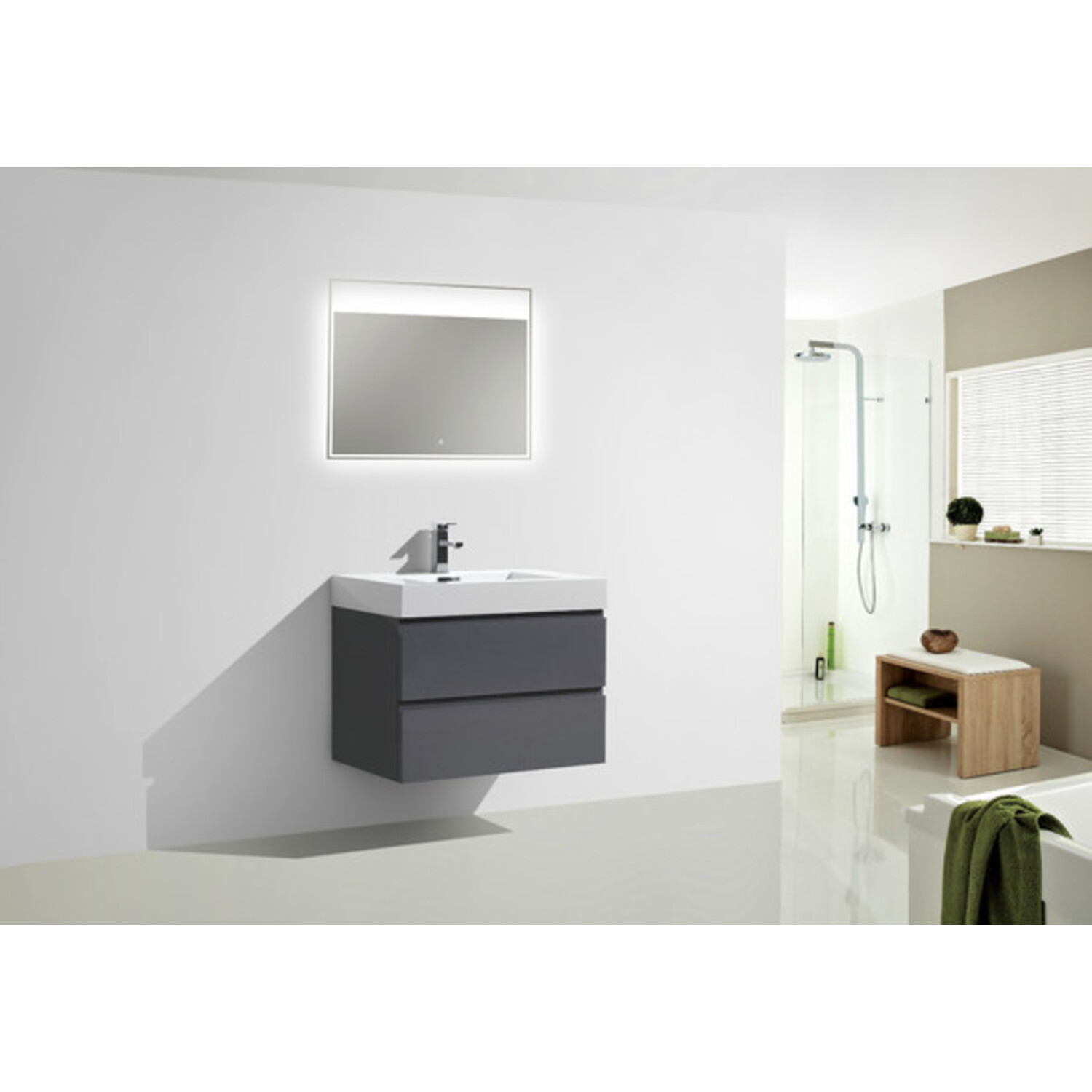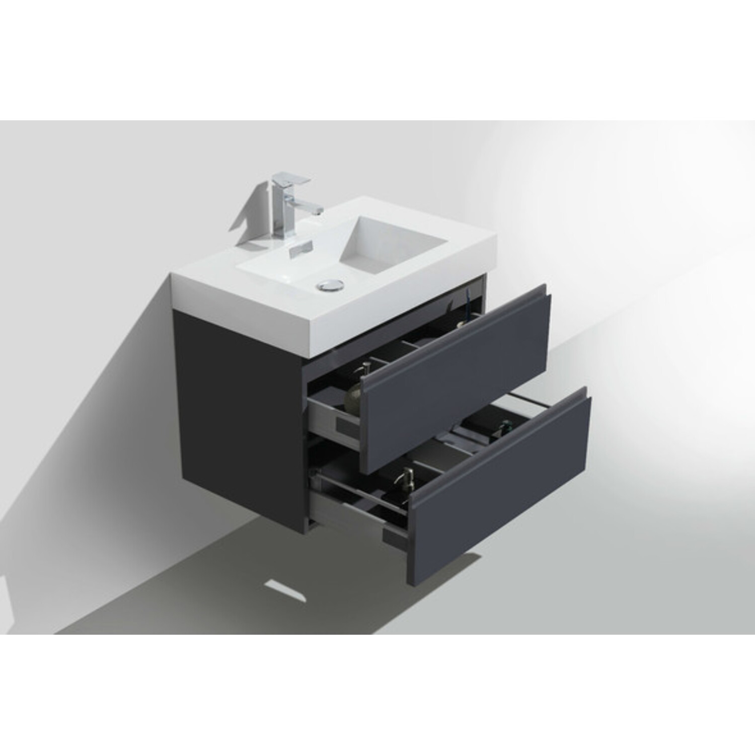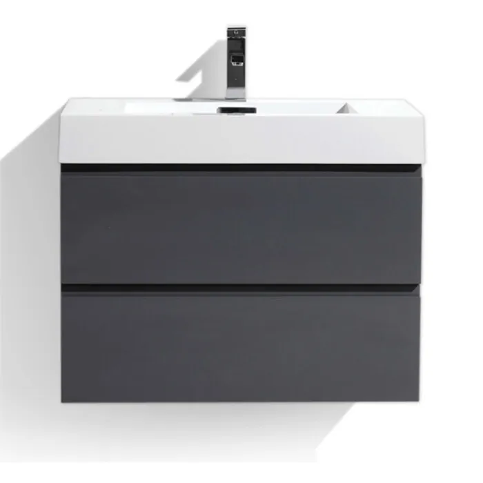 Moreno Bath Mof 30 inch High Gloss Grey Wall Mounted Modern Bathroom Vanity With Acrylic Sink In High Gloss Grey Rich Finish MOF30-GR