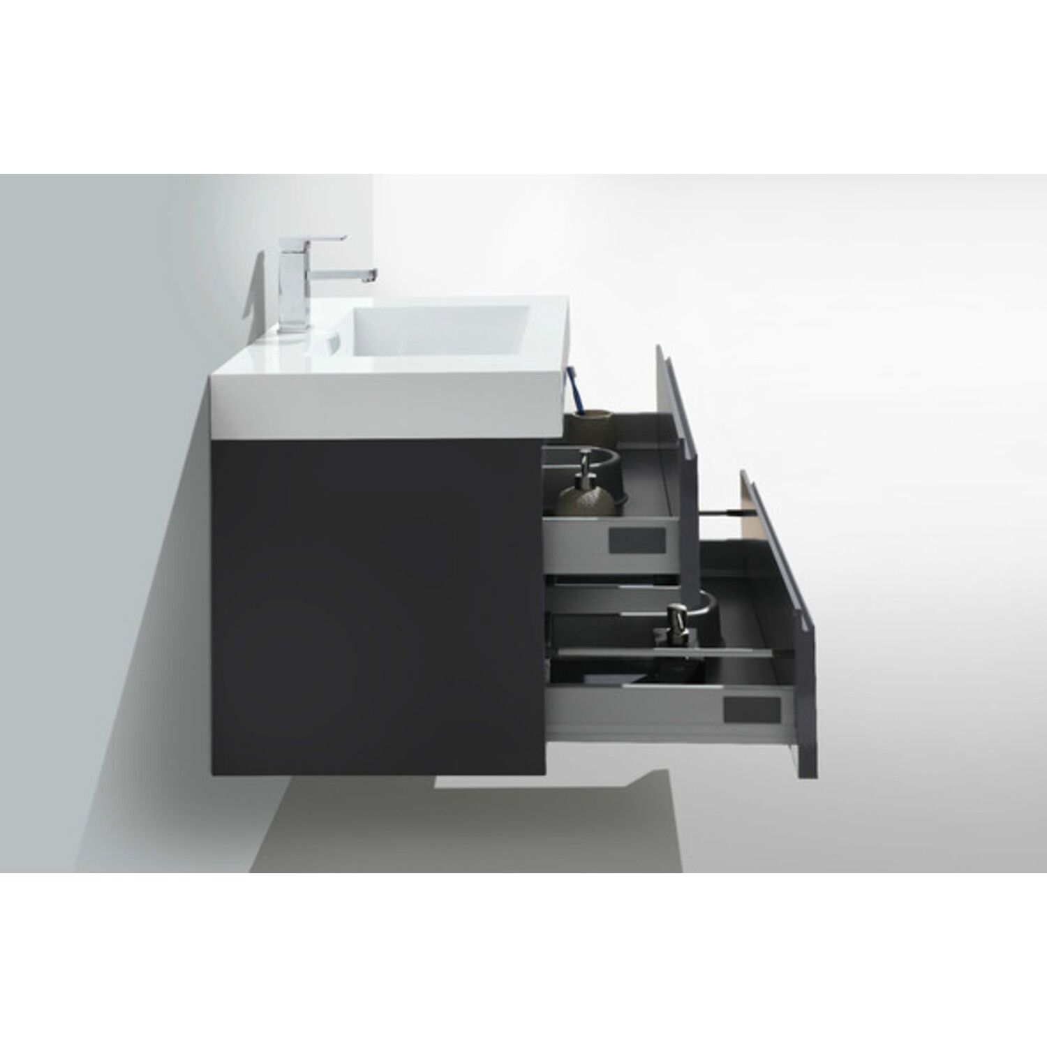 The Moreno is one of the most elegant modern Bathroom Vanities around.  This 24" model comes with a reinforced Acrylic sink, Marine Veneer Constructed Console that is fully moister and water proof, with high quality European DTC Hardware, that provides smooth soft-closing operation drawers.