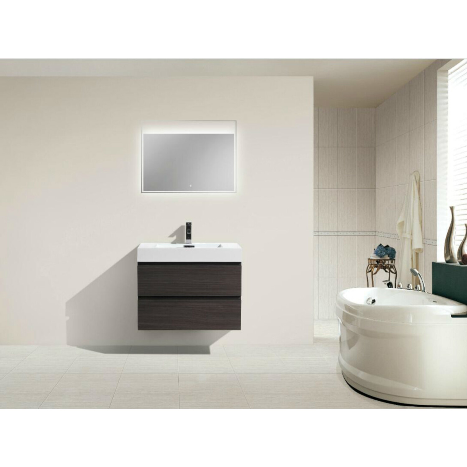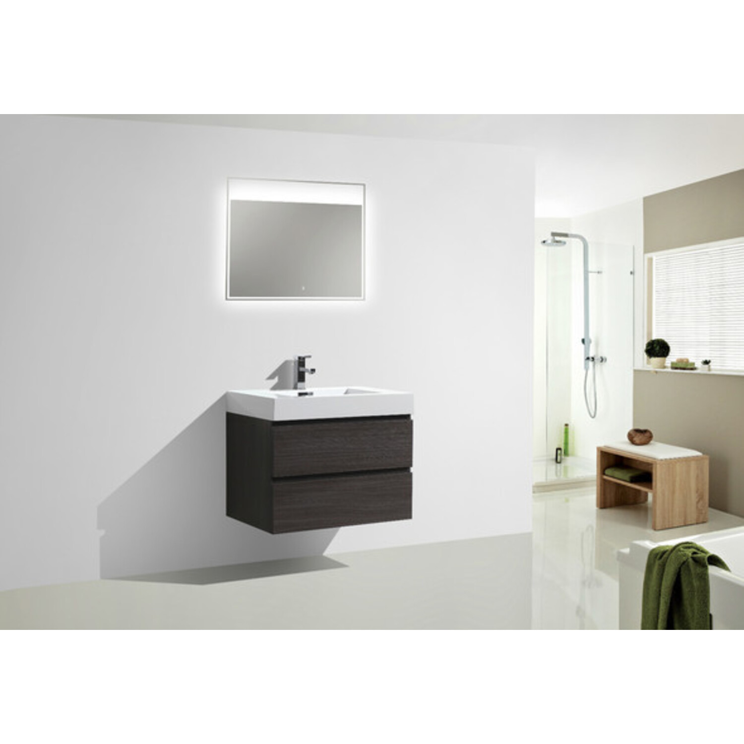 Moreno Bath Mof 30 inch Dark Grey Oak Wall Mounted Modern Bathroom Vanity With Acrylic Sink In Dark Grey Oak Durable Finish MOF30-WB