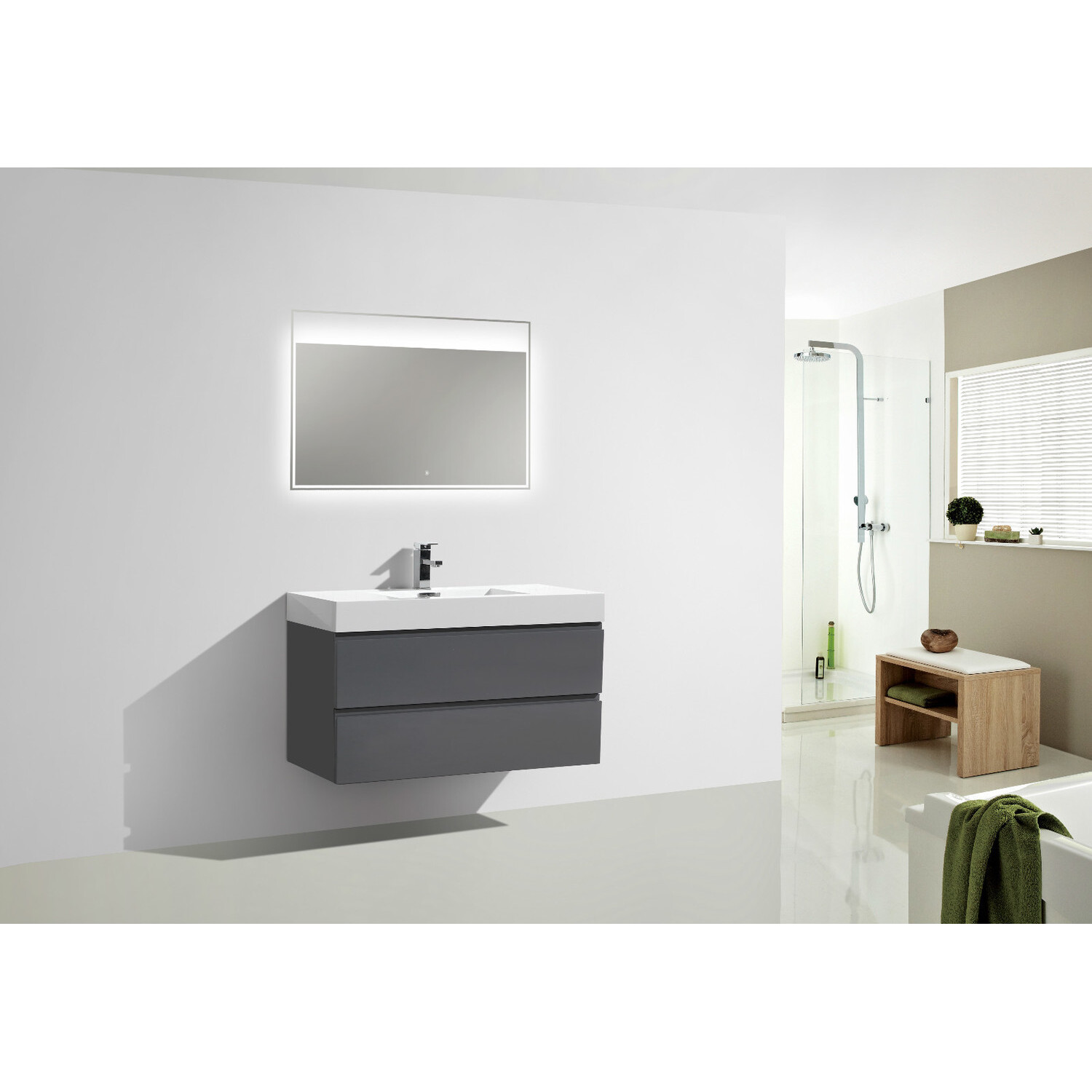Moreno Bath Mof 40 inchhigh Gloss Grey Wall Mounted Modern Bathroom Vanity With Acrylic Sink In High Gloss Grey Rich Finish MOF40-GR