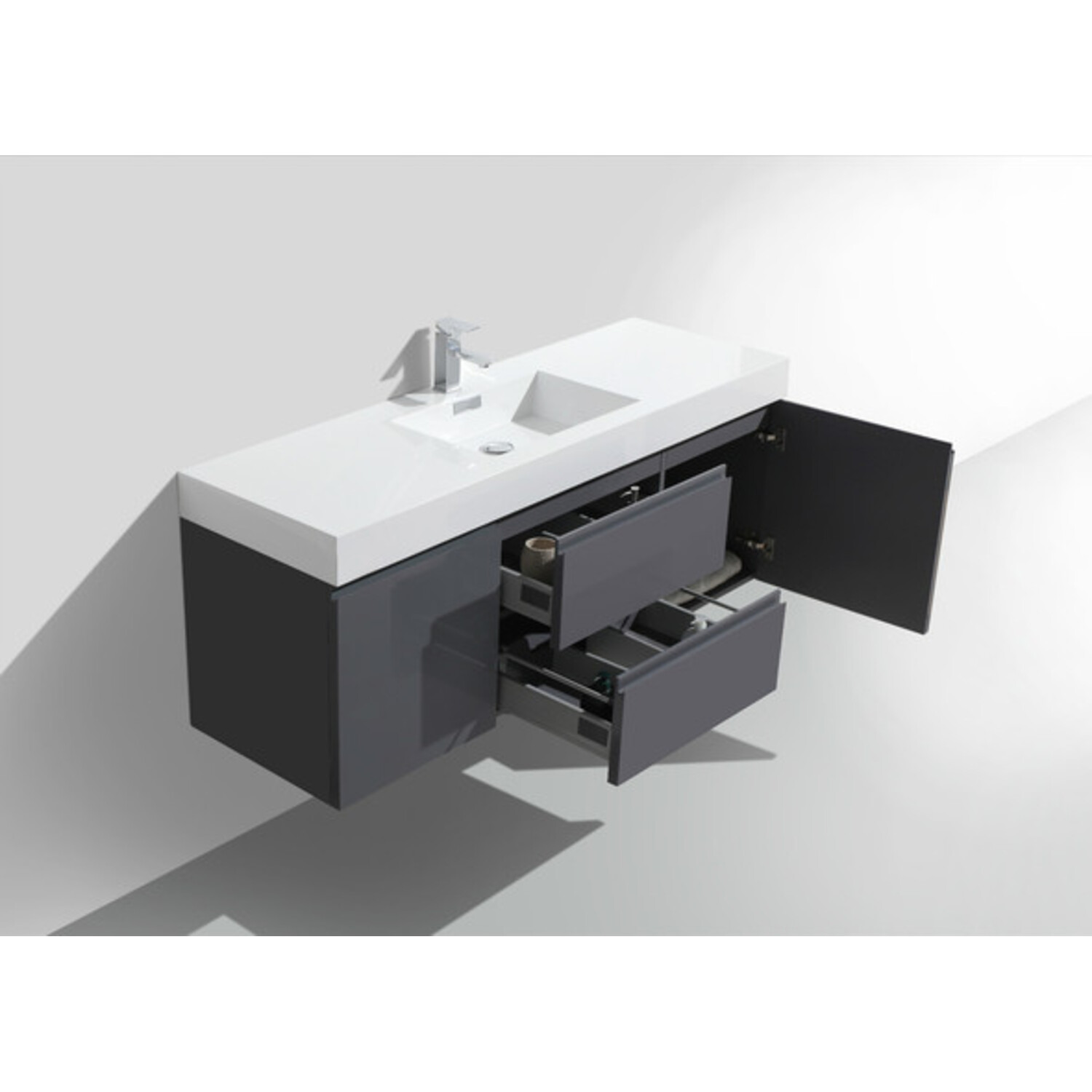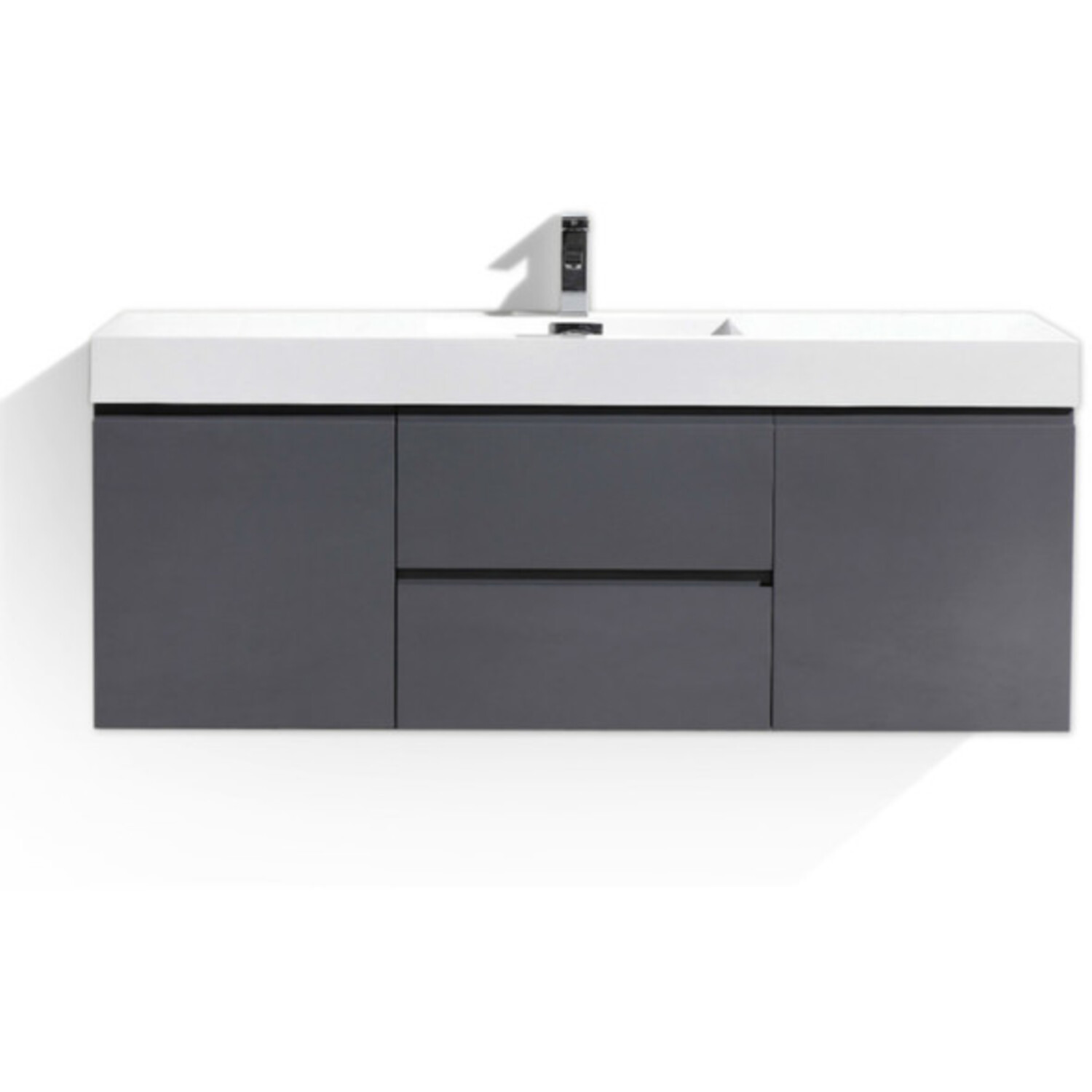 Moreno Bath Mof 60 inch High Gloss Grey Single Sink Wall Mounted Modern Bathroom Vanity With Acrylic Sink In High Gloss Grey Rich Finish MOF60S-GR