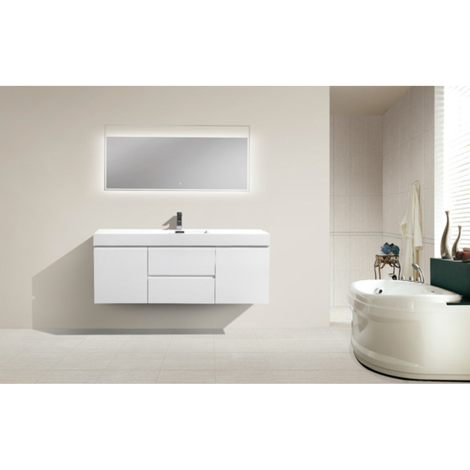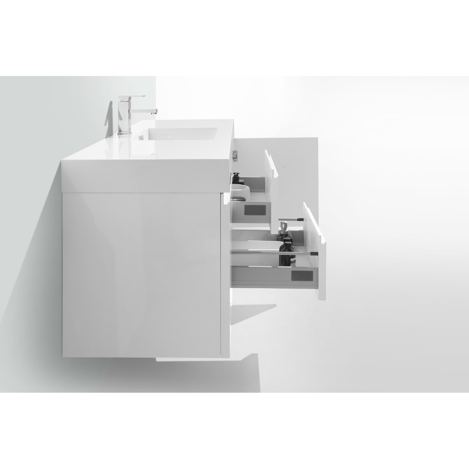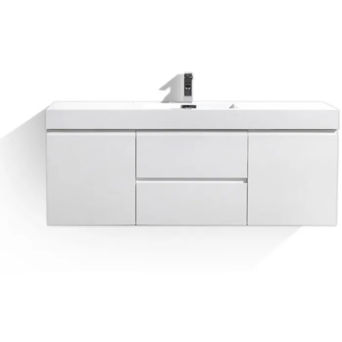 Moreno Bath Mof 60 inch High Gloss White Single Sink Wall Mounted Modern Bathroom Vanity With Acrylic Sink In High Gloss White Rich Finish MOF60S-GW
