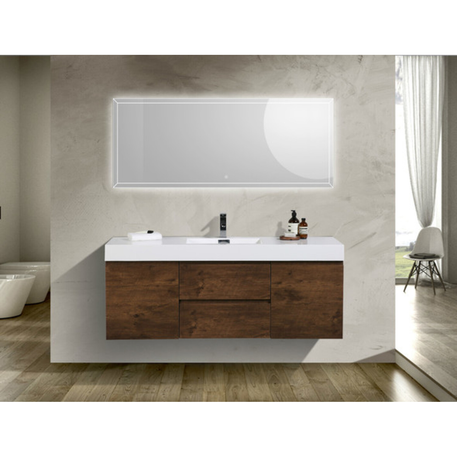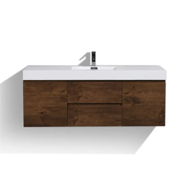 Moreno Bath Mof 60 inch Rose Wood Single Sink Wall Mounted Modern Bathroom Vanity With Acrylic Sink In Rosewood Durable Finish MOF60S-RW