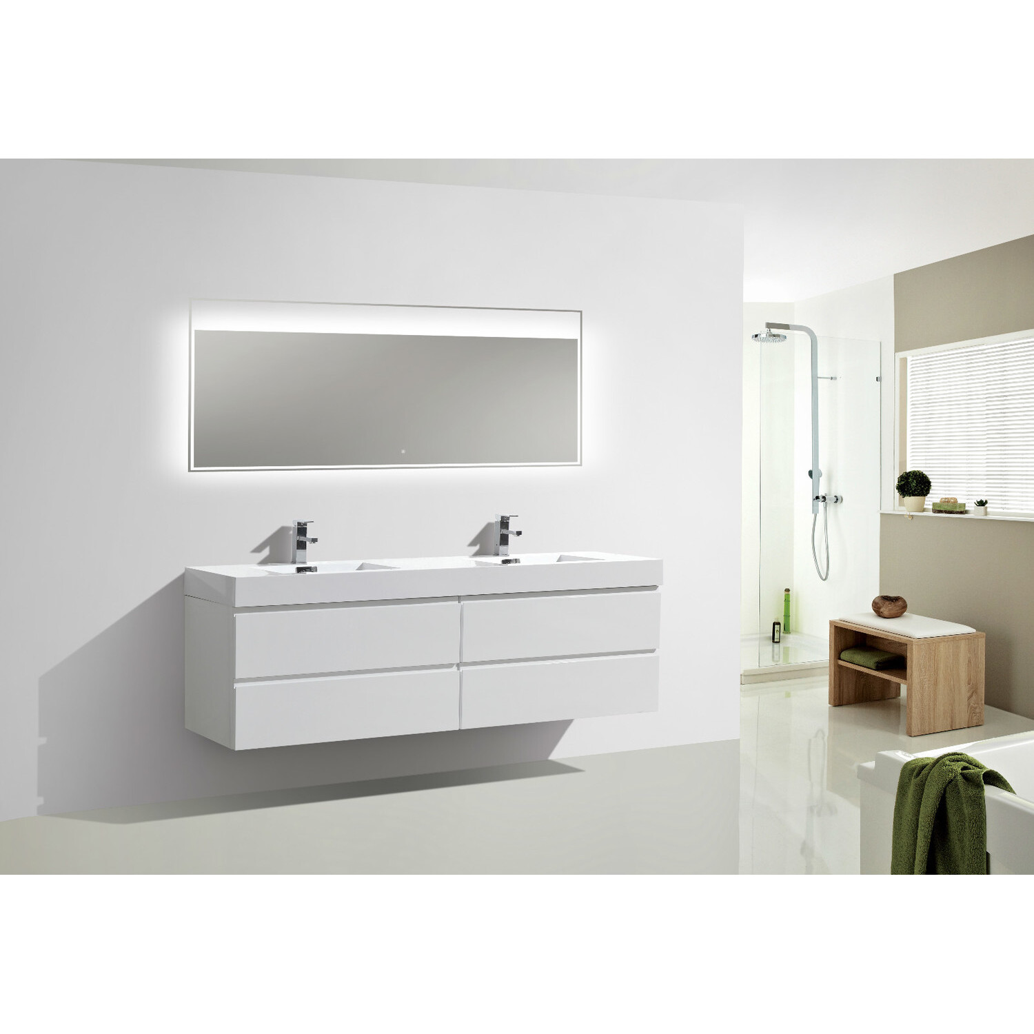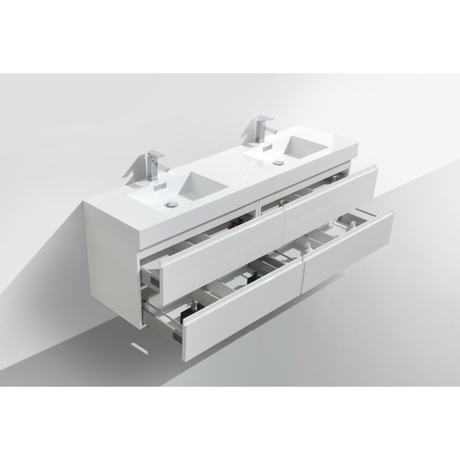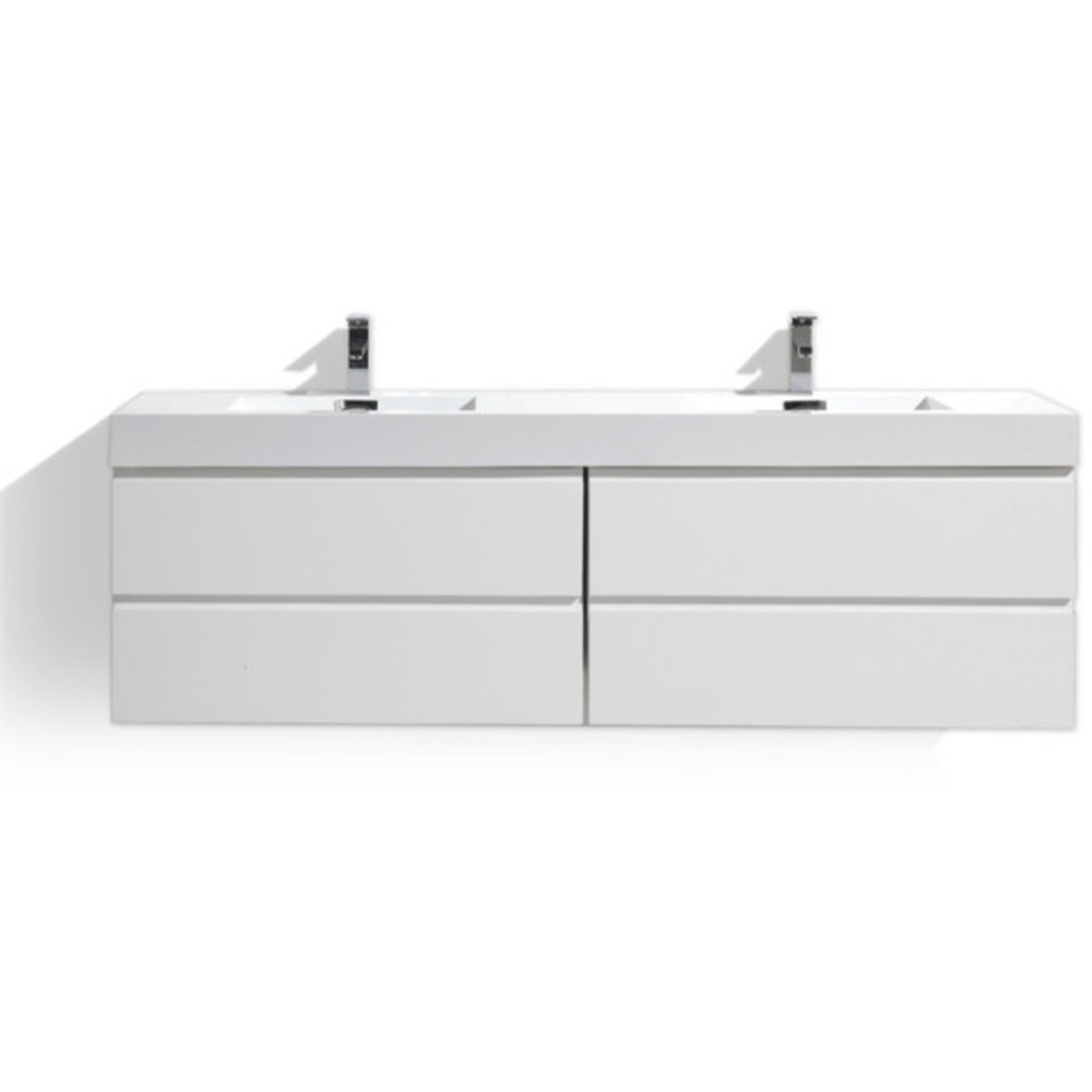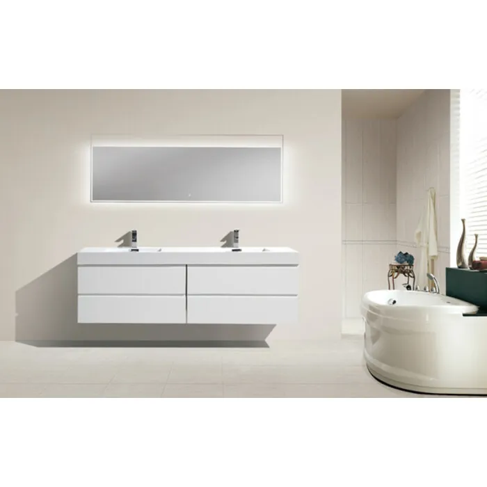 Moreno Bath Mof 72 inchhigh Gloss White Double Sink Wall Mounted Modern Bathroom Vanity With Acrylic Sink In High Gloss White Rich Finish MOF72D-GW