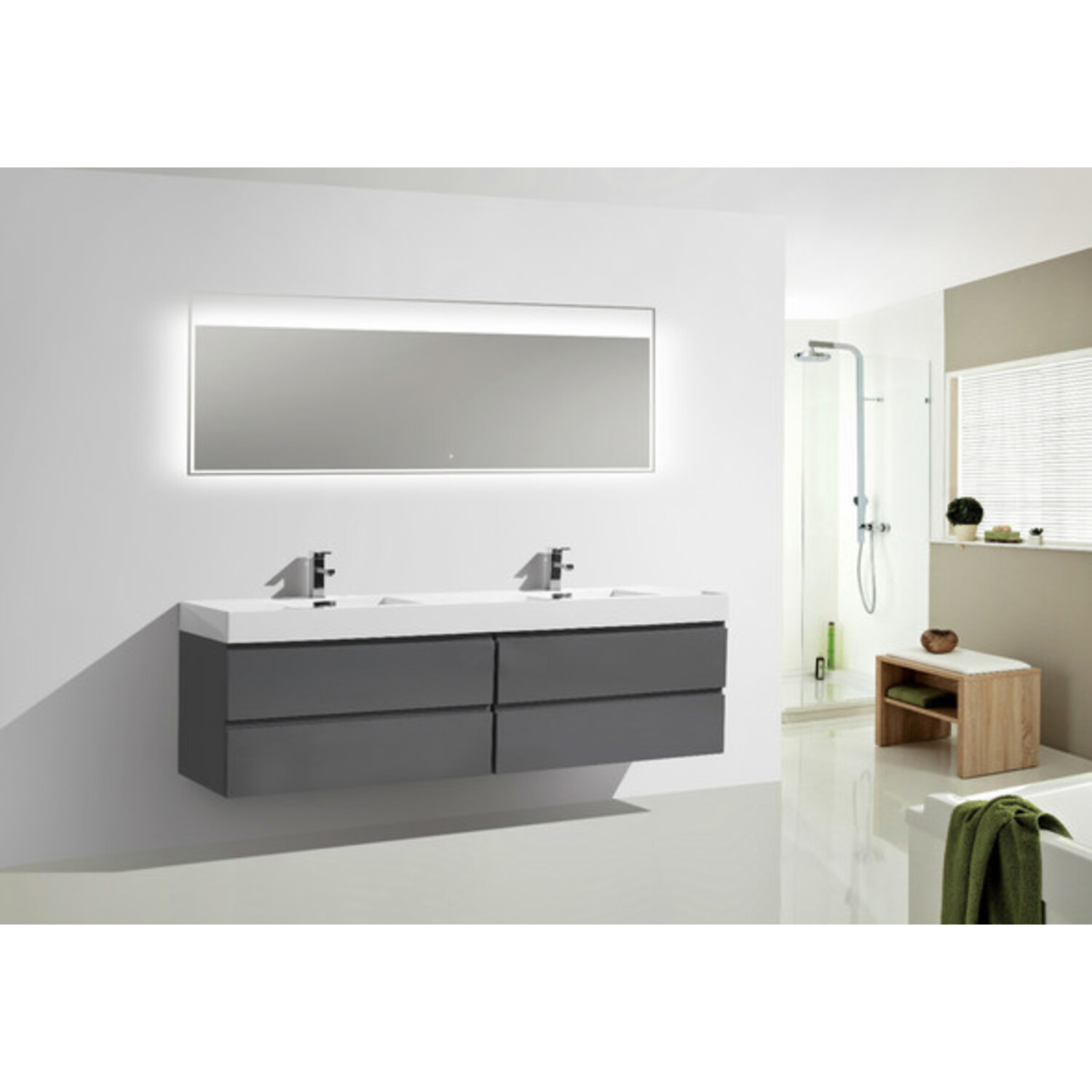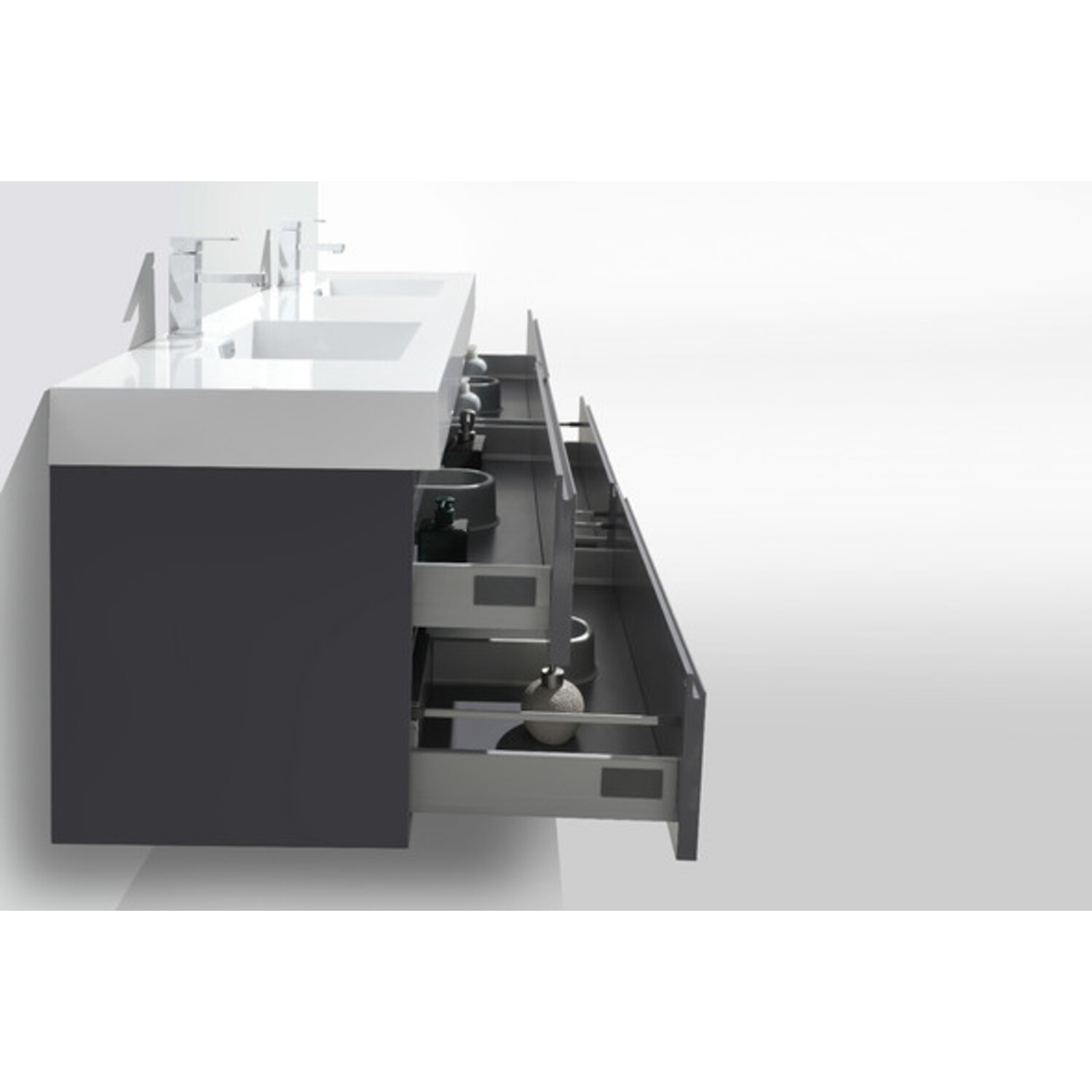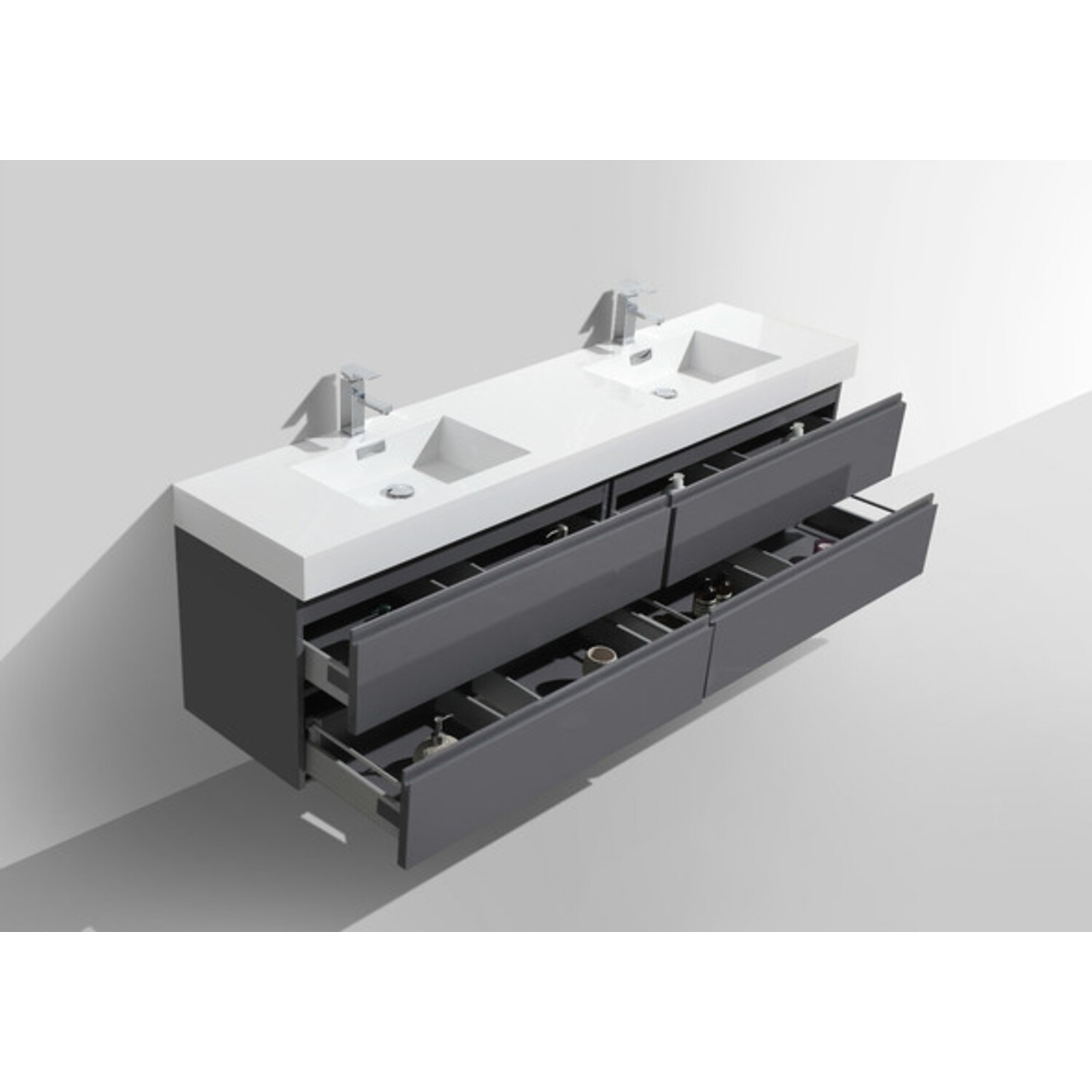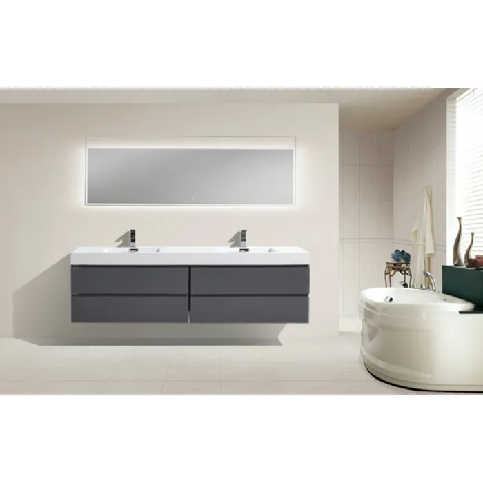 Moreno Bath Mof 80 inch High Gloss Grey Double Sink Wall Mounted Modern Bathroom Vanity With Acrylic Sink In High Gloss Grey Rich Finish MOF80D-GR