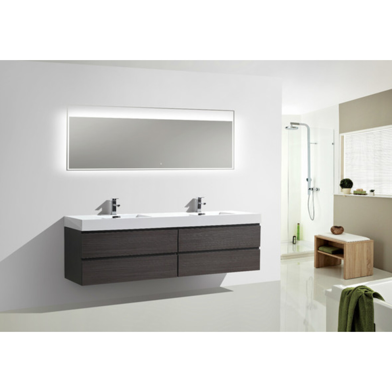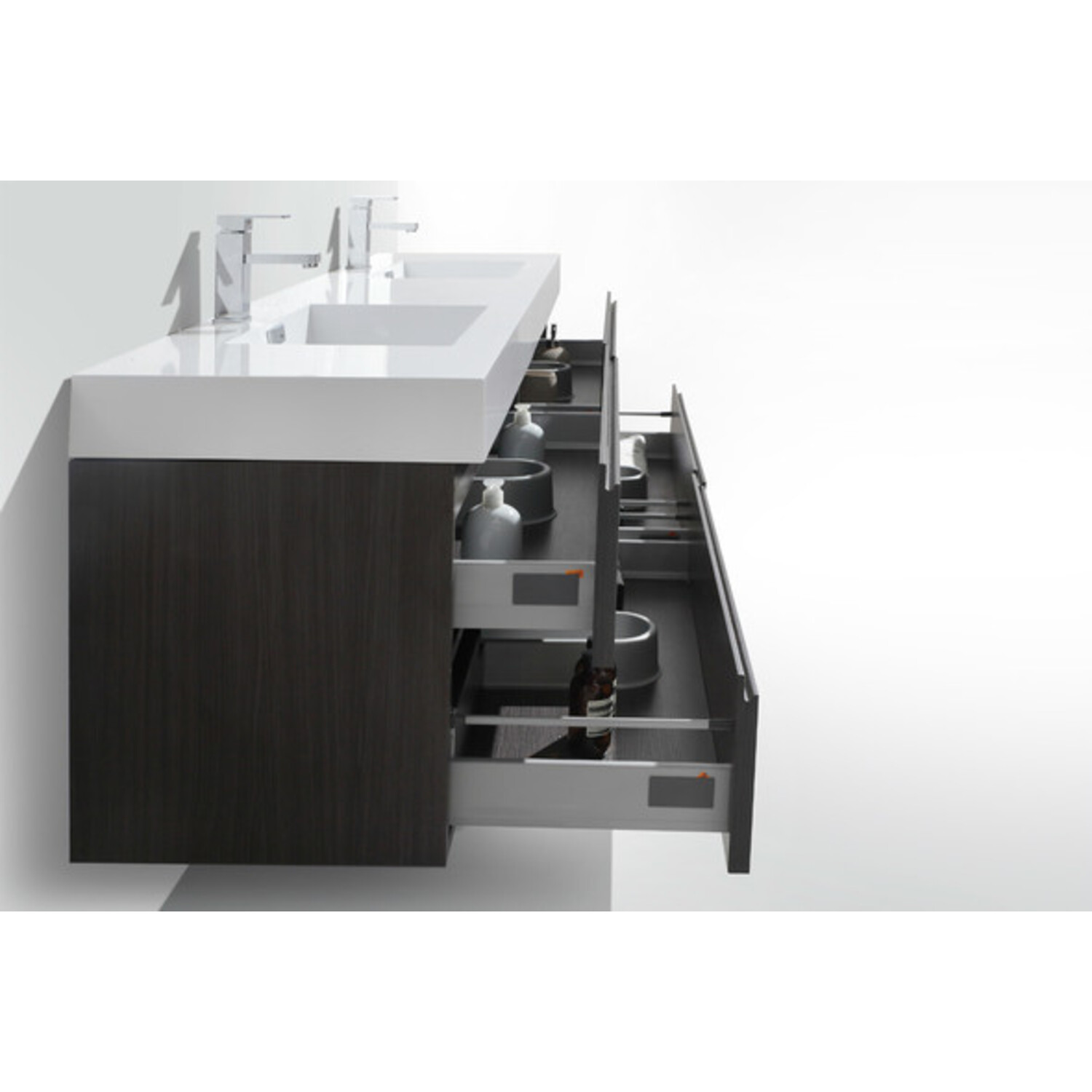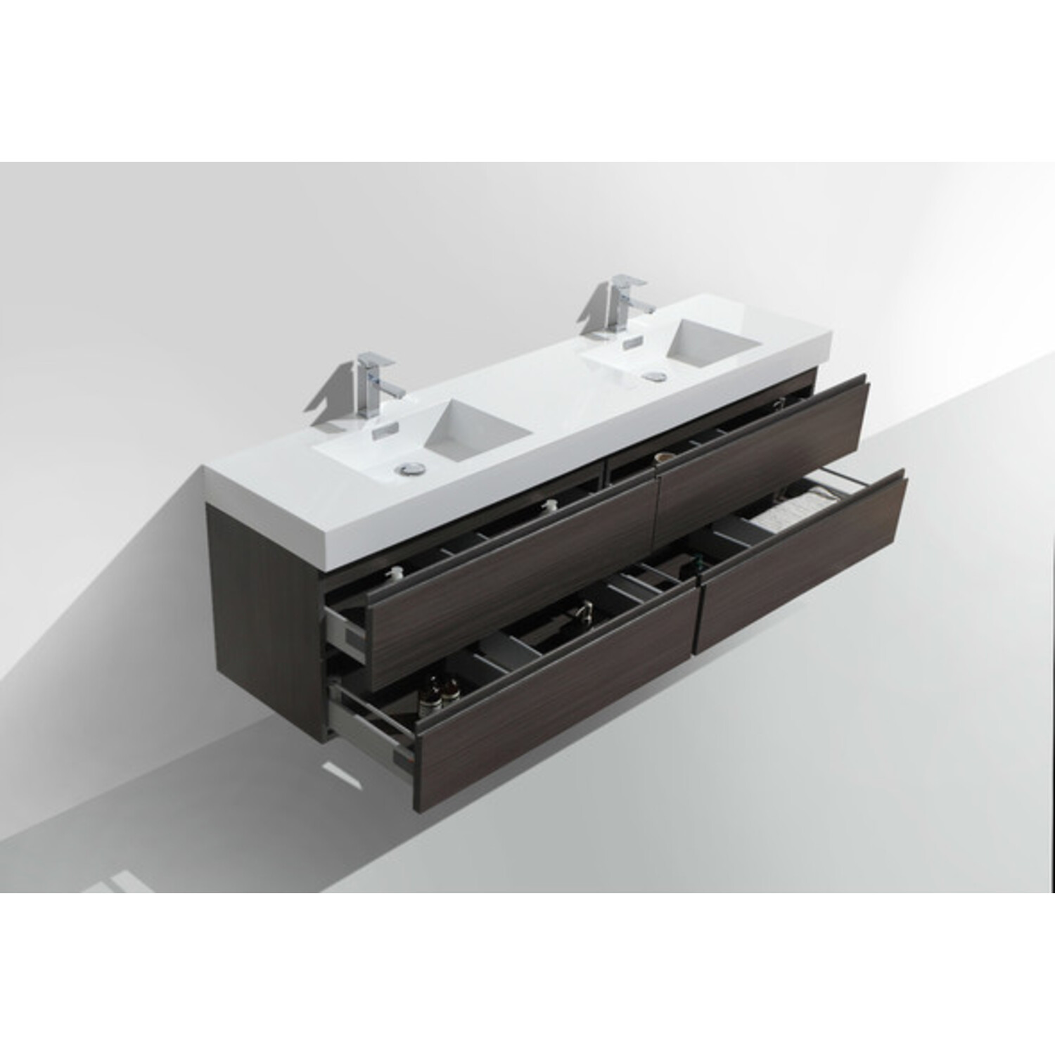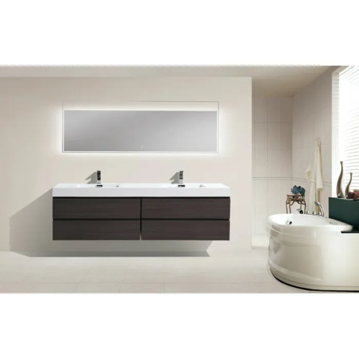 Moreno Bath Mof 80 inch Dark Grey Oak Double Sink Wall Mounted Modern Bathroom Vanity With Acrylic Sink In Dark Grey Oak Durable Finish MOF80D-WB