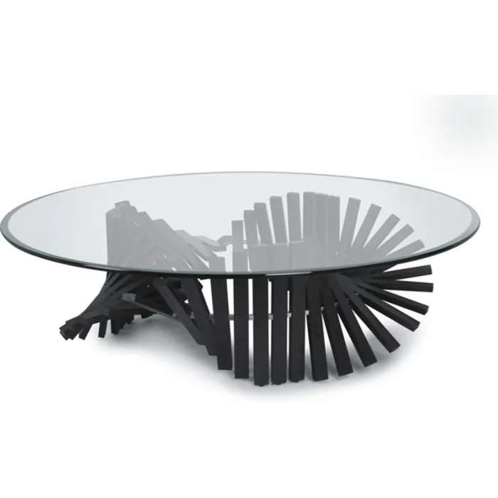 Marvelous undulations of natural wood form this unusual cocktail table base. Designed by Vito Selma, who continues to dream up the impossible. Available with or without glass.
