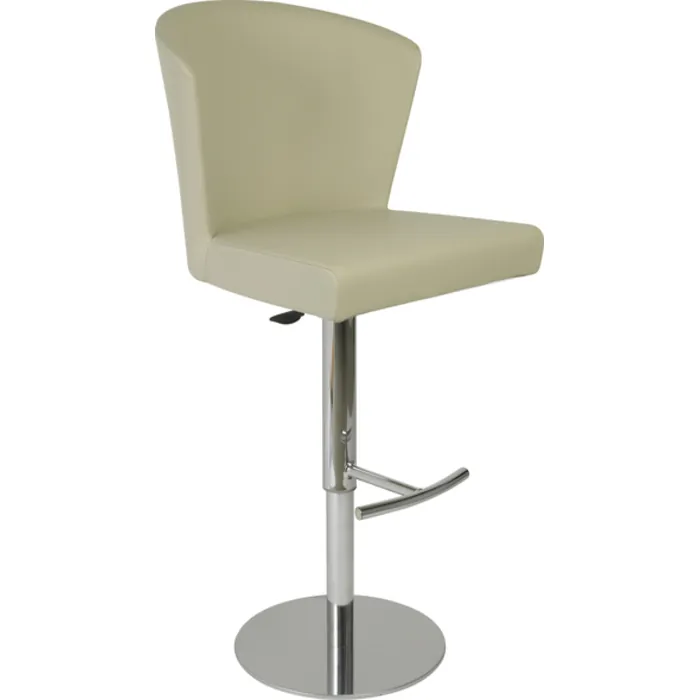 Soft and inviting Ecopelle leather covers this barstool made in Italy. Taupe with chrome metal, seat is adjustable.