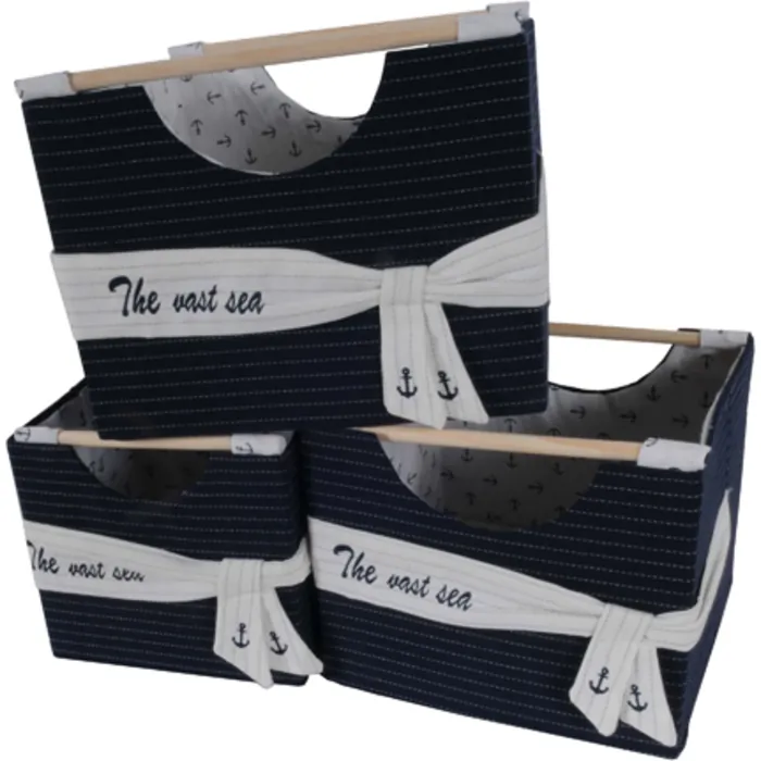 Looking for the perfect fabric basket to organize your belongings? Look no further, our set of three foldable fabric baskets will make organizing a breeze. They make grabbing and putting things in easy. These lidless baskets can be folded and stored away with ease anywhere in your home. They come in three different sizes below: 1: 12.5in x 12in x 9.5in 2: 10.5in x 10.25in x 9in 3: 8.75in x 8.25in x 8.25in Simply elegant, these baskets can be filled with clothes or anything that needs to be stored. Having them around will keep your home more organized and clean.