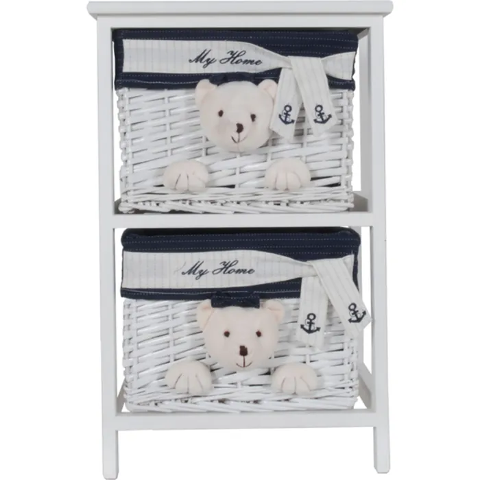 The portable two drawers would liven up a room with its sleek design. It has a clean white color with bears on the front of the drawers. This collection of drawers will have many things well-kept and organized. This item would be superb for children with many toys. Features: Stand: 16 x 12.5 x 25"es Dimension Per Drawer: 13 x 10 x 9"es