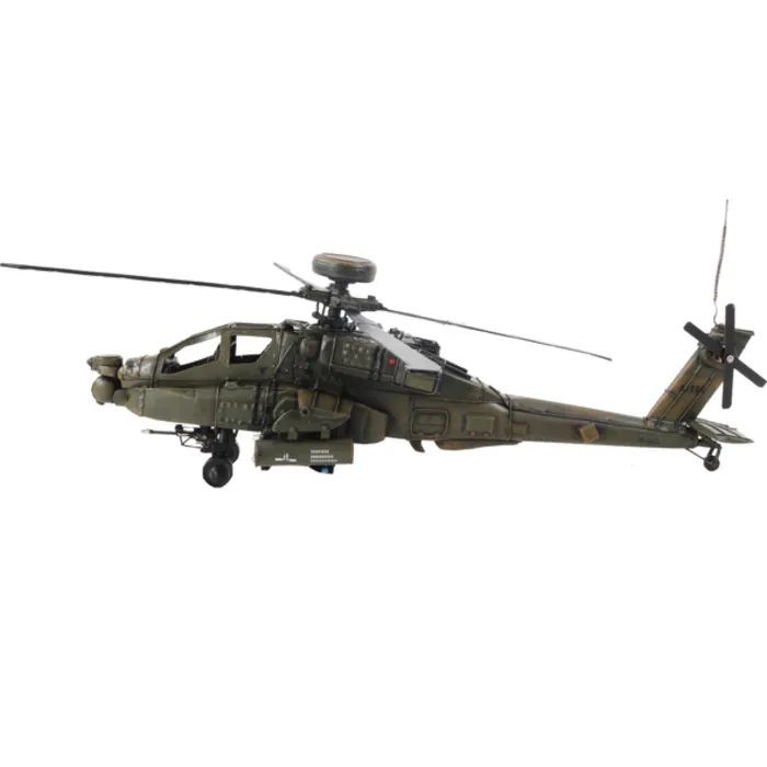 This 1976 Boeing AH-64 Apache is the US Army’s primary attack helicopter, and the most advanced helicopter gunship flying today. It’s handcrafted in iron frame with a scale of 1:39. This Boeing AH-64 Apache model comes with remarkable details such as a propeller, tail rotor, landing skids, machine guns, and cockpit. A must have for the collector and enthusiast! • 100% iron frame • Metal wheels • Metal propellers • Wheels roll • Propellers spin detaches for assemble • Painted and decaled insignia • Landing gear, rockets, and missiles are securely welded on • Includes two seats, cyclic stick, and small details on the dash