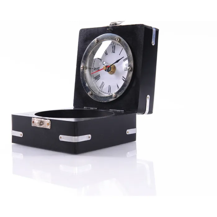 Old Modern Handicrafts Brass Compass & Clock W/wooden Case AK006