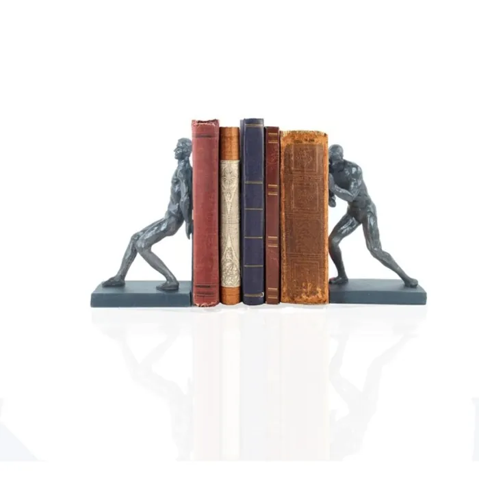This bookend set will liven your library of books inevitably. Made of high-quality weighted resin, they are great at holding up your books. The book ends feature a dark and subtle color so they will match well with your library's atmosphere. This bookend set will add a touch of uniqueness to any office or study room.